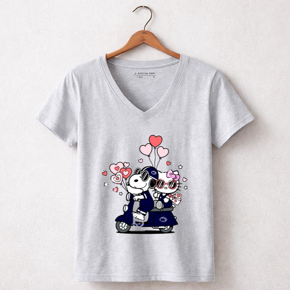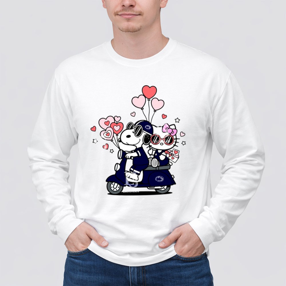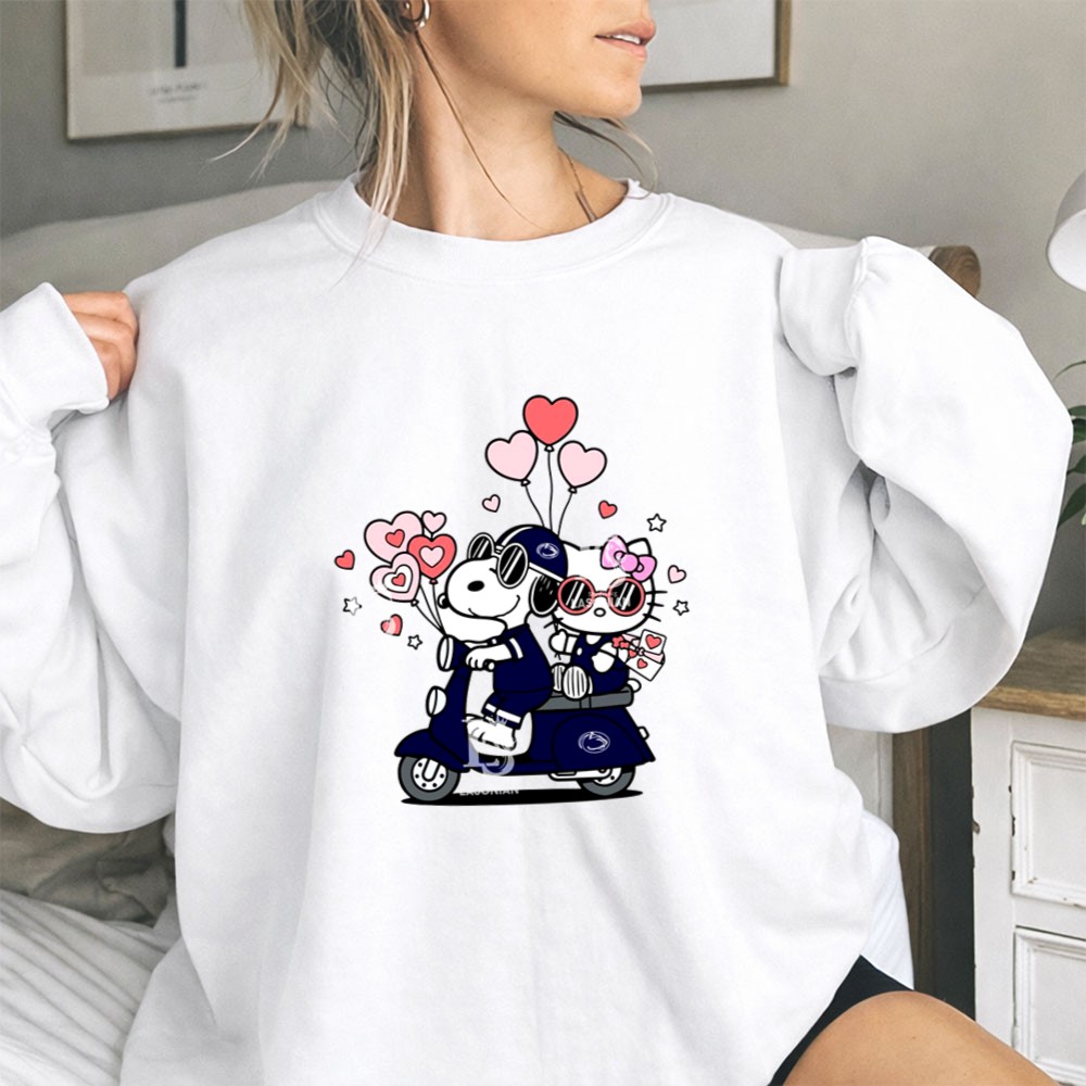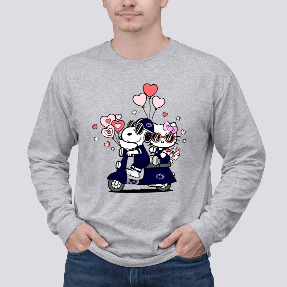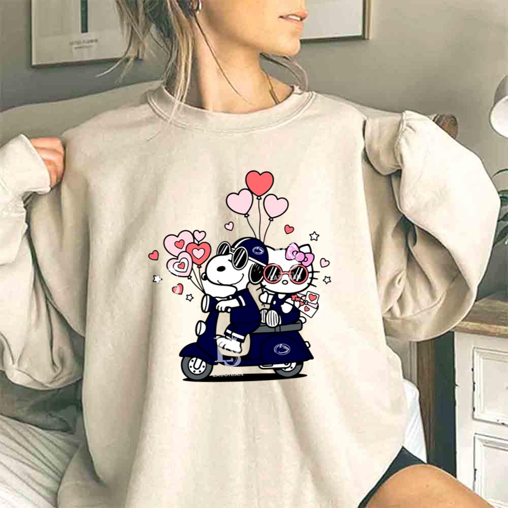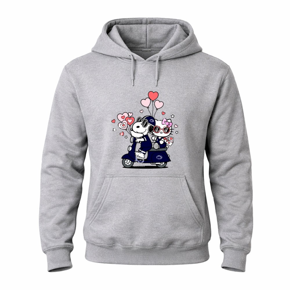 Penn State Nittany Lions, Snoopy and Hello Kitty, Valentine's Day gift, collegiate pride, PSU mascot love, happy couple art, playful sports apparel, love and fandom