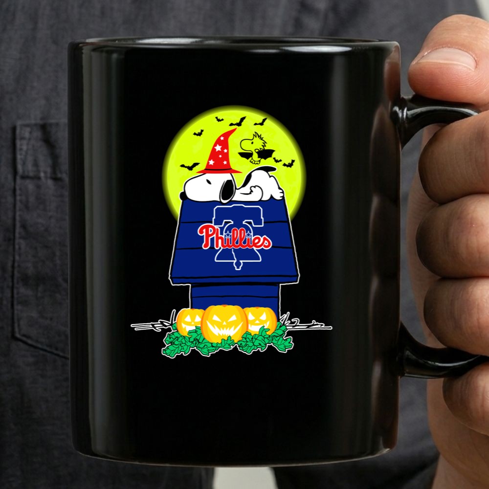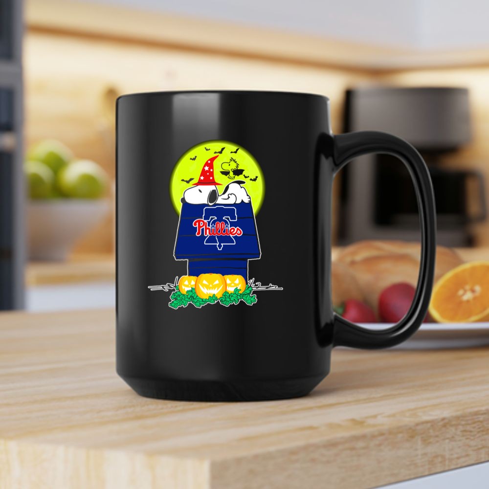 Philadelphia Phillies Snoopy Woodstock Halloween Moon Pumpkins Mug