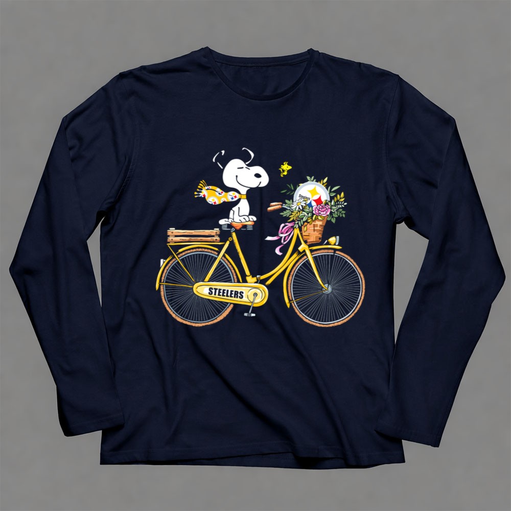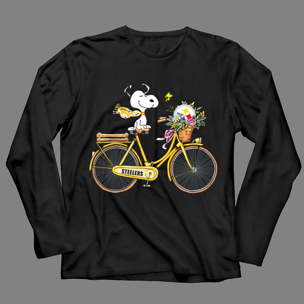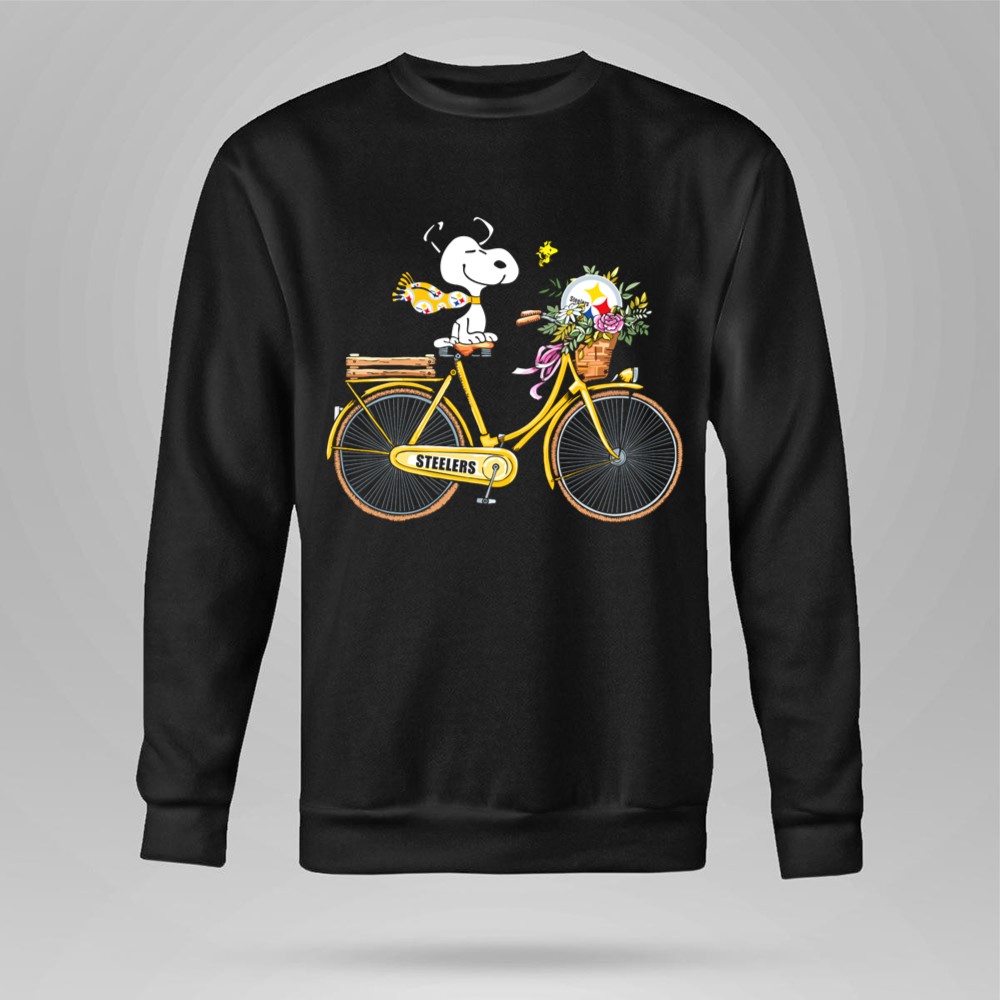 Pittsburgh Steelers Snoopy On Bicycle With Football Helmet And Flowers Shirt