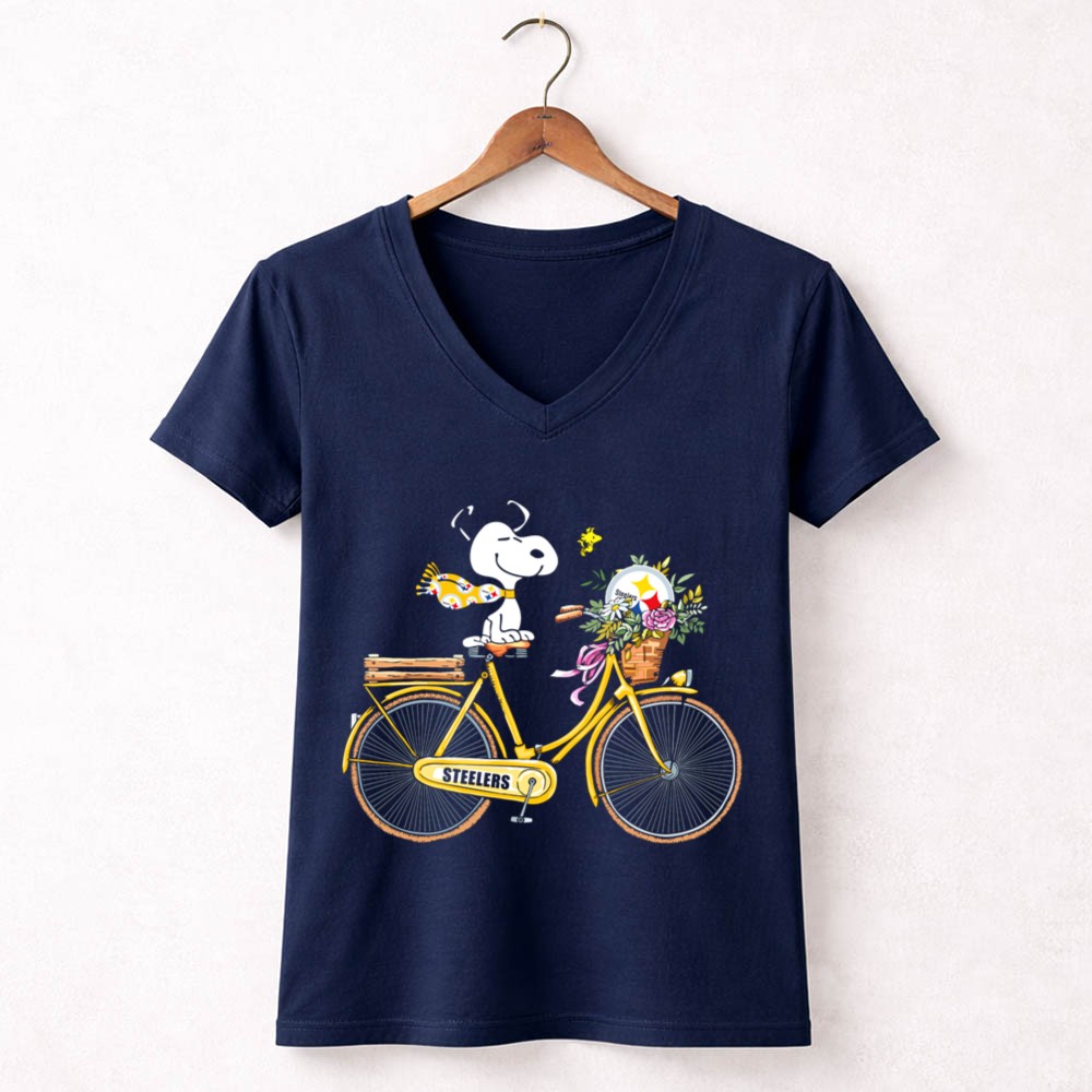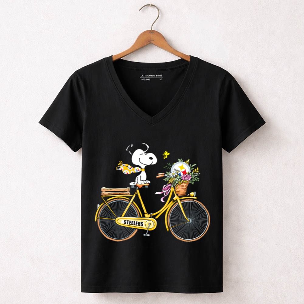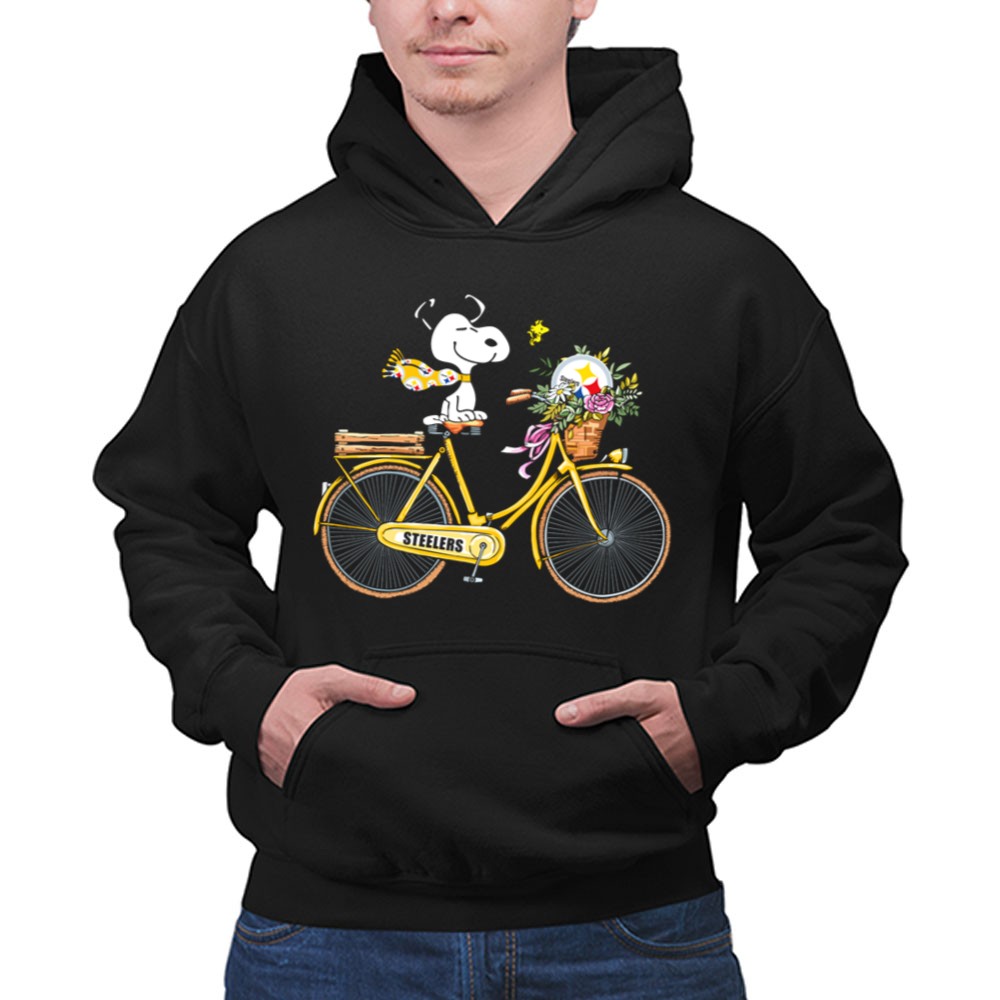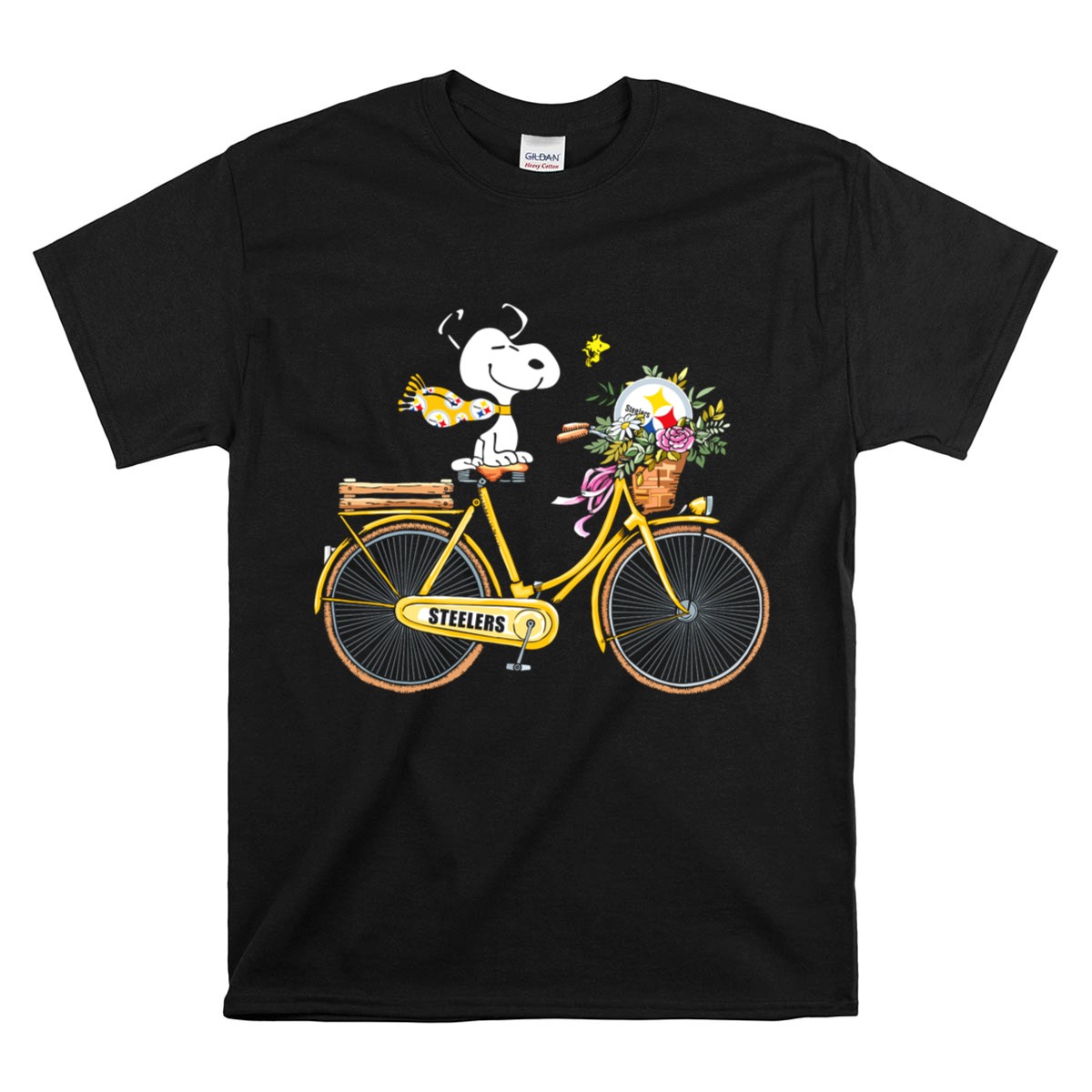 Pittsburgh Steelers Snoopy On Bicycle With Football Helmet And Flowers Shirt