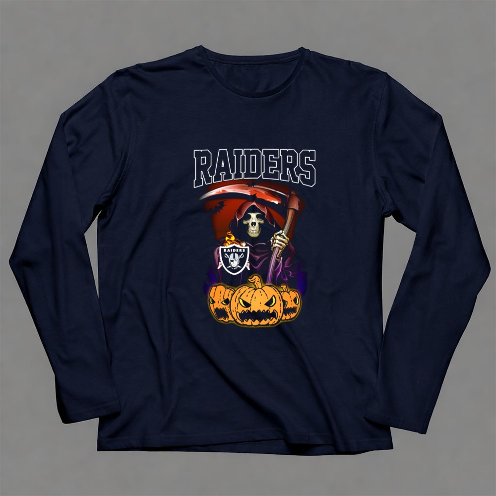 Raiders Reaper With Scythe And Pumpkins Halloween Shirt