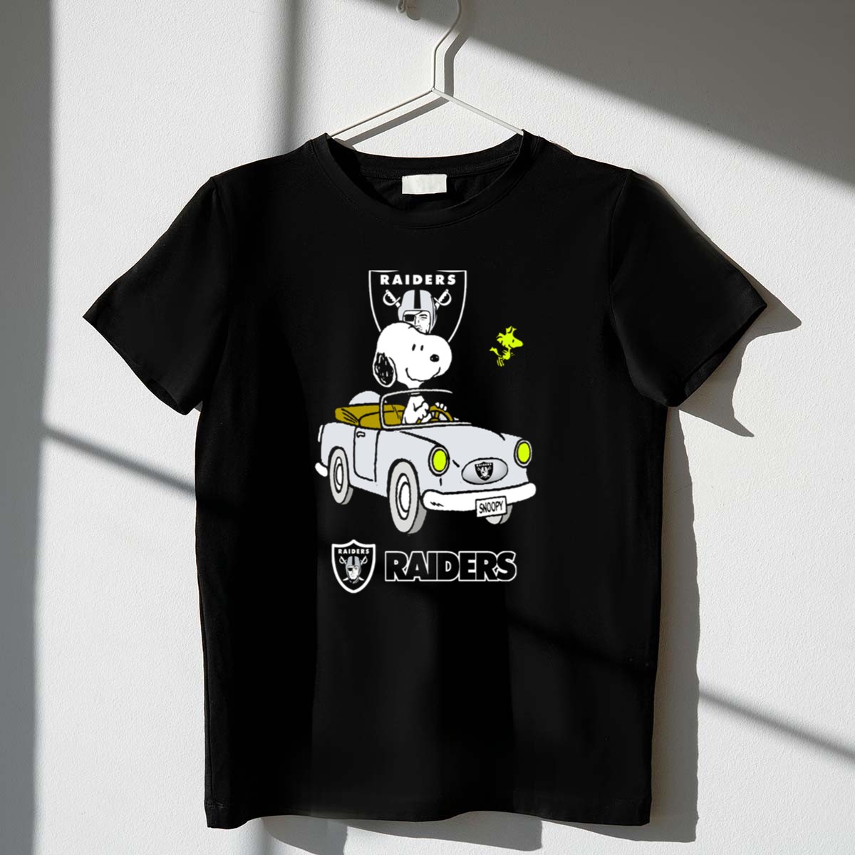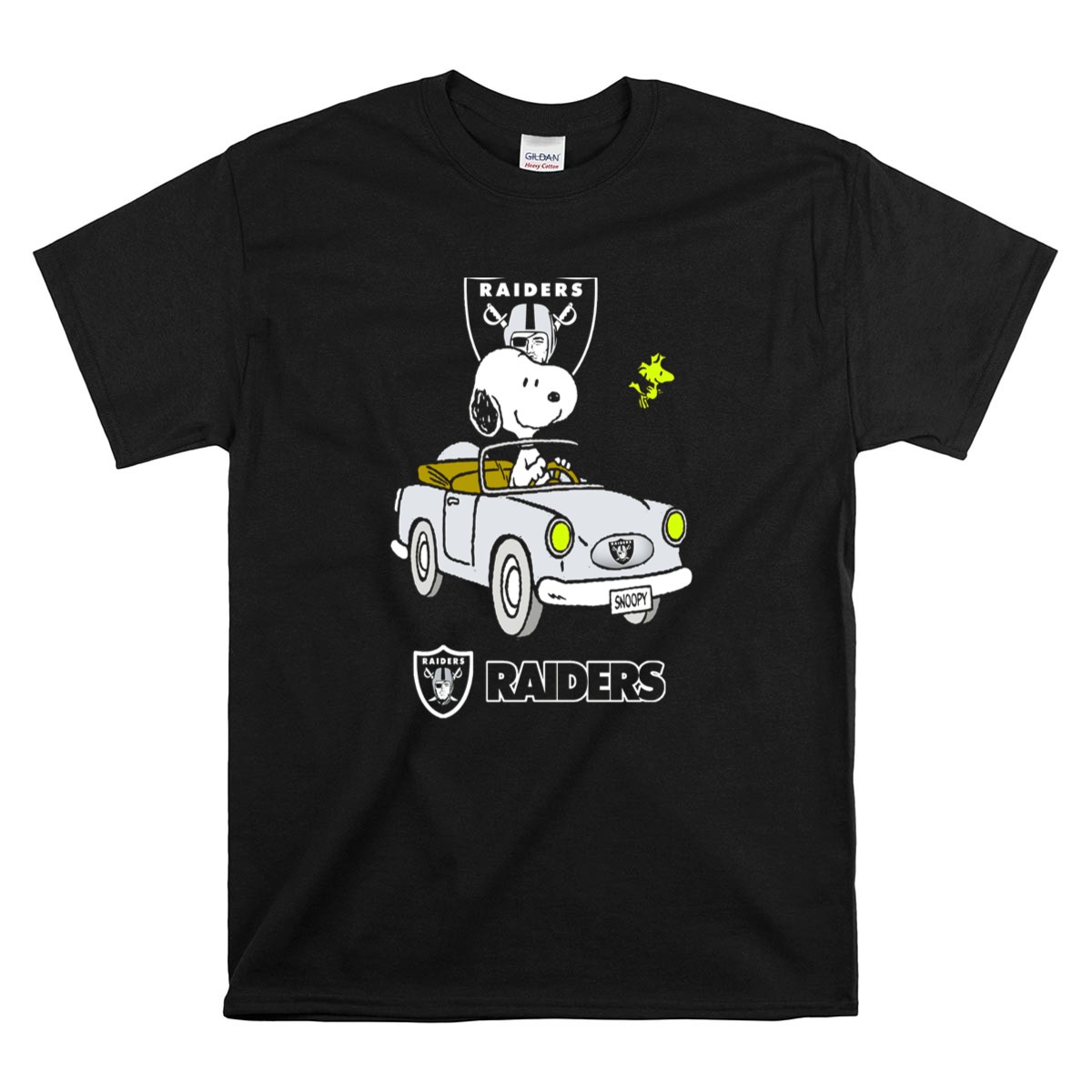 Raiders Snoopy Driving Cartoon With Woodstock And Shirt