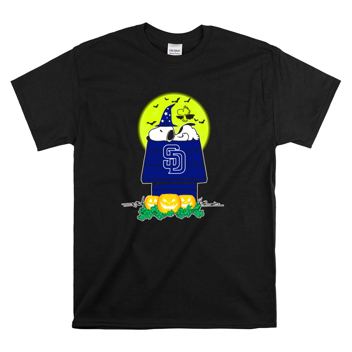 San Diego Padres Snoopy Halloween With Pumpkins And Full Moon Shirt