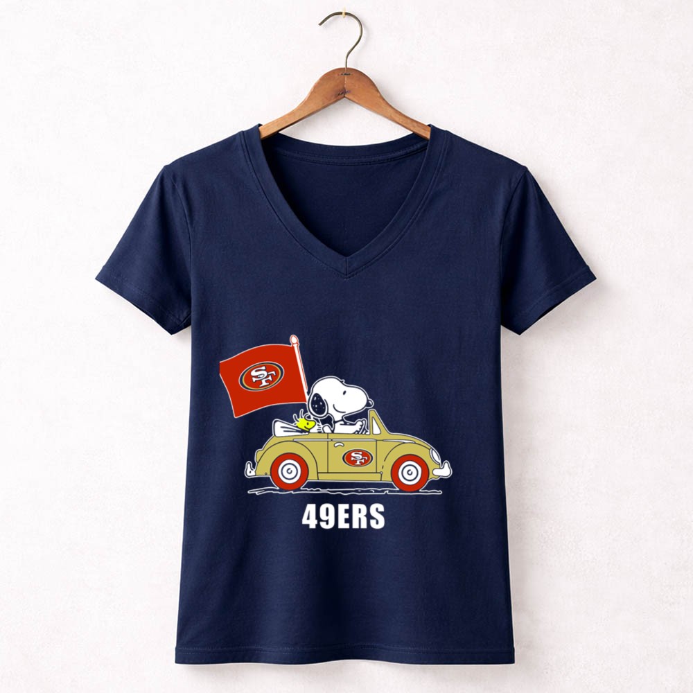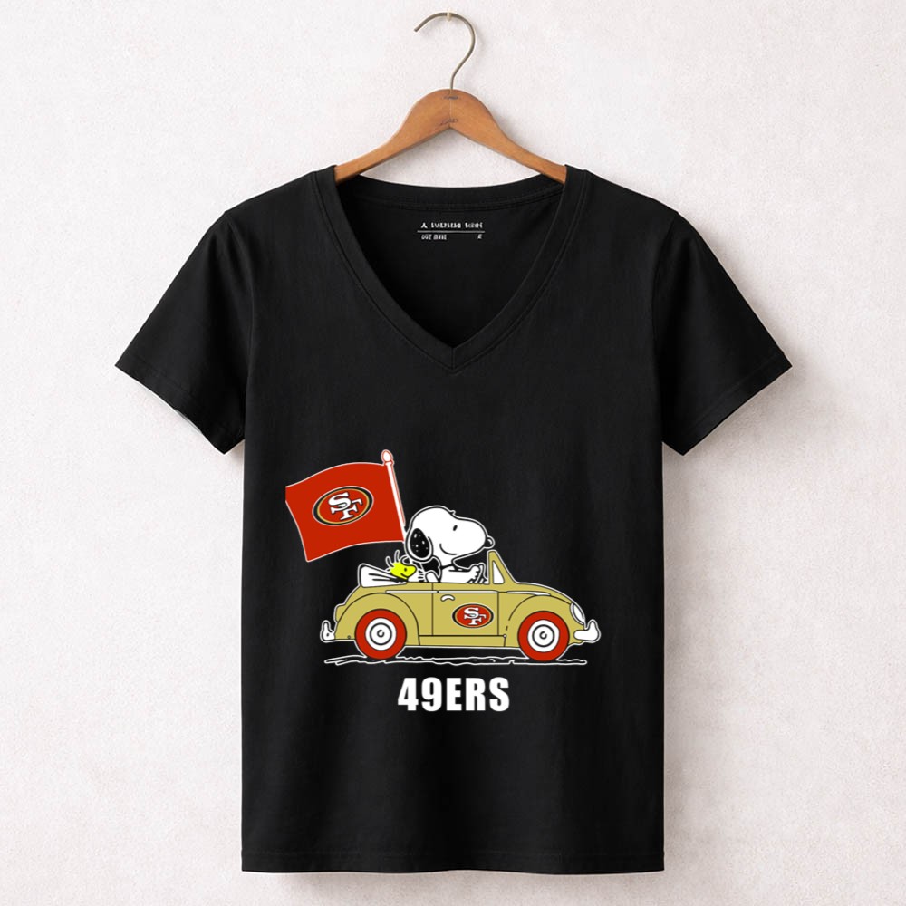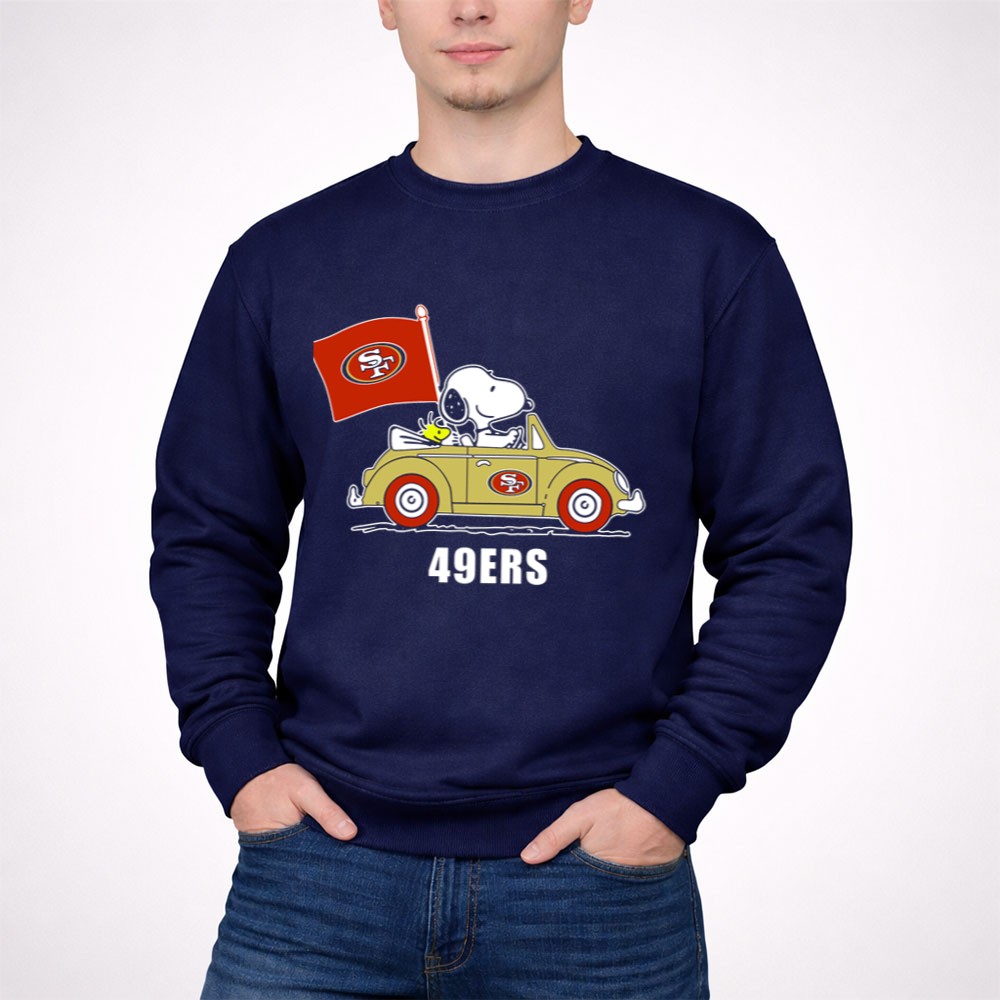 San Francisco 49Ers Snoopy Driving Car With Sf Flag Shirt