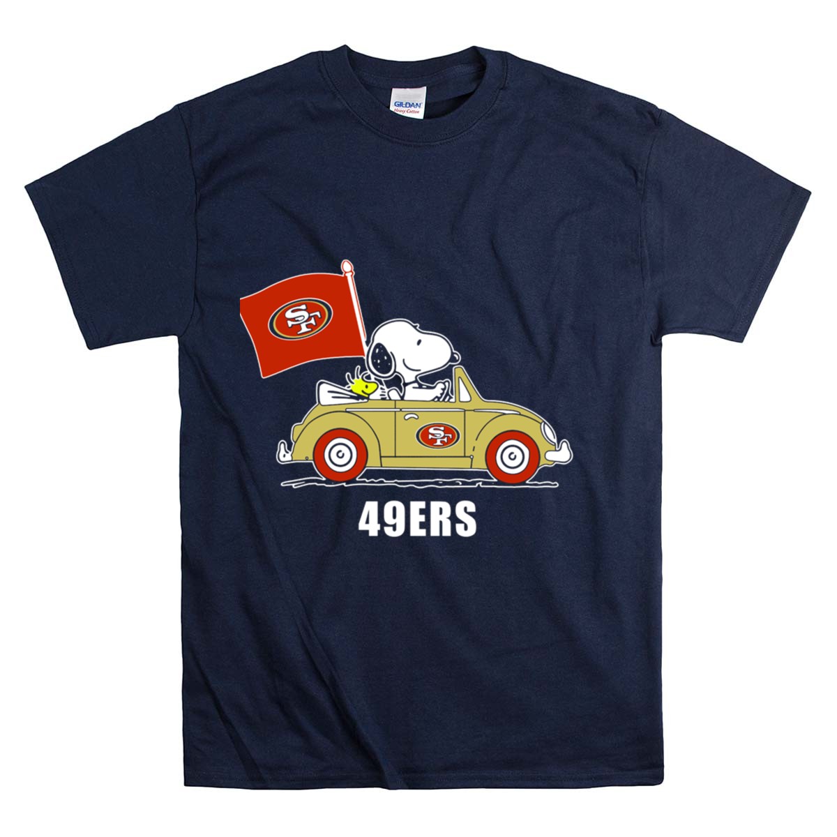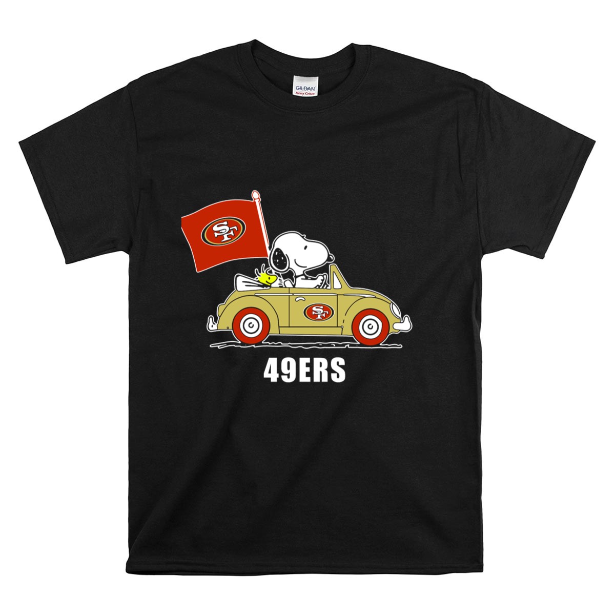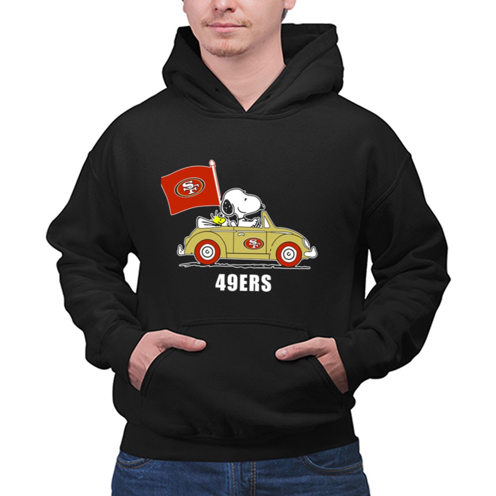 San Francisco 49Ers Snoopy Driving Car With Sf Flag Shirt
