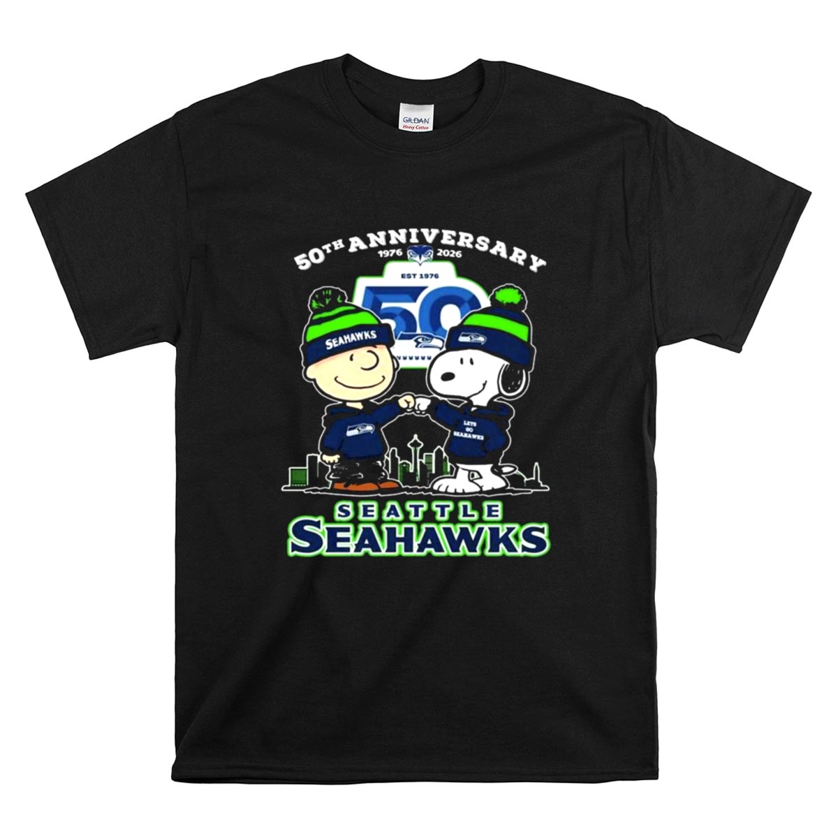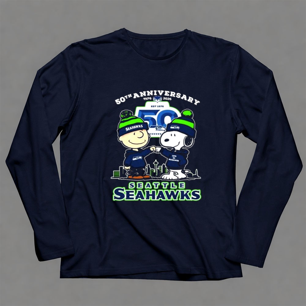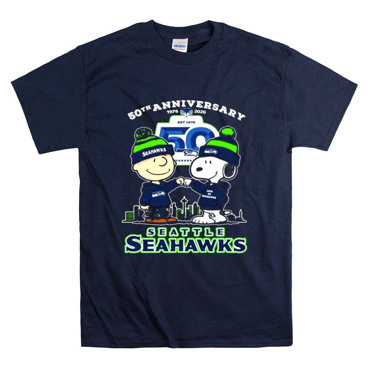 Seattle Seahawks 50th Anniversary 1976 2026 Snoopy And Charlie Brown High Fight Shirt