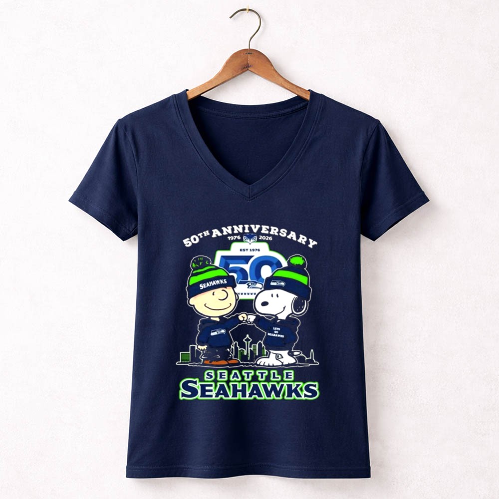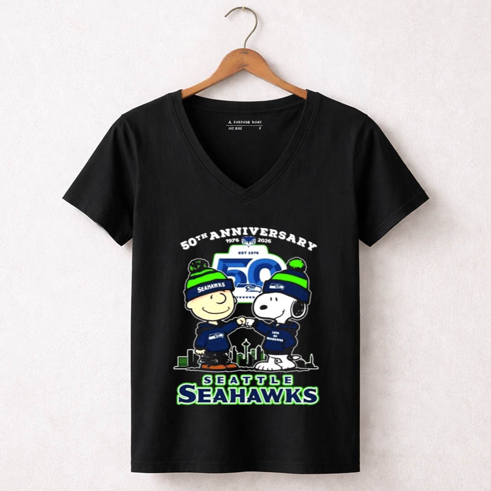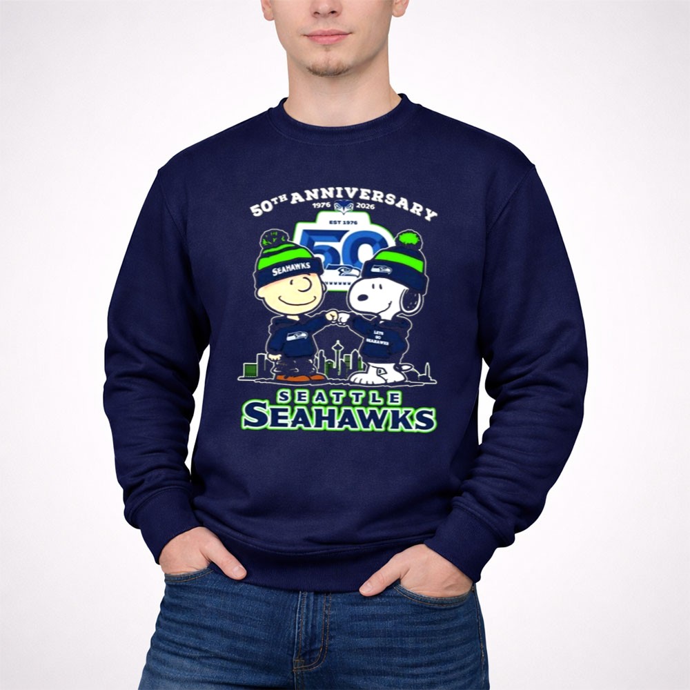Seattle Seahawks 50th Anniversary 1976 2026 Snoopy And Charlie Brown High Fight Shirt