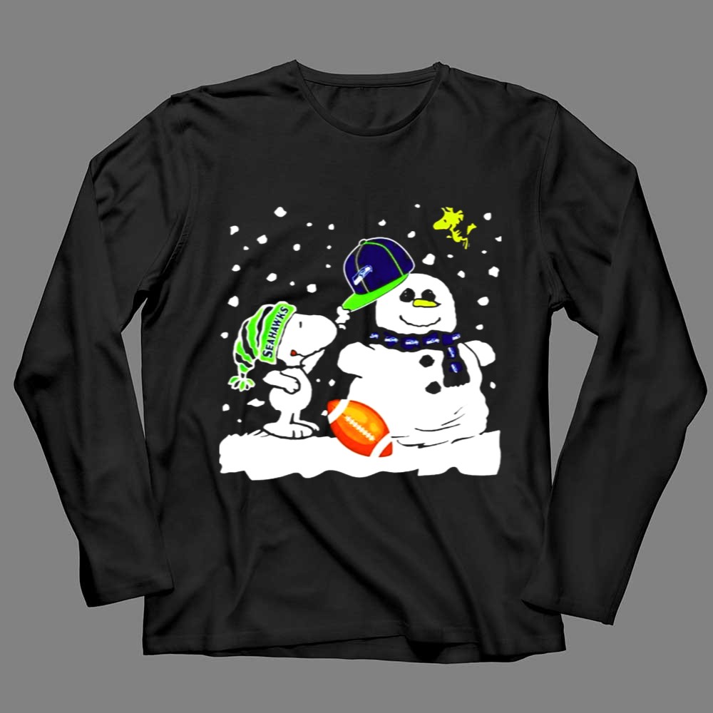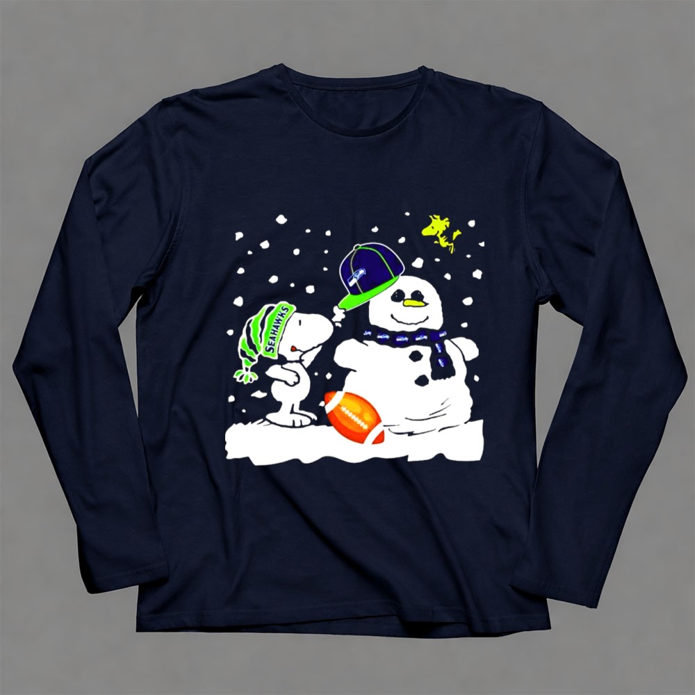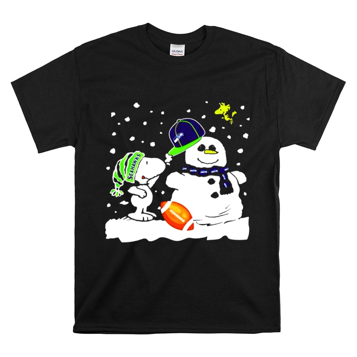 Seattle Seahawks Snoopy Snowman Hat Winter Football Scene Shirt