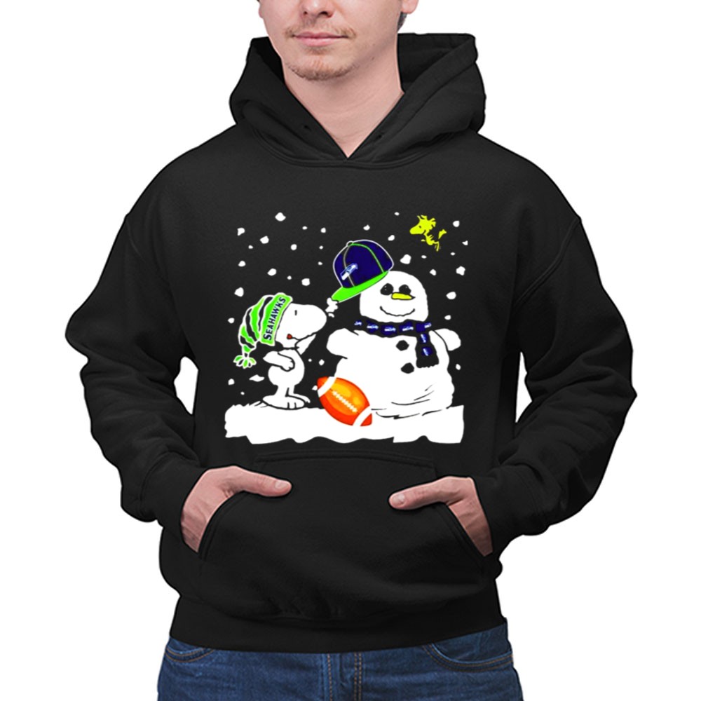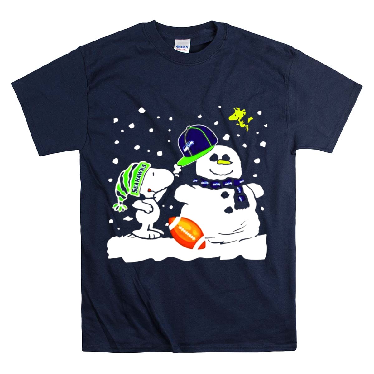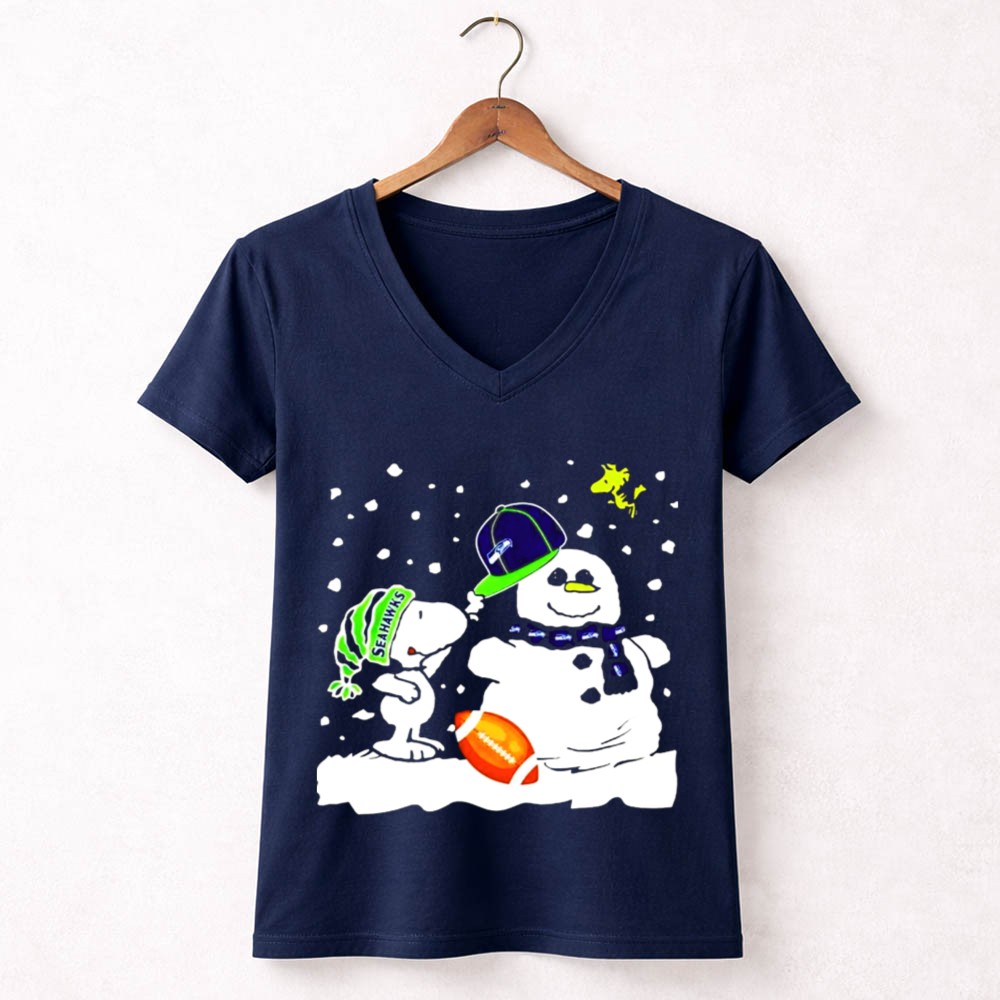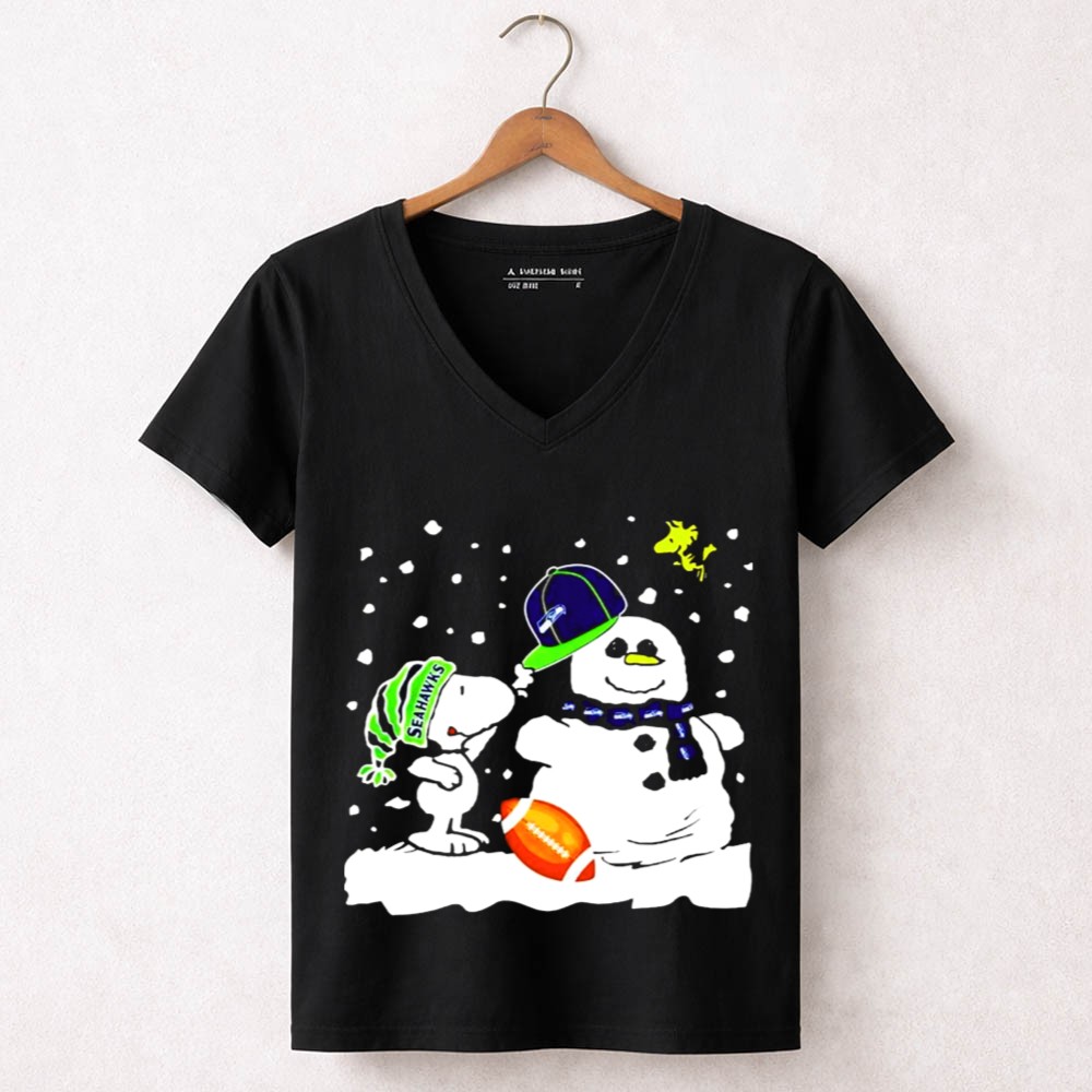 Seattle Seahawks Snoopy Snowman Hat Winter Football Scene Shirt