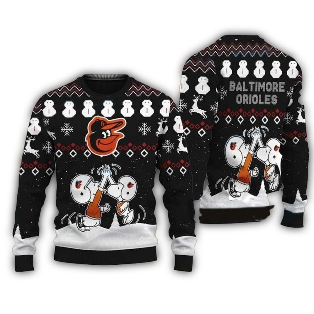 Snoopy And Charlie Brown Baltimore Orioles Christmas Ugly Sweater