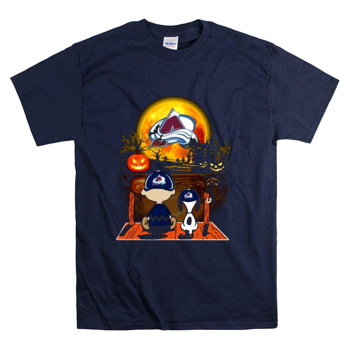 Snoopy and Charlie Brown Pumpkin Colorado Avalanche Halloween Moon Shirt