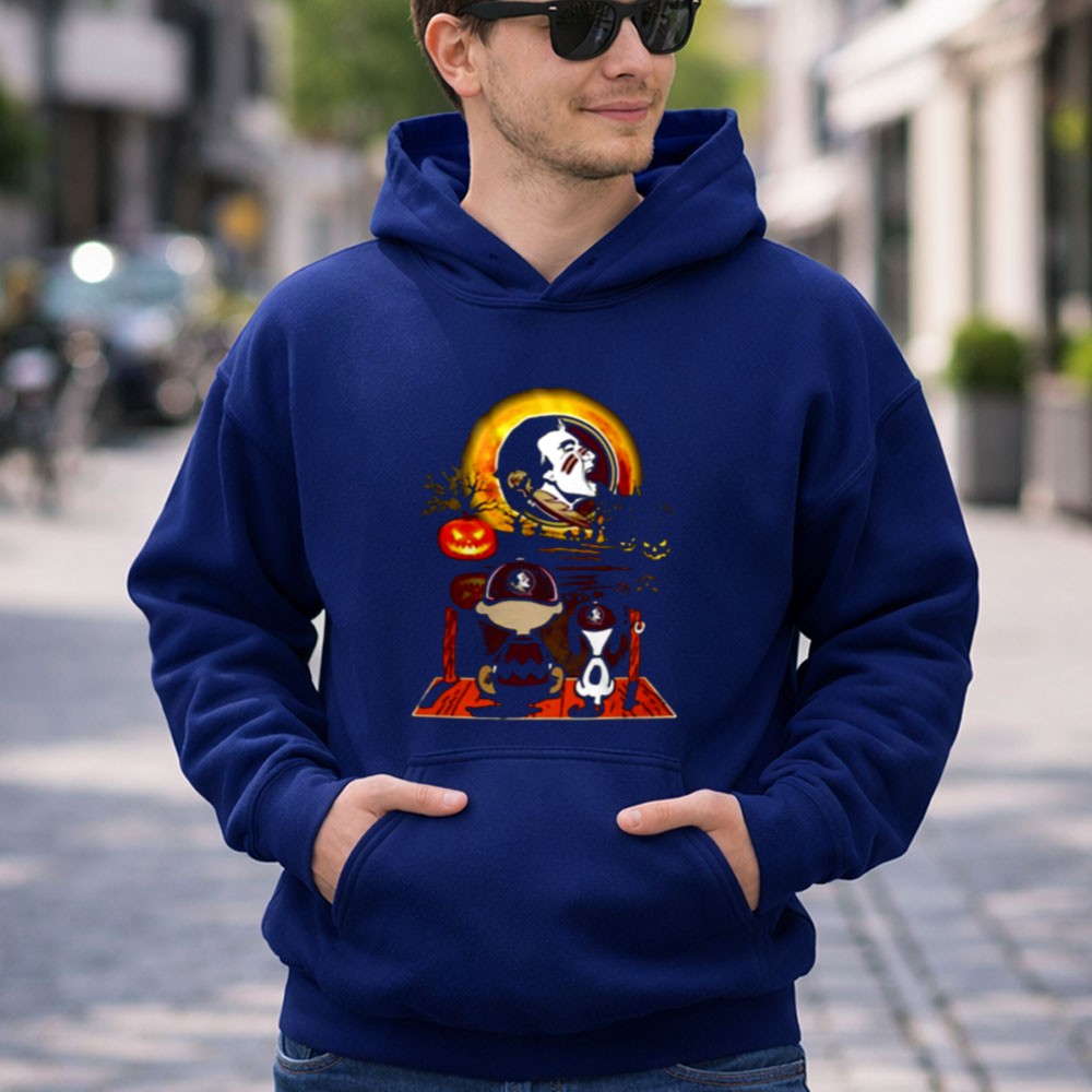 Florida State Seminoles, FSU football, Snoopy Halloween design, Charlie Brown fan apparel, pumpkin-themed shirt, college football spirit, Halloween festivities, game day fun