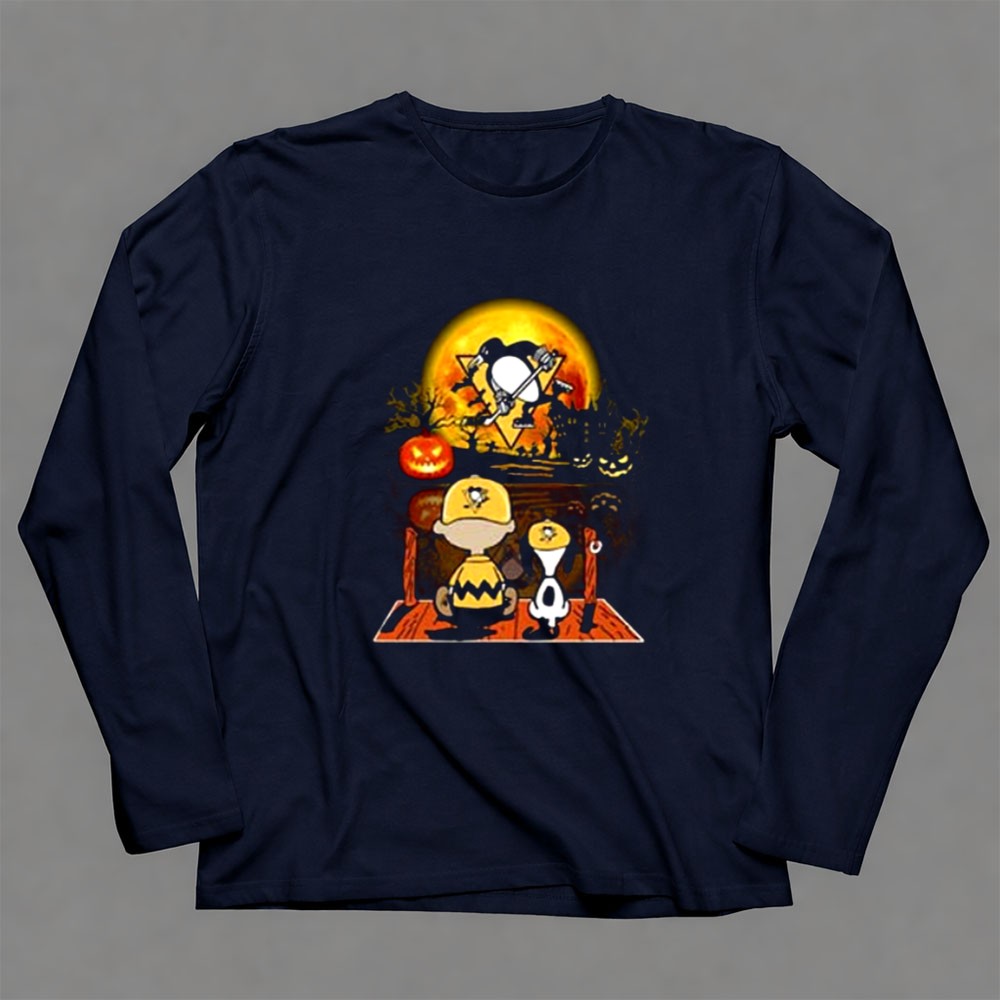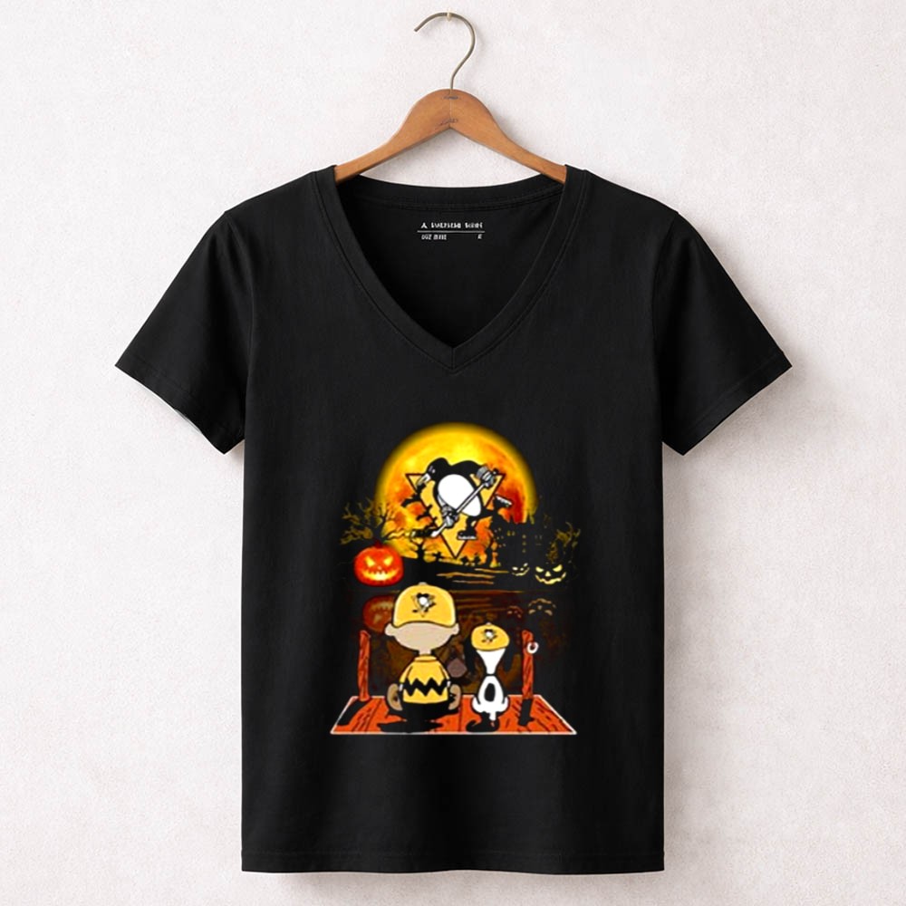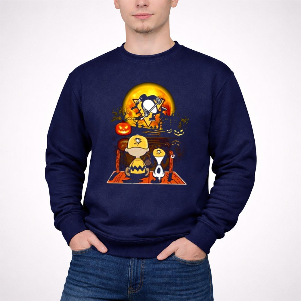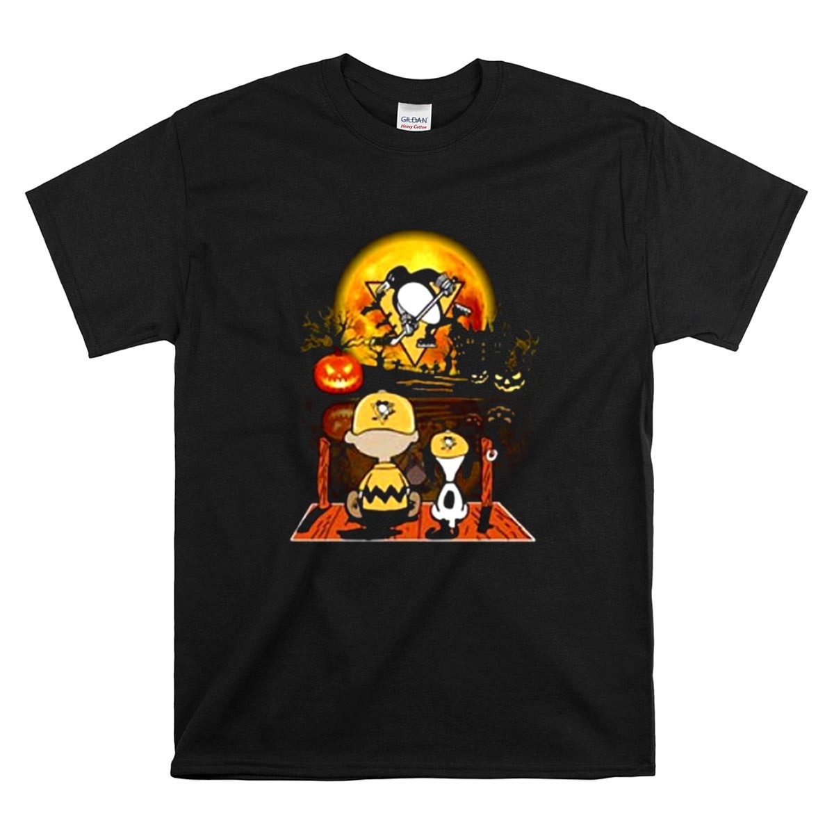 Snoopy And Charlie Brown Pumpkin Pittsburgh Penguins Halloween Moon Shirt