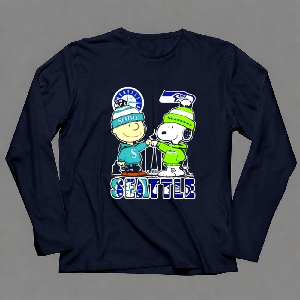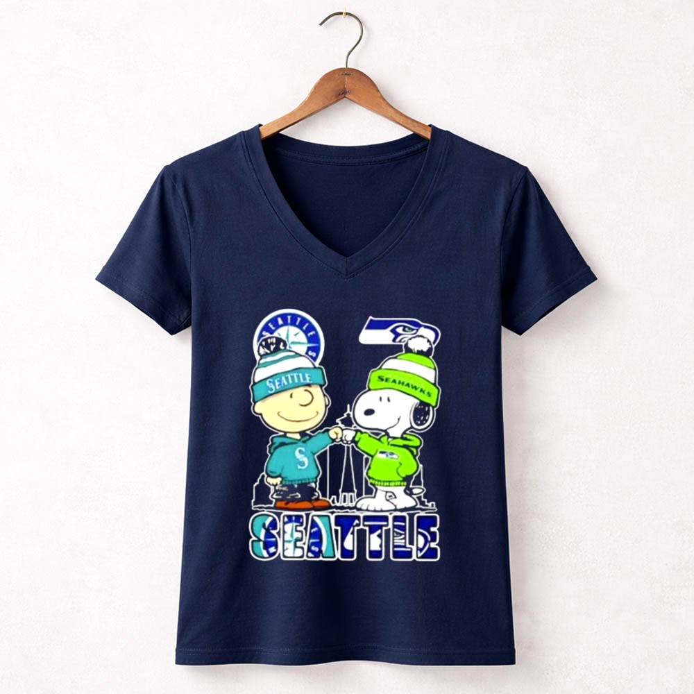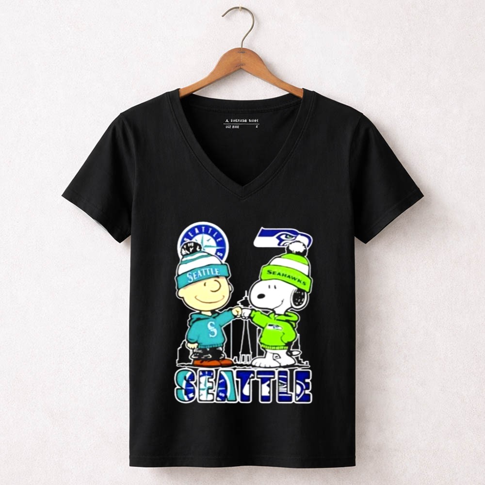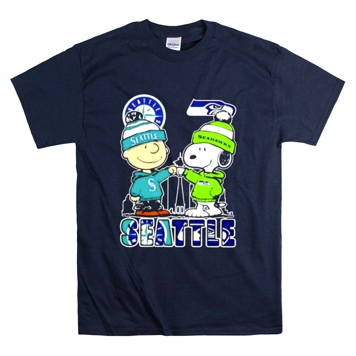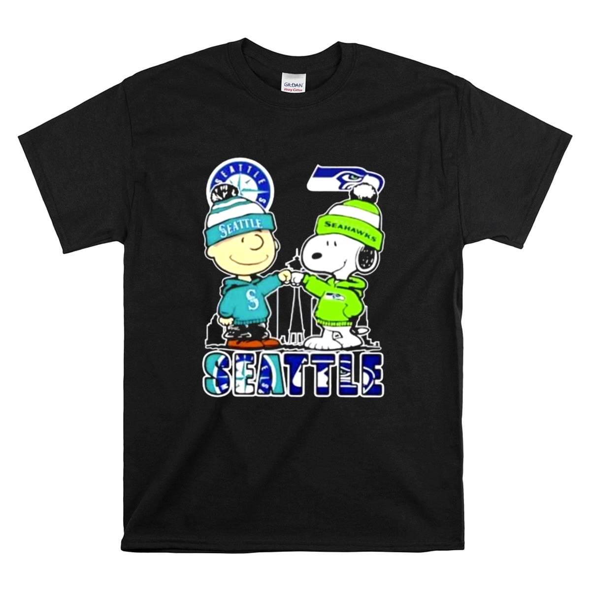 Snoopy And Charlie Brown Seattle City Sports Mariners X Seahawks Skyline Shirt