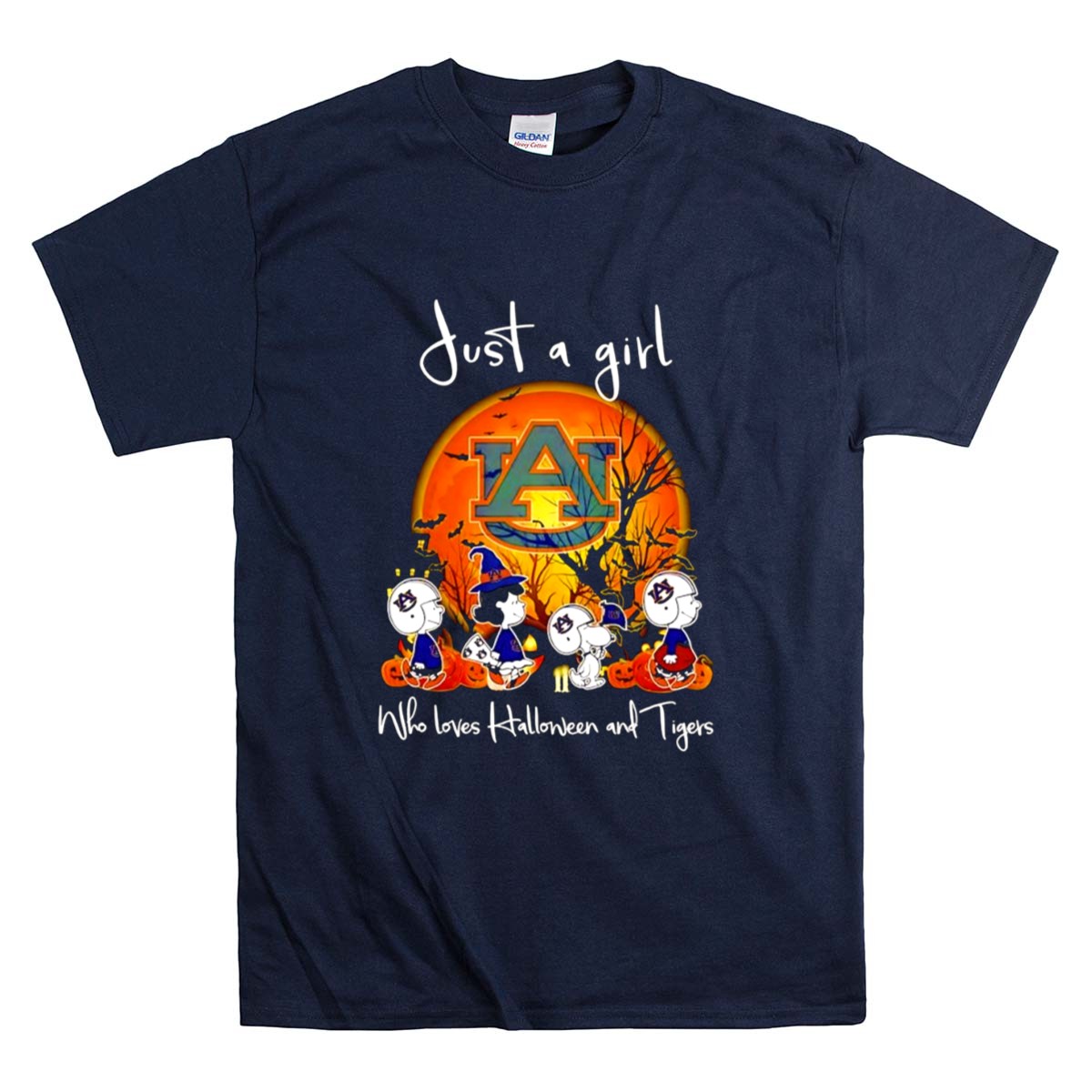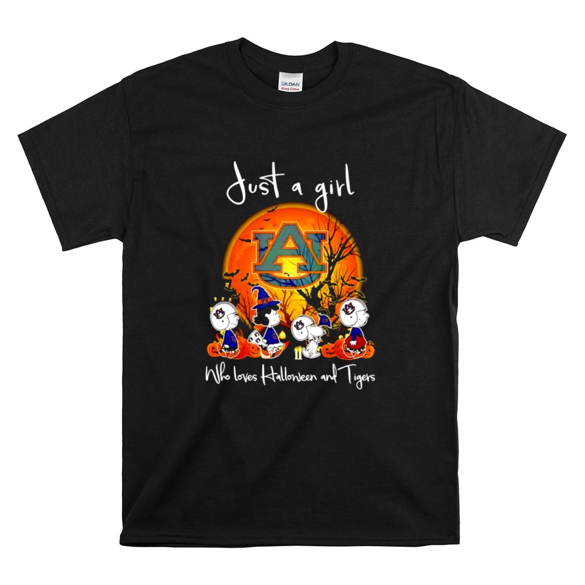 Snoopy and friends x Auburn Tigers Just a girl who loves Halloween Shirt