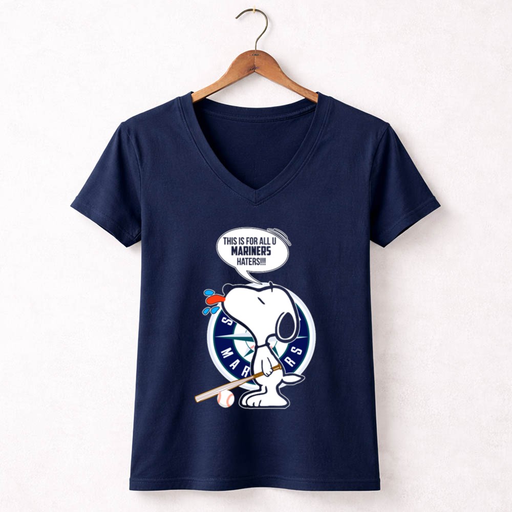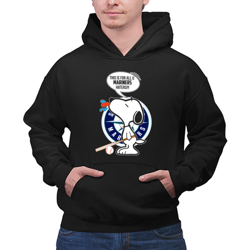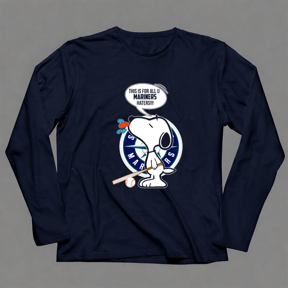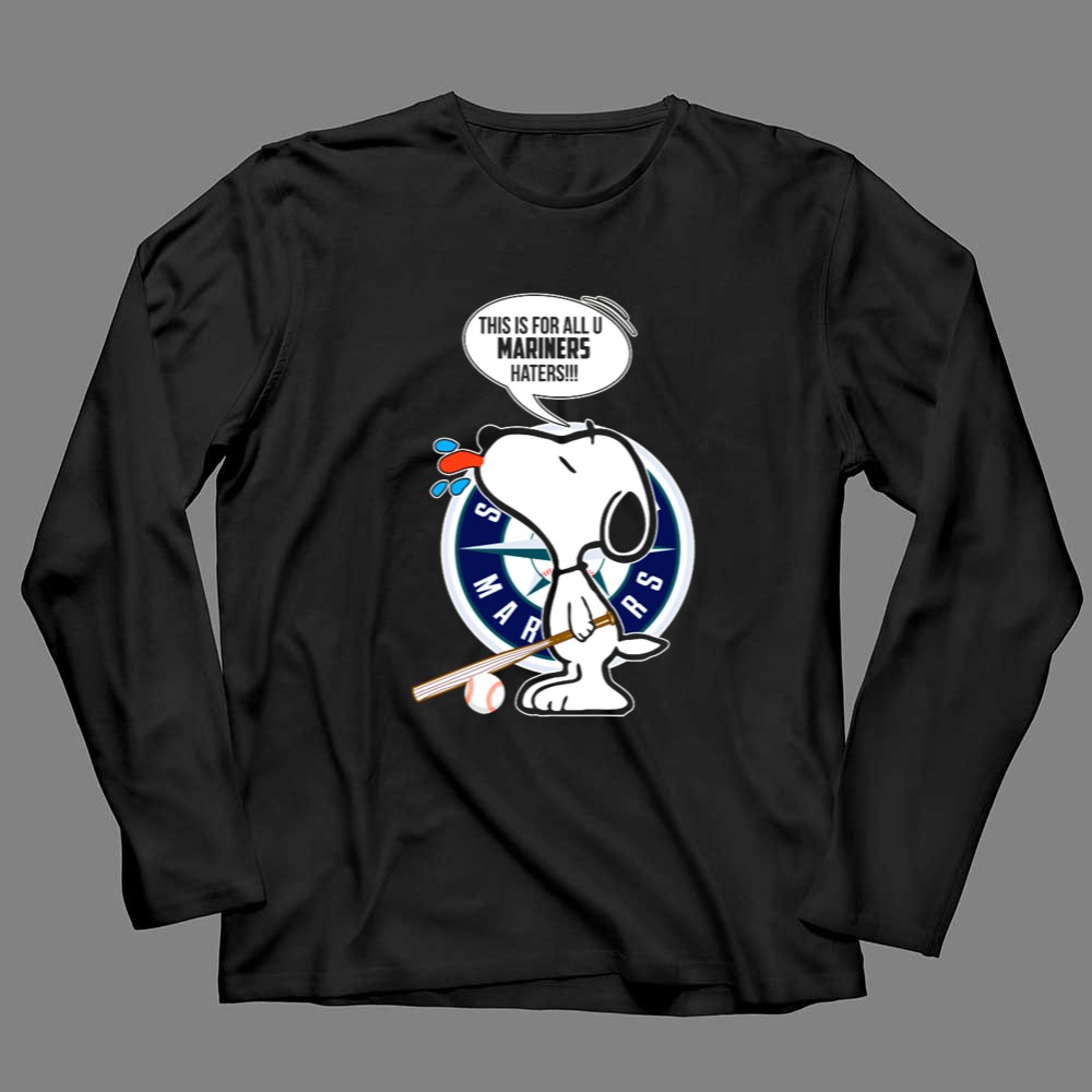 Snoopy and Seattle Mariners Logo with Baseball Bat and Mariners Haters Speech Bubble Shirt