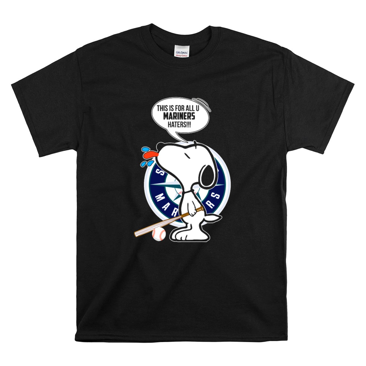 Be the first to review “Snoopy and Seattle Mariners Logo with Baseball Bat and Mariners Haters Speech Bubble Shirt”