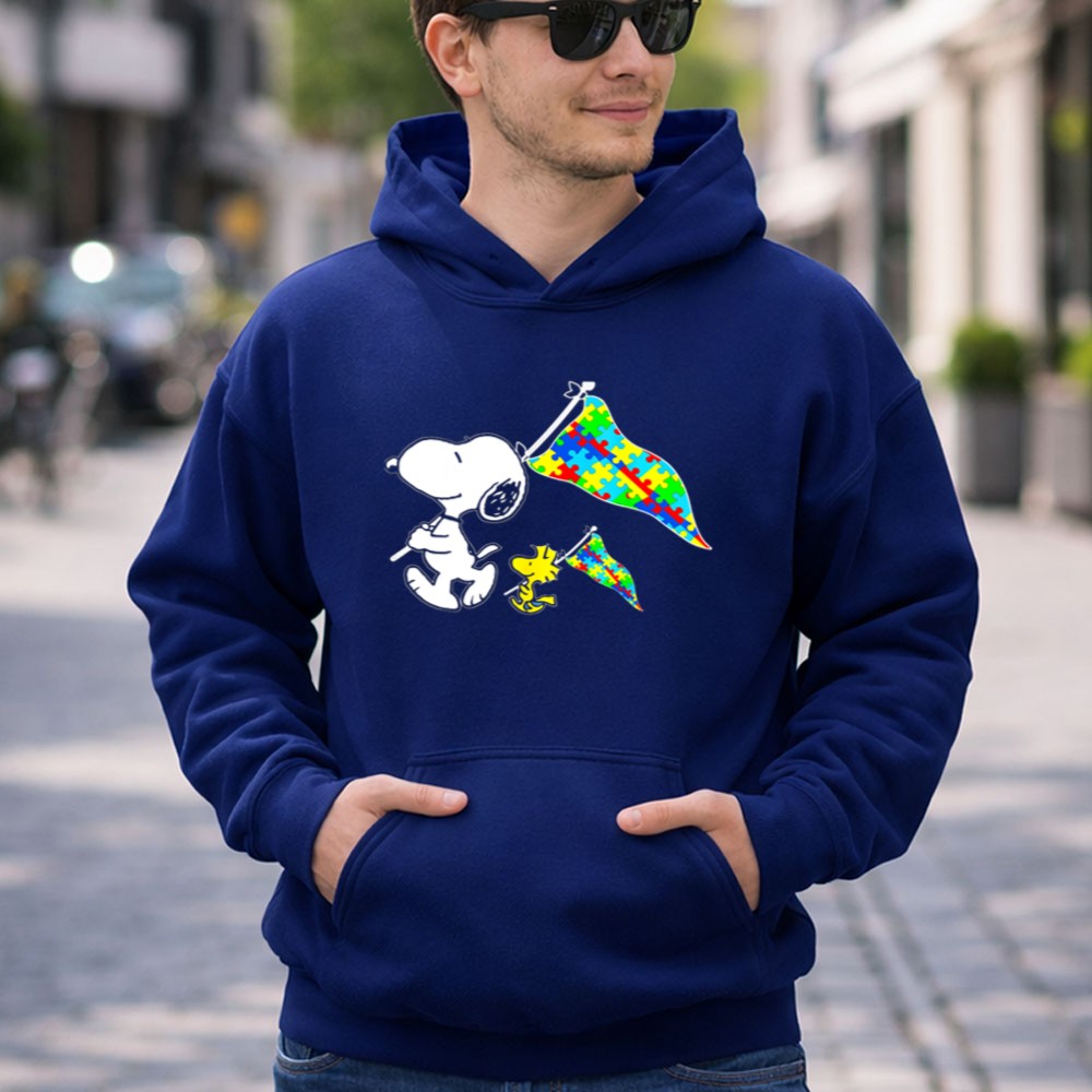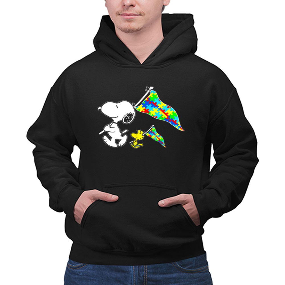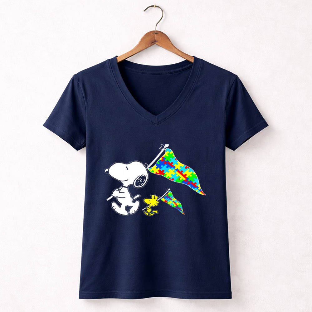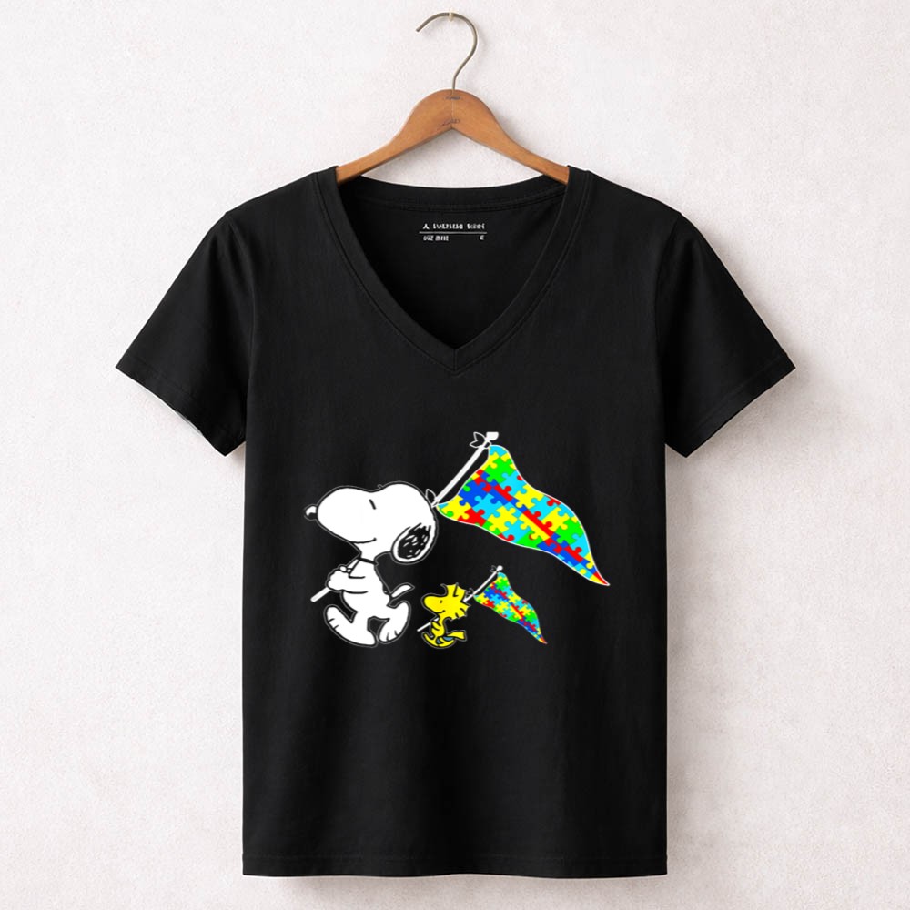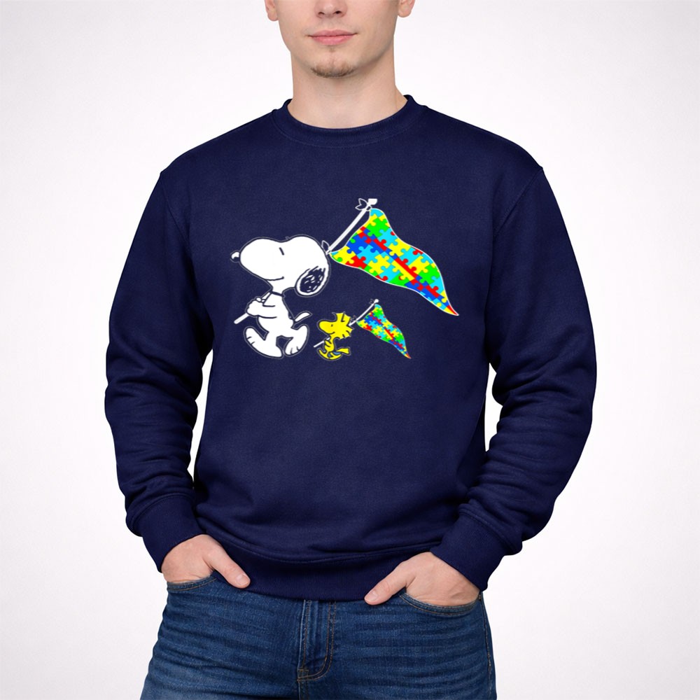 Snoopy And Woodstock Autism Awareness Puzzle Flags Shirt