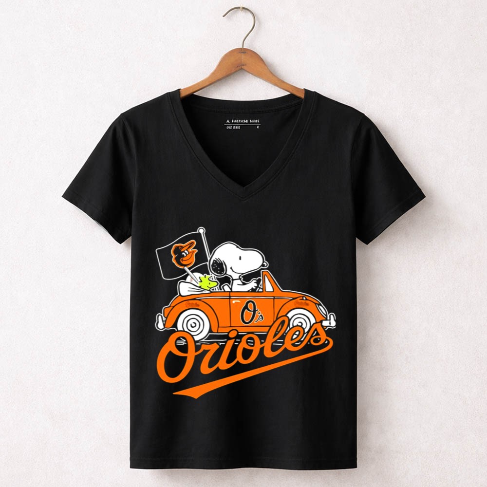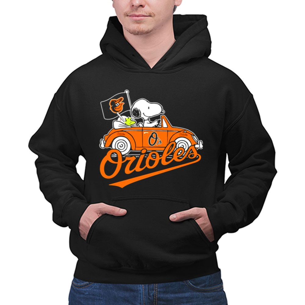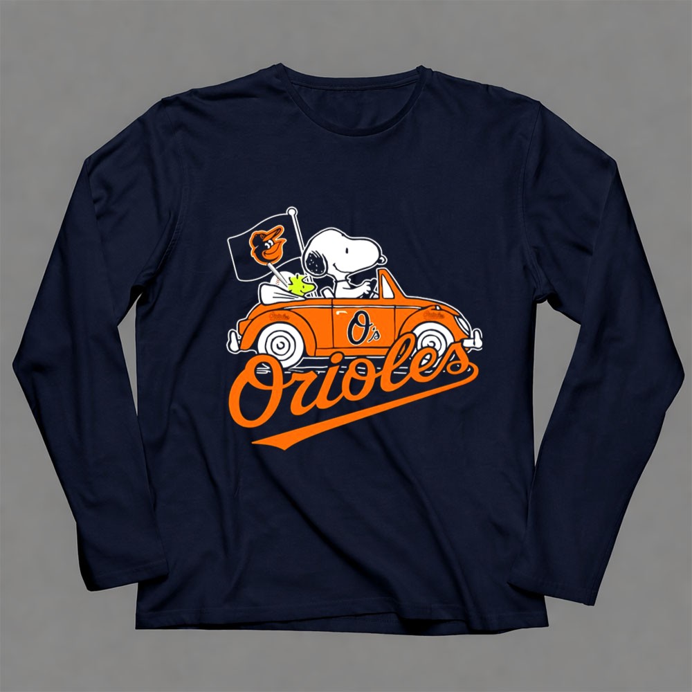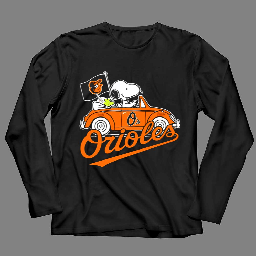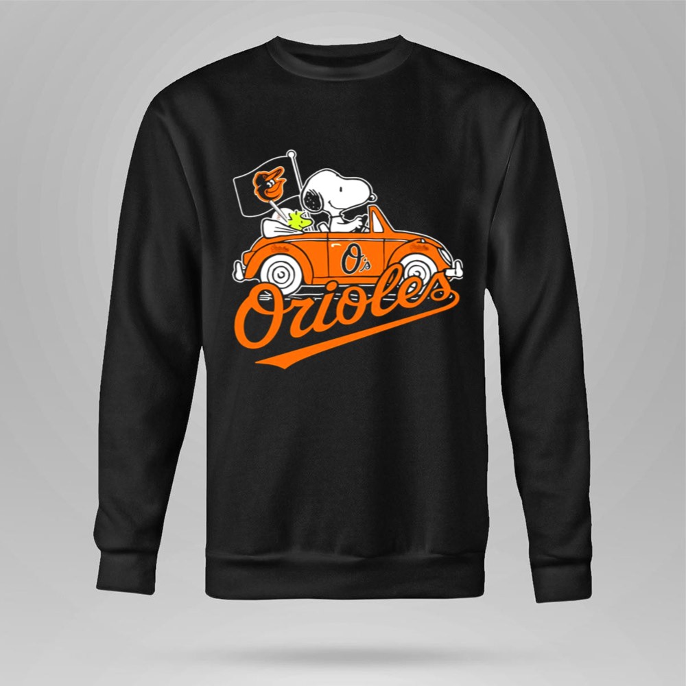 Snoopy And Woodstock Driving Baltimore Orioles Car With Flag Shirt