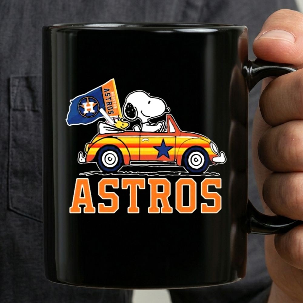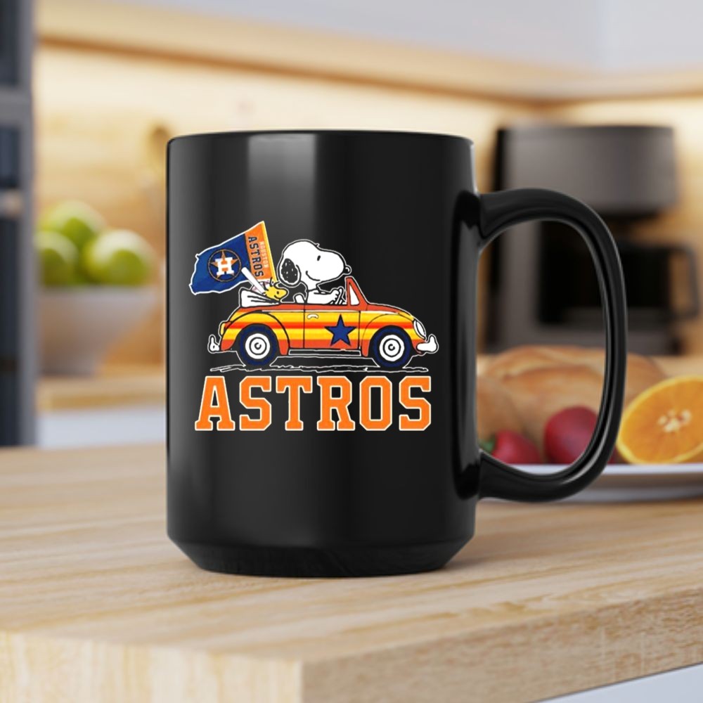 Snoopy And Woodstock Driving Car Houston Astros Flag Mug