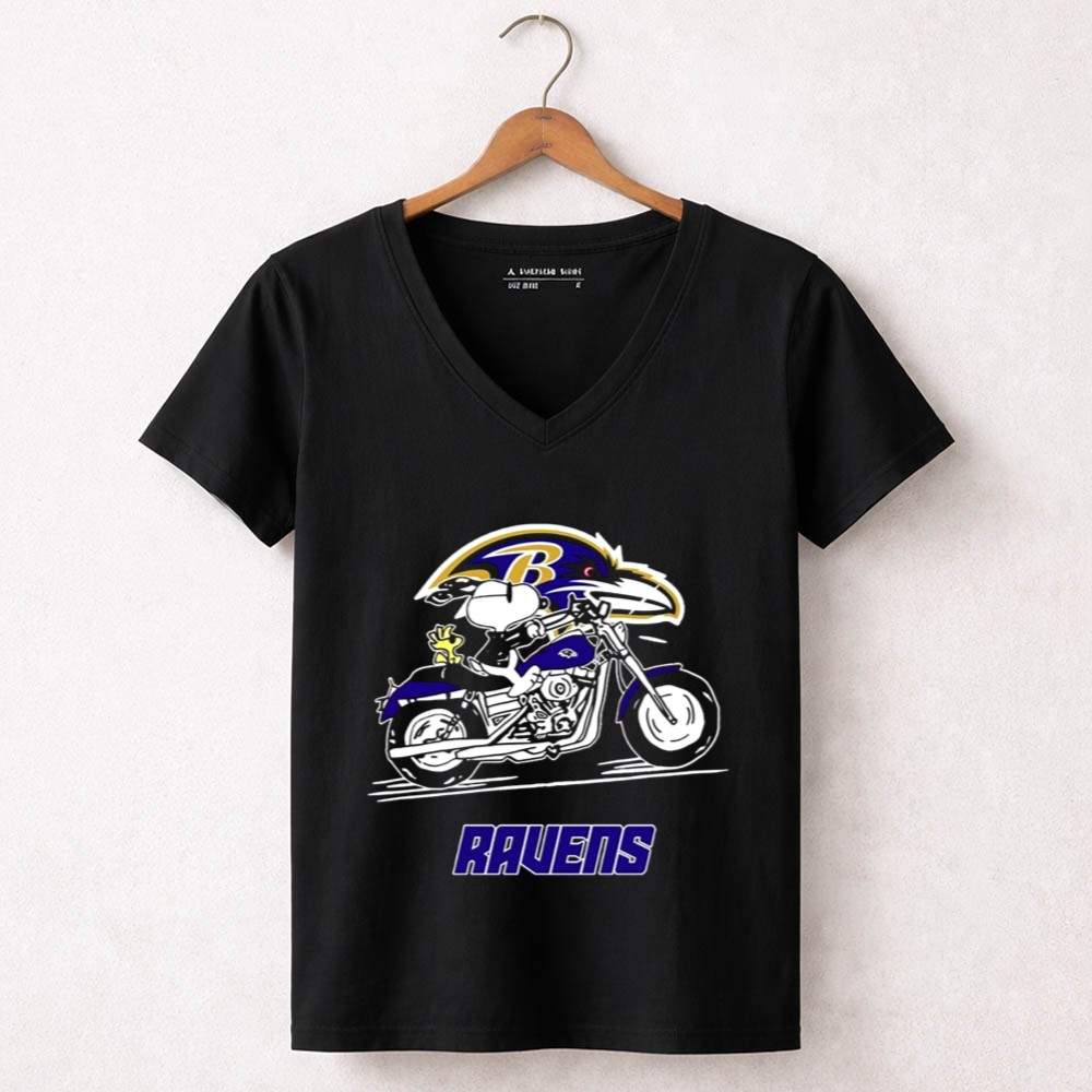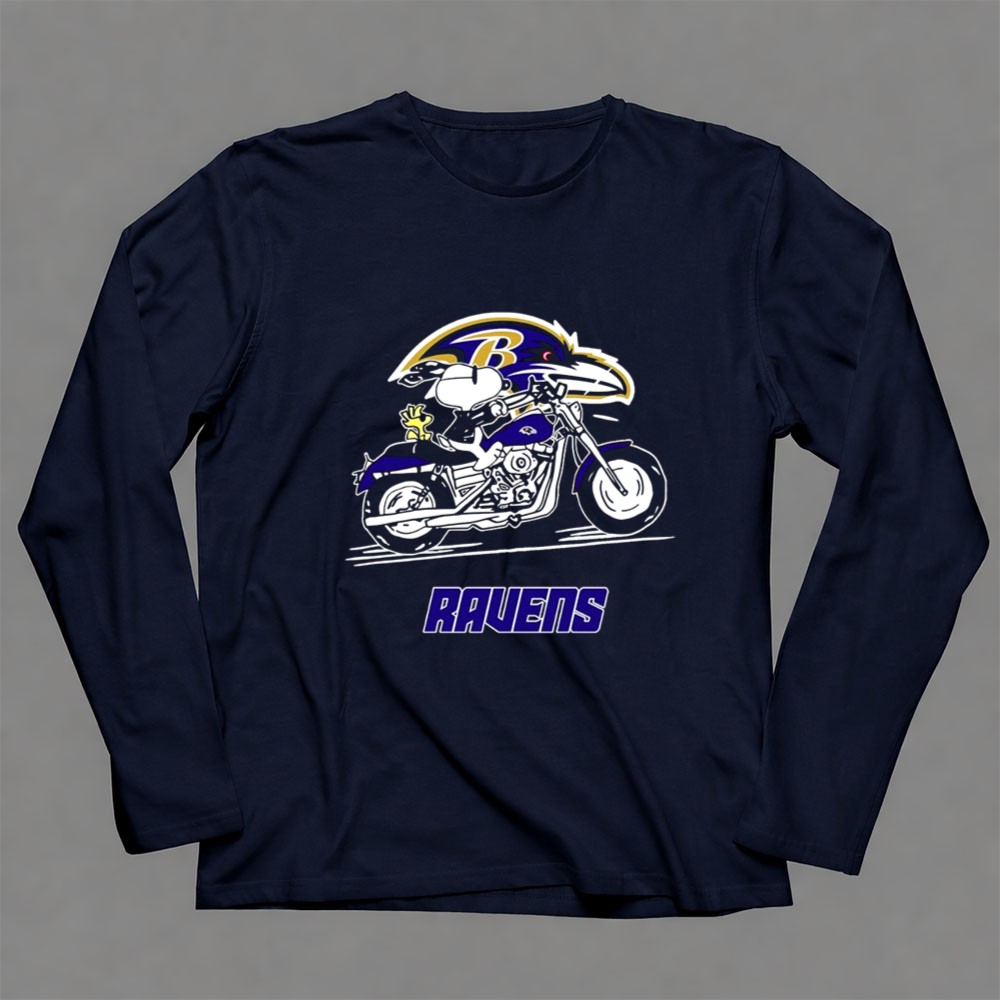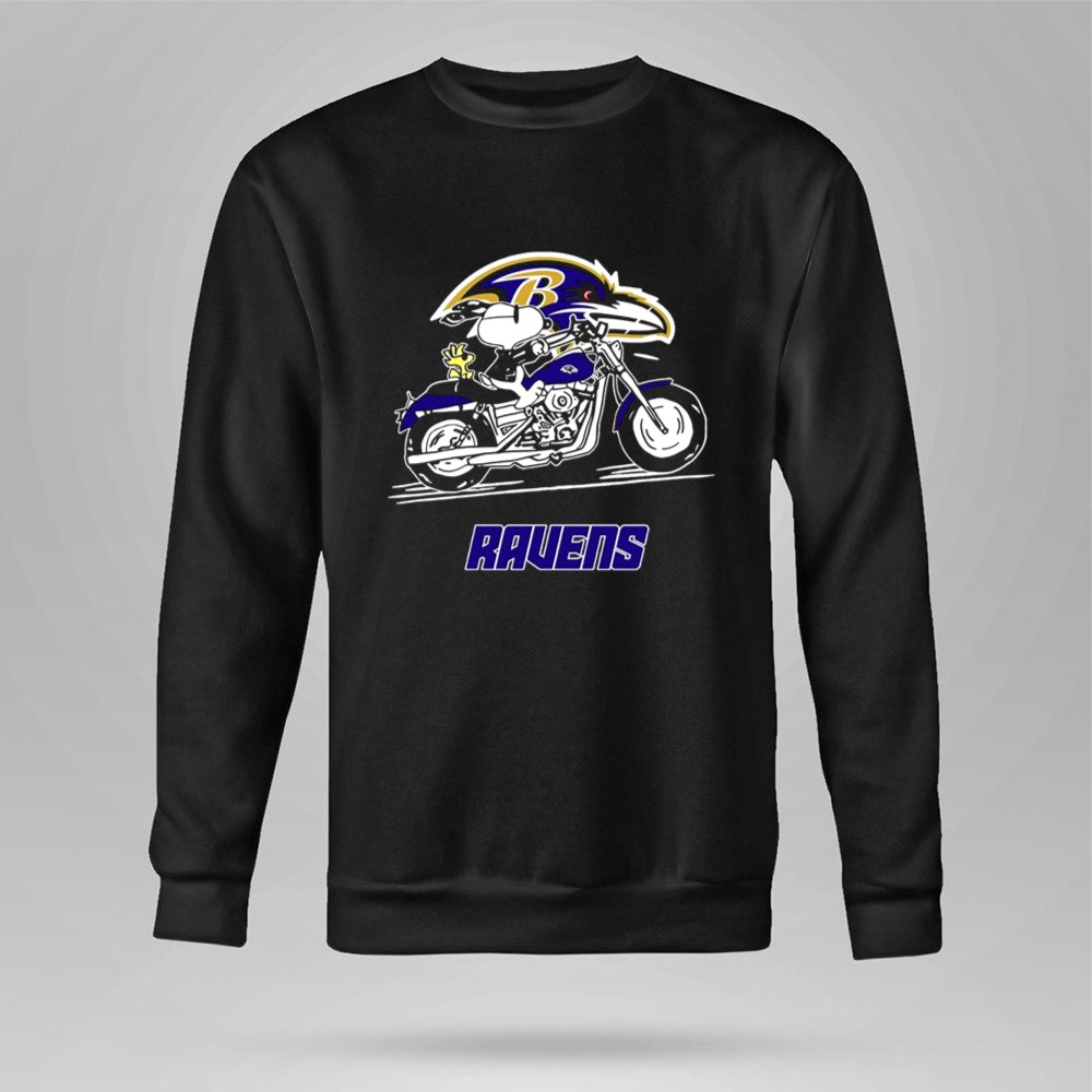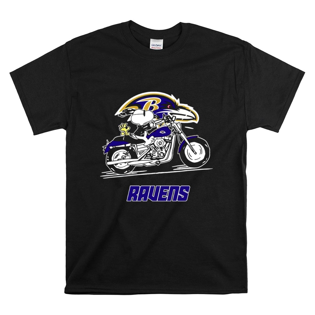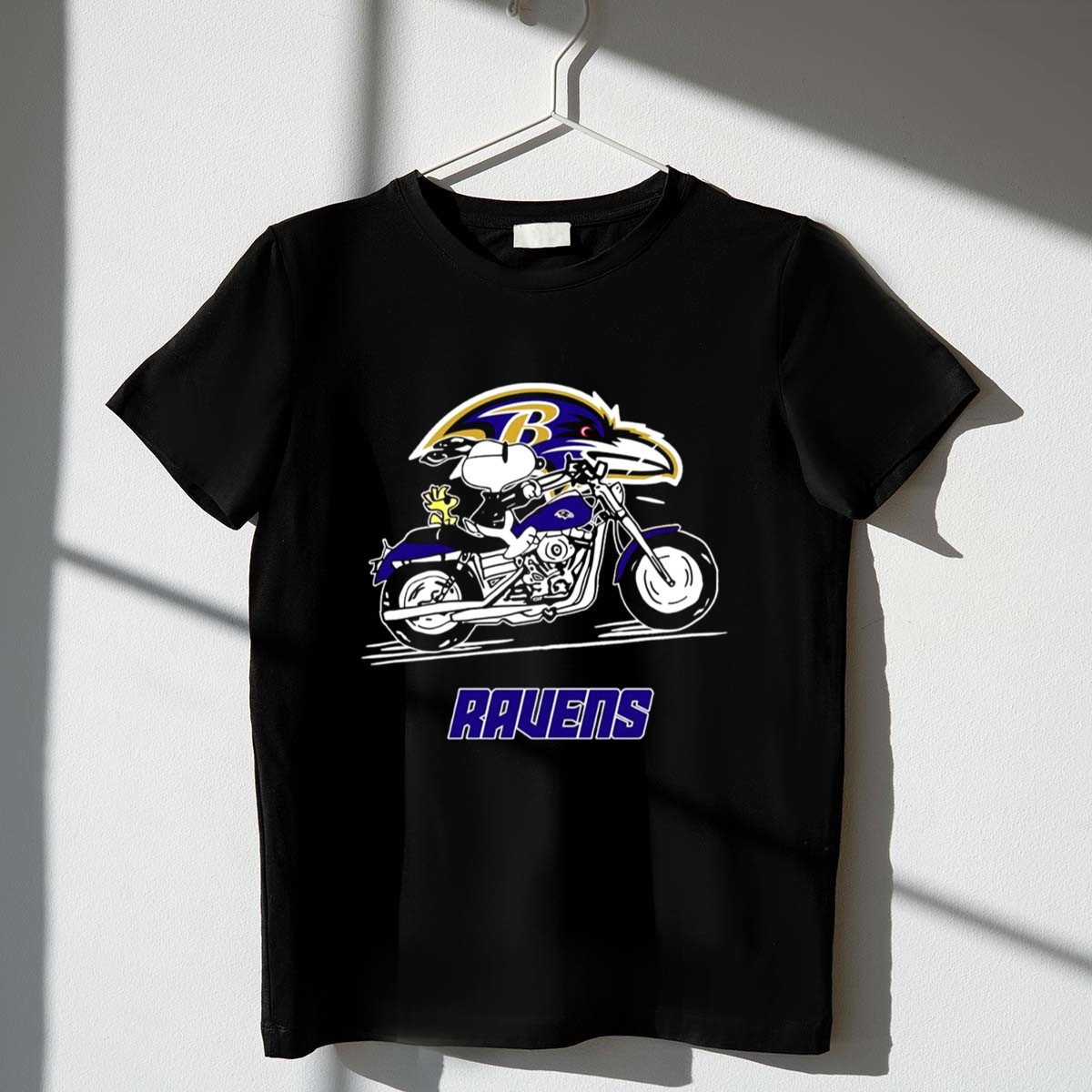 Snoopy And Woodstock Driving Motorbike Baltimore Ravens Shirt
