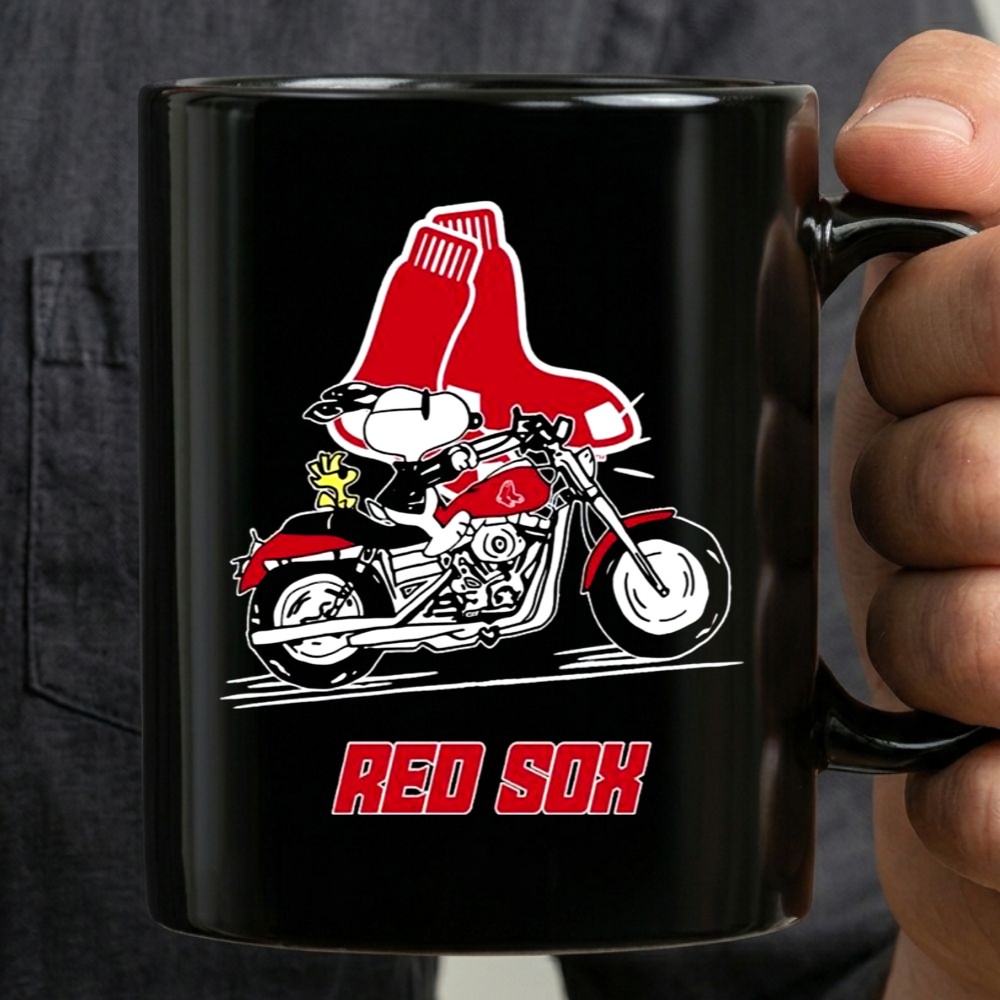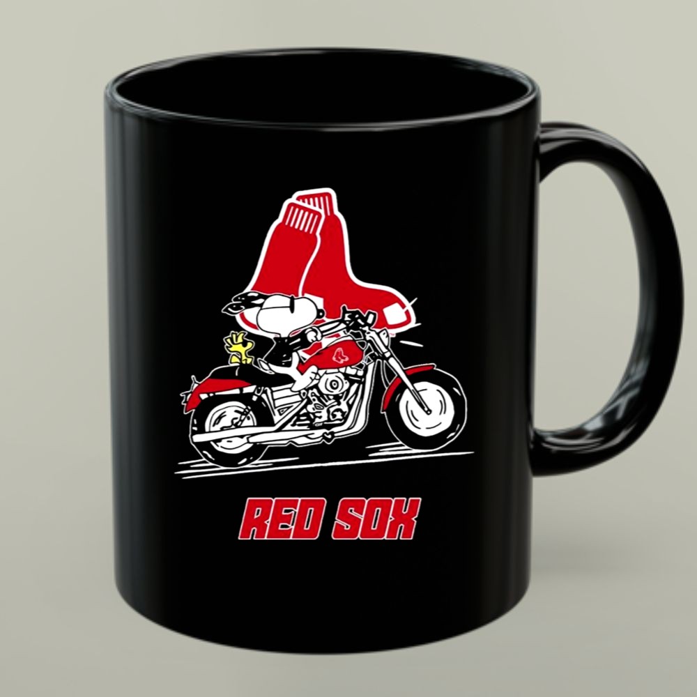 Snoopy and Woodstock driving motorbike Boston Red Sox Mug