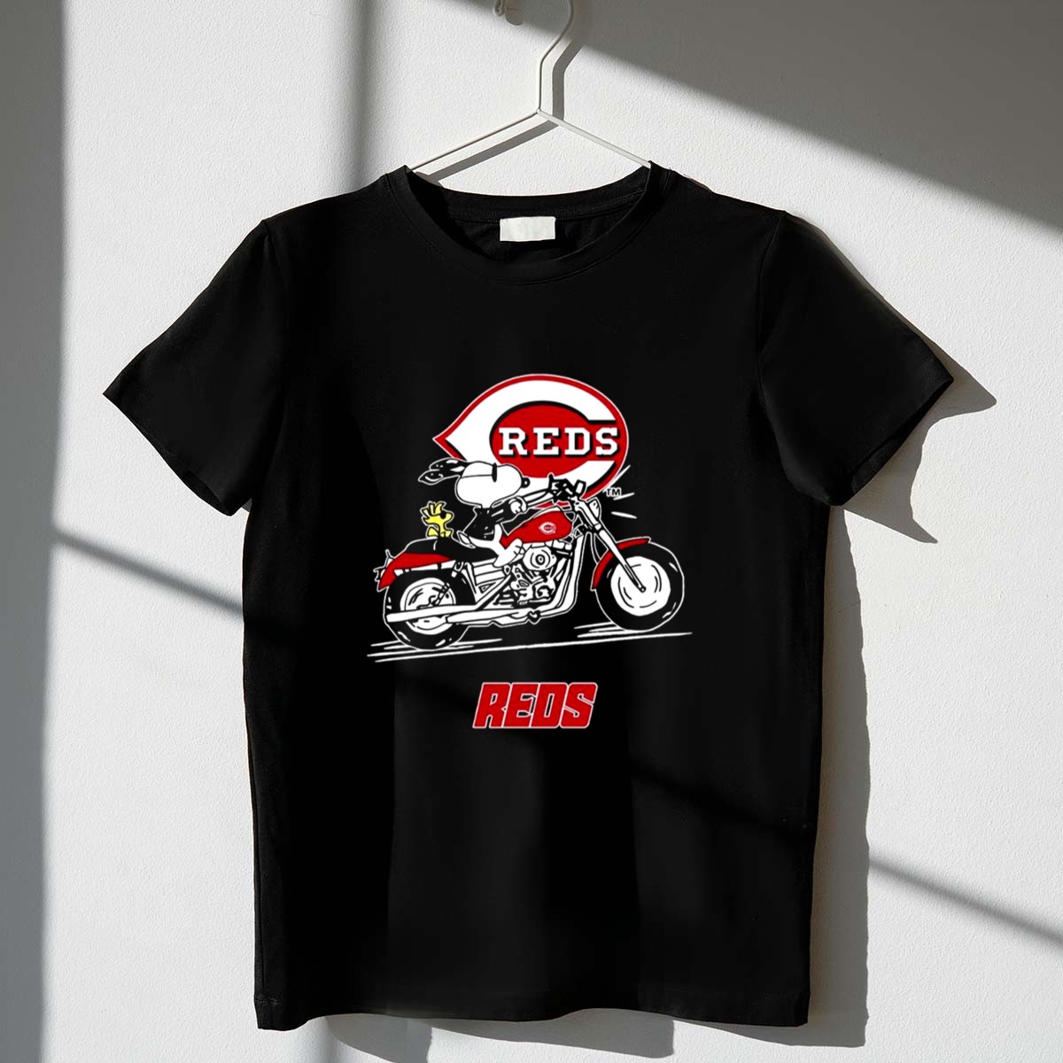 Snoopy And Woodstock Driving Motorbike Cincinnati Reds Shirt