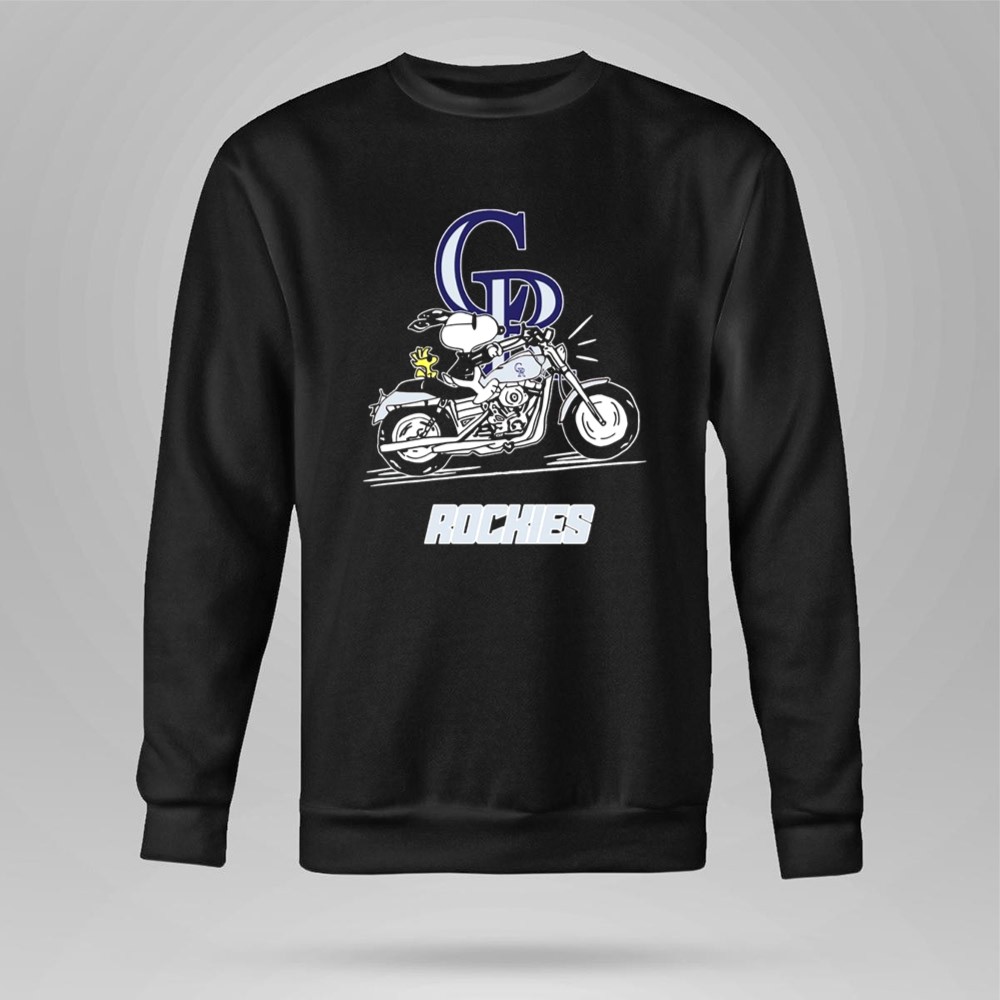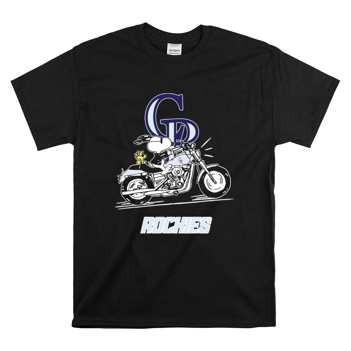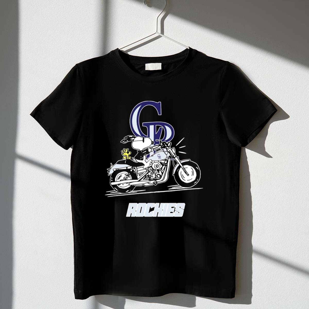 Snoopy and Woodstock driving motorbike Colorado Rockies Shirt