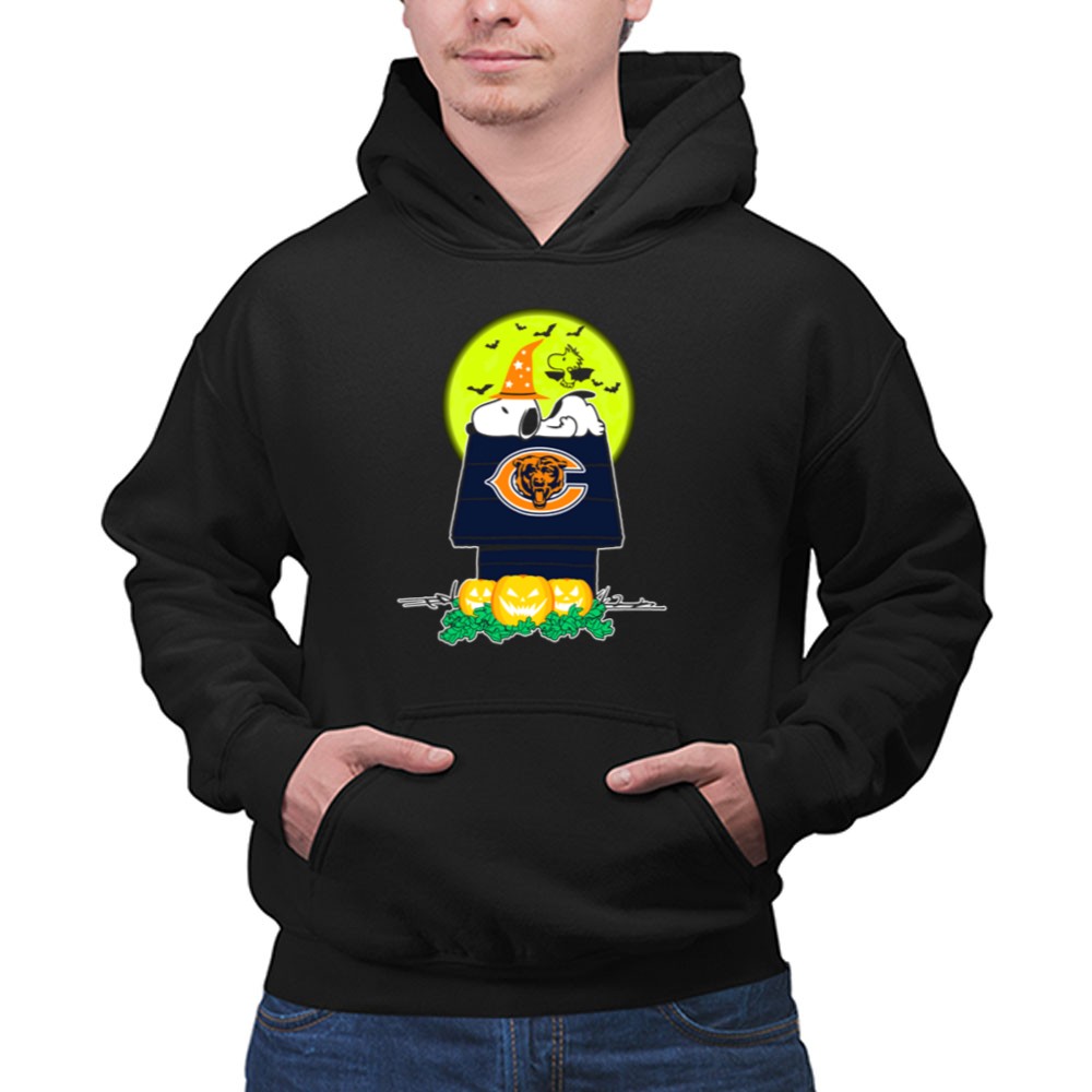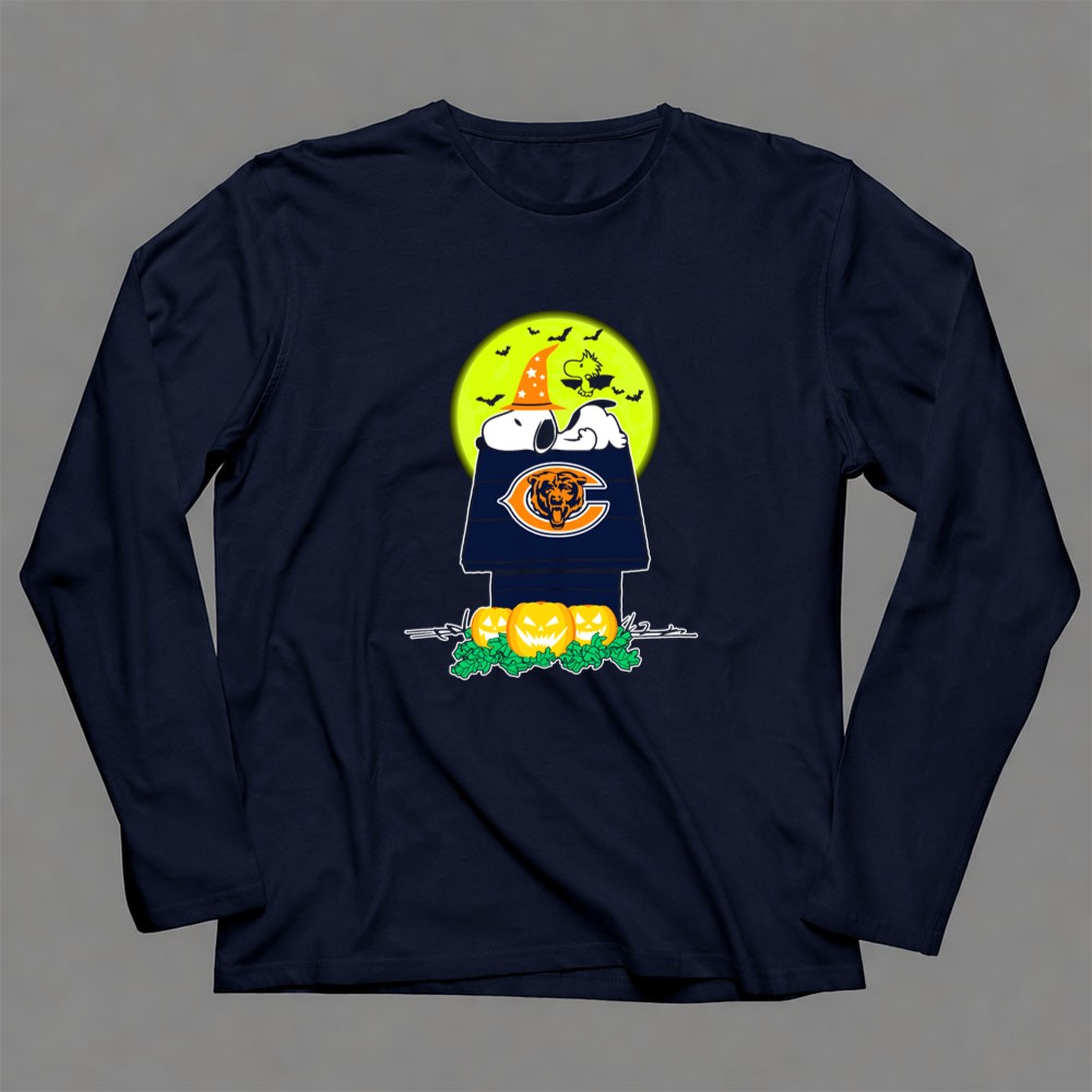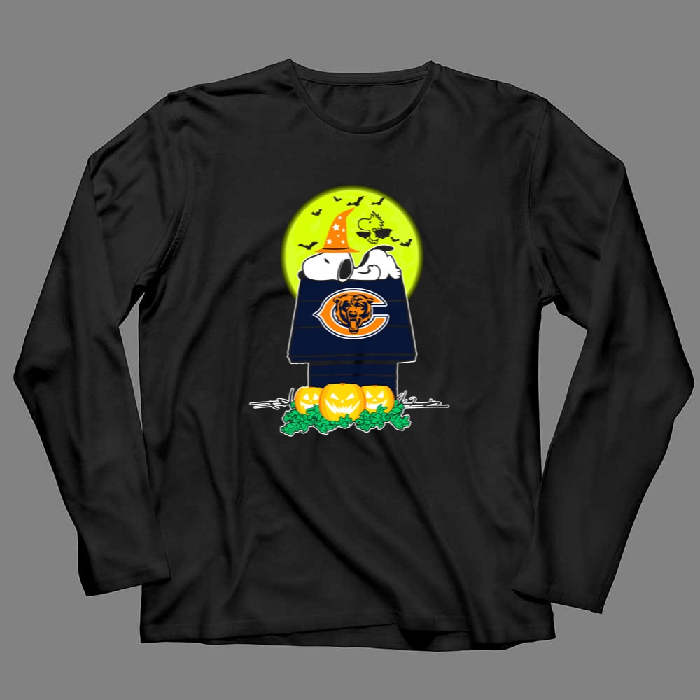 Snoopy And Woodstock With Chicago Bears Logo Halloween Scene Shirt