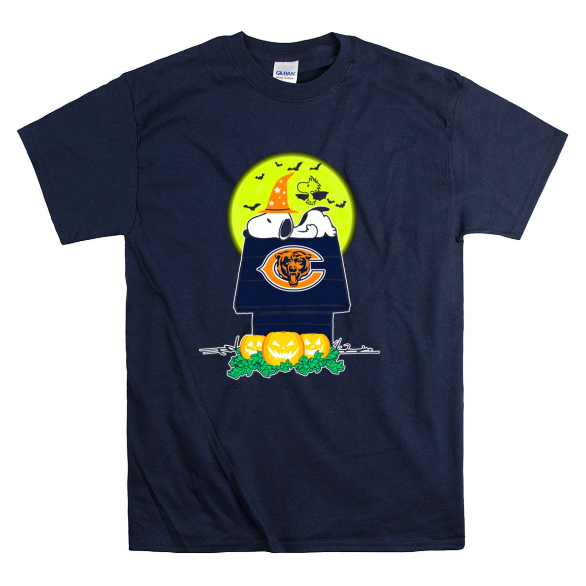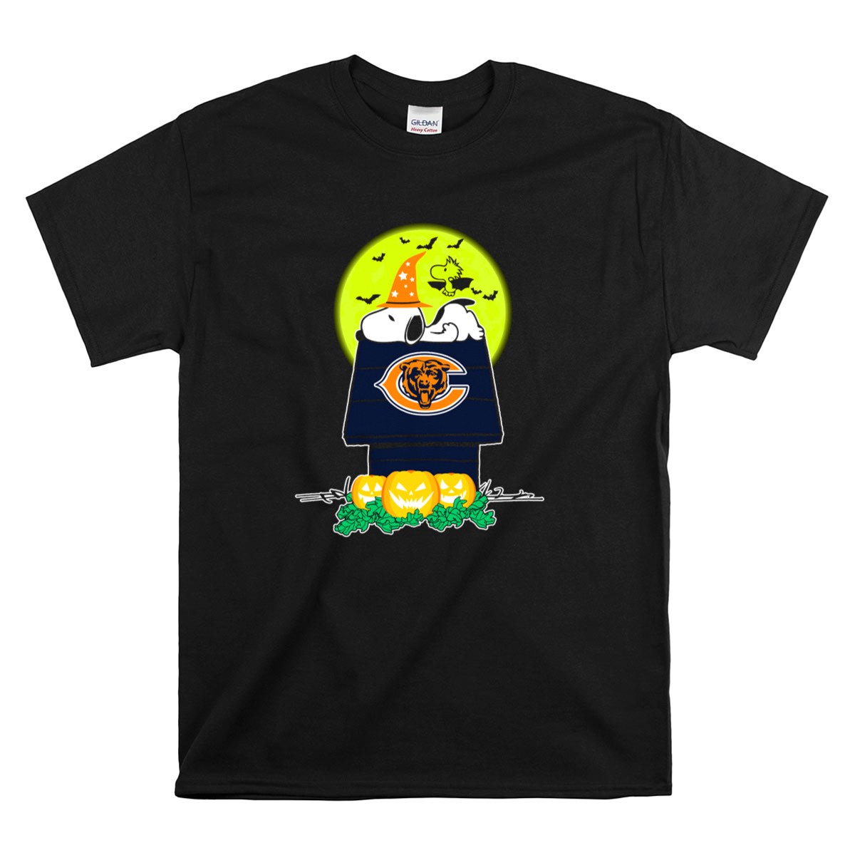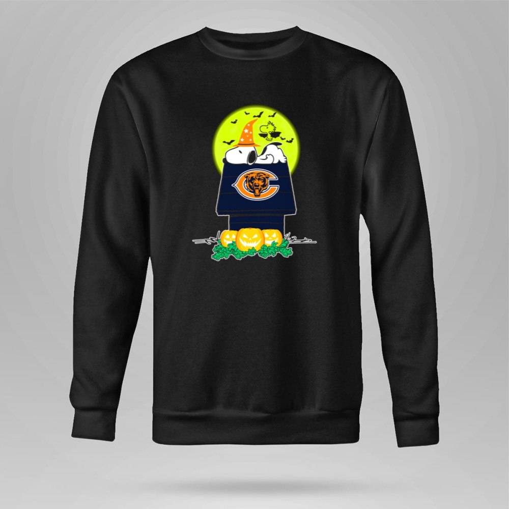 Snoopy And Woodstock With Chicago Bears Logo Halloween Scene Shirt