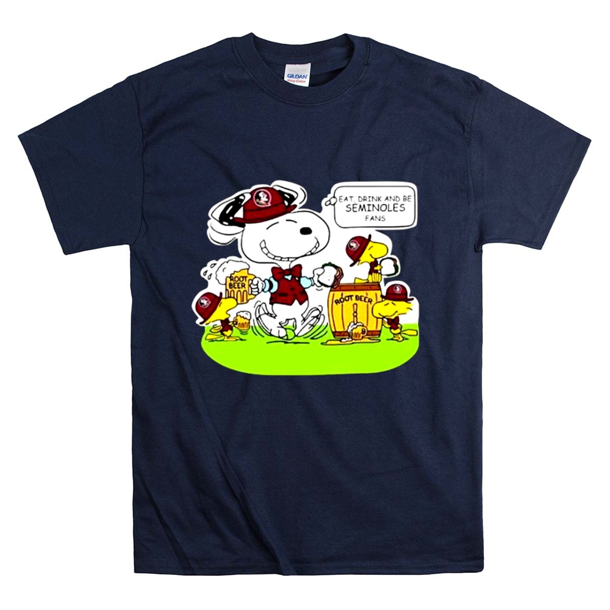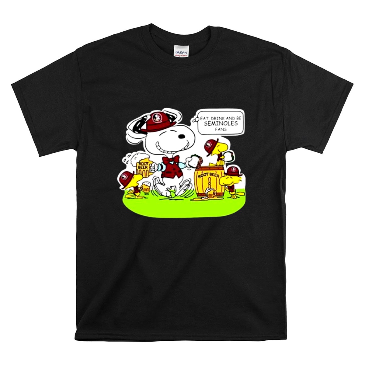 Florida State Seminoles, college football pride, Snoopy merchandise, Woodstock fans, tailgating fun, game day vibes, iconic cartoon characters, premium cotton t-shirt