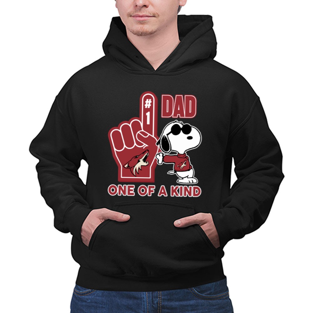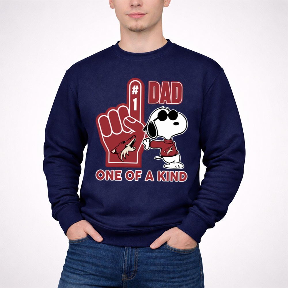 Arizona Coyotes fan gear, Snoopy sports apparel, #1 Dad t-shirt, game day outfit, Phoenix hockey pride, family sports bonding, unique dad gifts, NHL fandom apparel