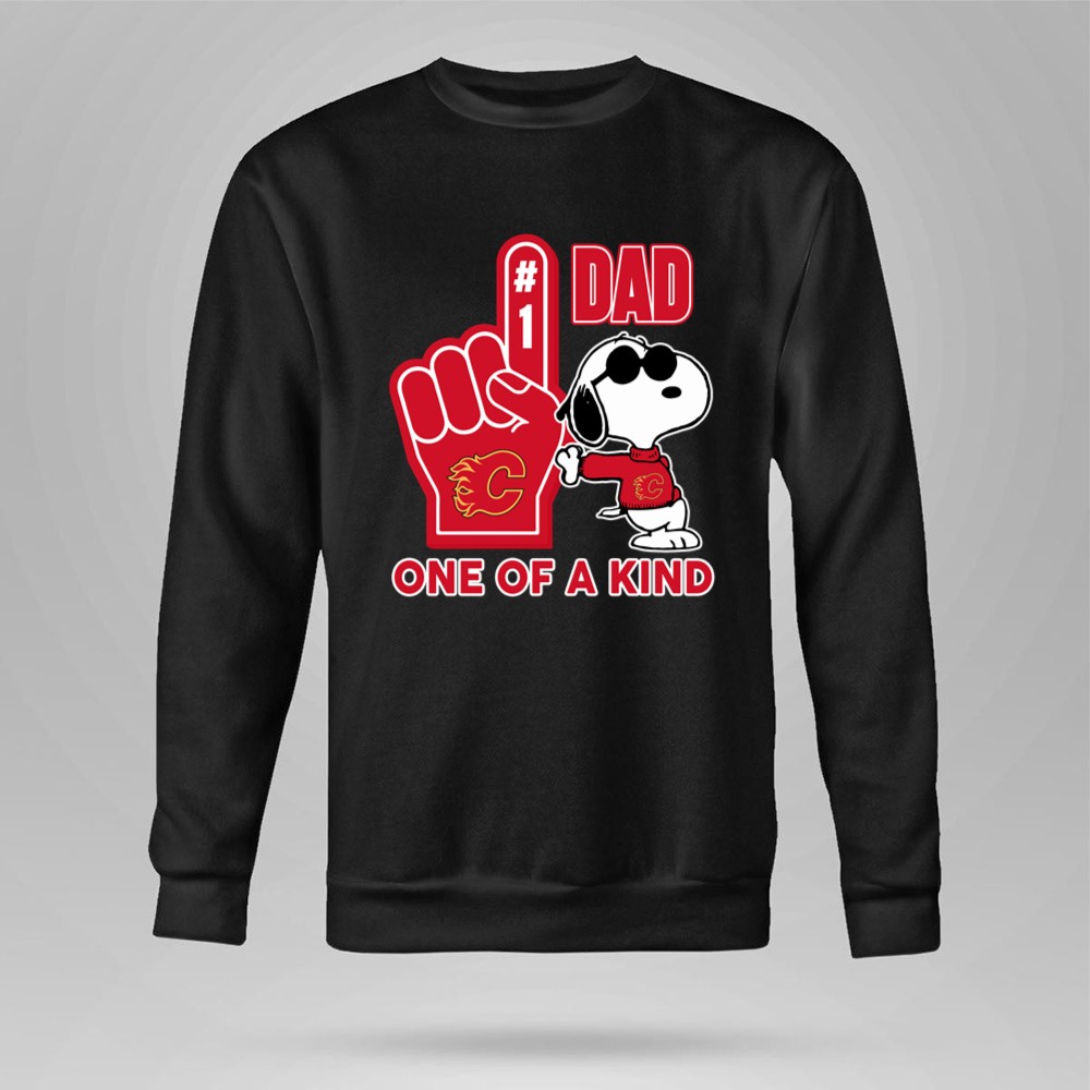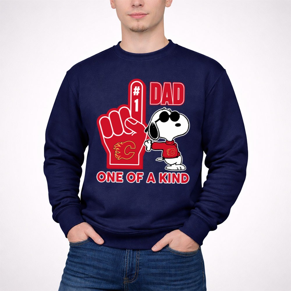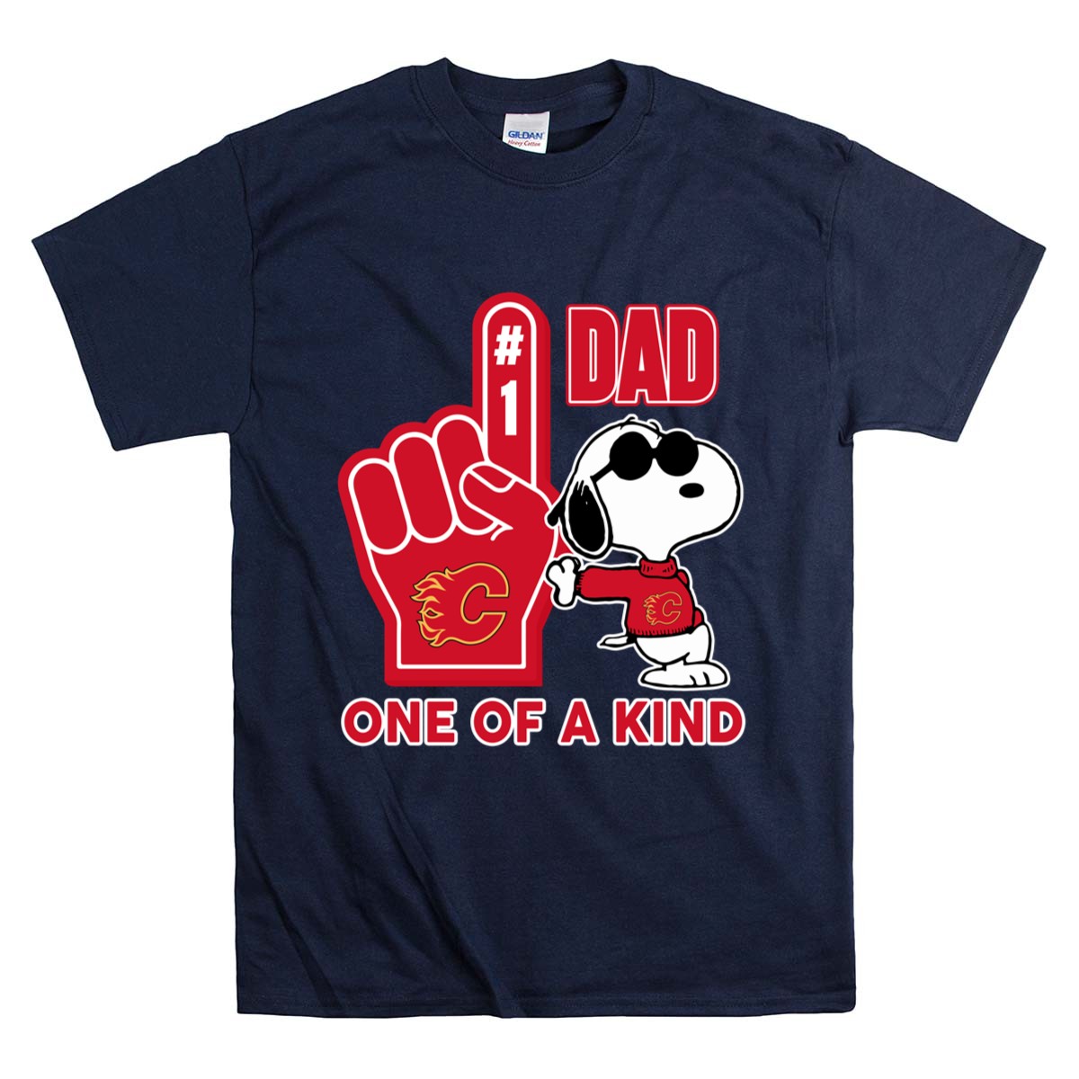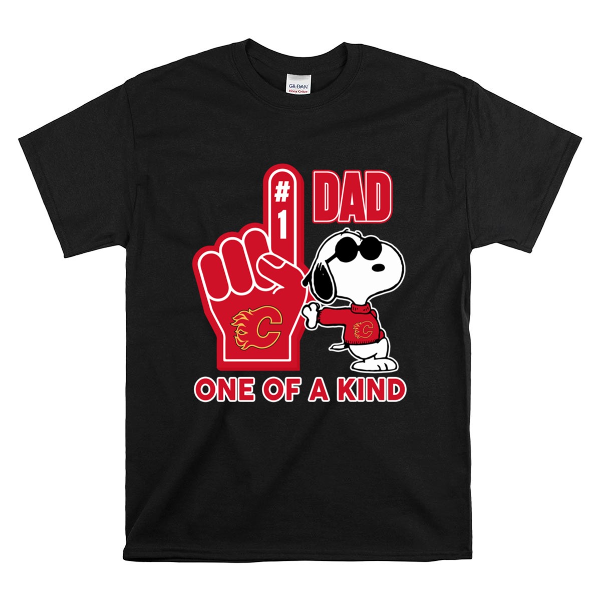 Calgary Flames fan gear, Snoopy hockey merchandise, number one dad shirt, Calgary sports pride, NHL family apparel, dad gift for hockey fans, Calgary sports culture, hockey game day shirt