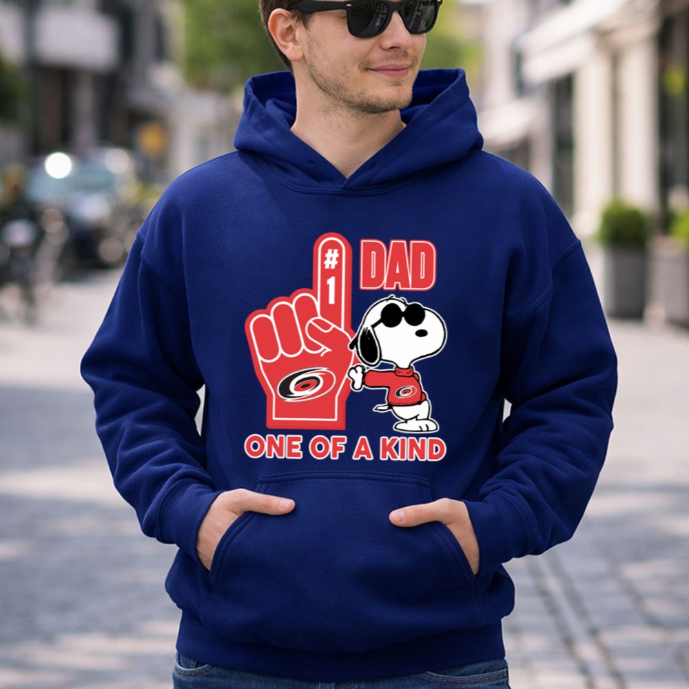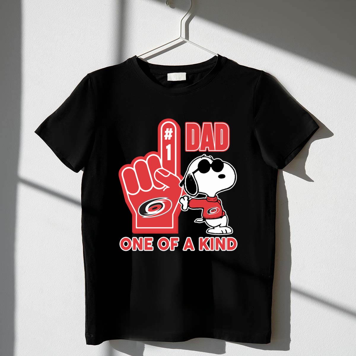 Carolina Hurricanes fan gear, #1 Dad t-shirt, Snoopy sports apparel, NHL family pride, game day outfit, Raleigh sports culture, hockey dad gift, premium cotton tee