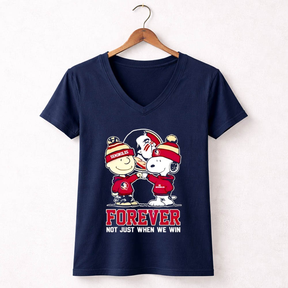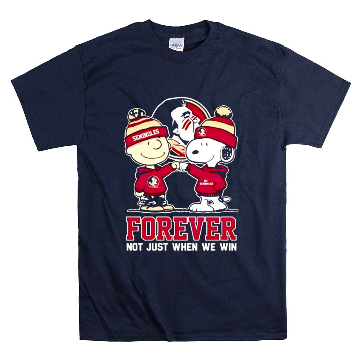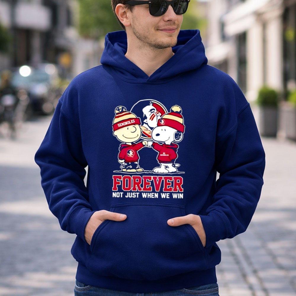 This design captures the essence of unwavering loyalty to the Florida State Seminoles, featuring the beloved characters Snoopy and Charlie Brown in vibrant fan gear. The phrase ‘FOREVER NOT JUST WHEN WE WIN’ echoes the heart of true fandom, celebrating the commitment and joy of supporting your team through every season. It’s a playful tribute that resonates with the spirit of college football tradition.