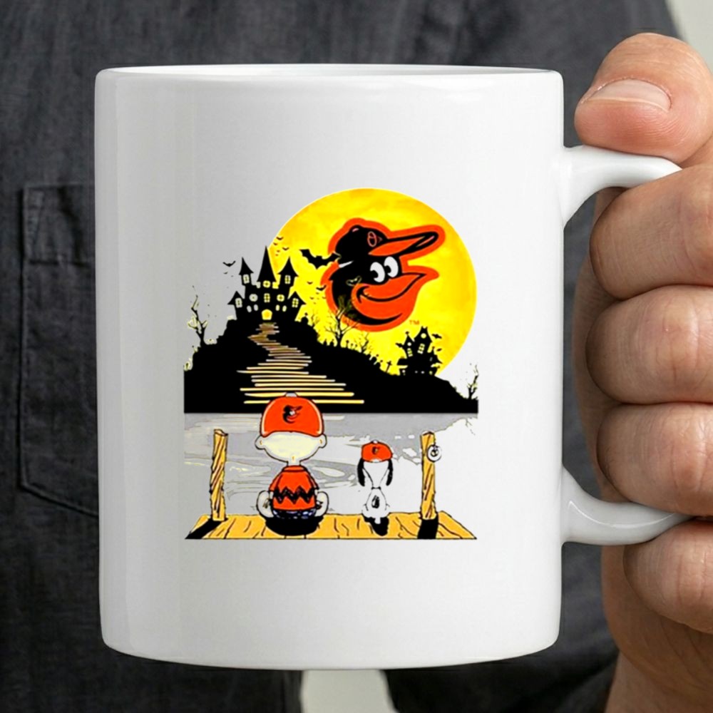 Snoopy Charlie Brown Sit Under Moon Baltimore Orioles Halloween Mug