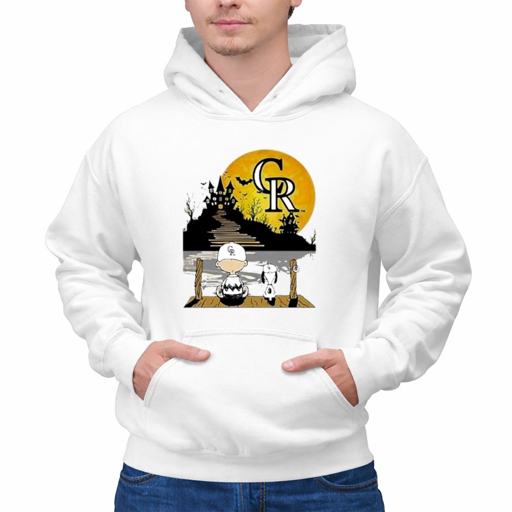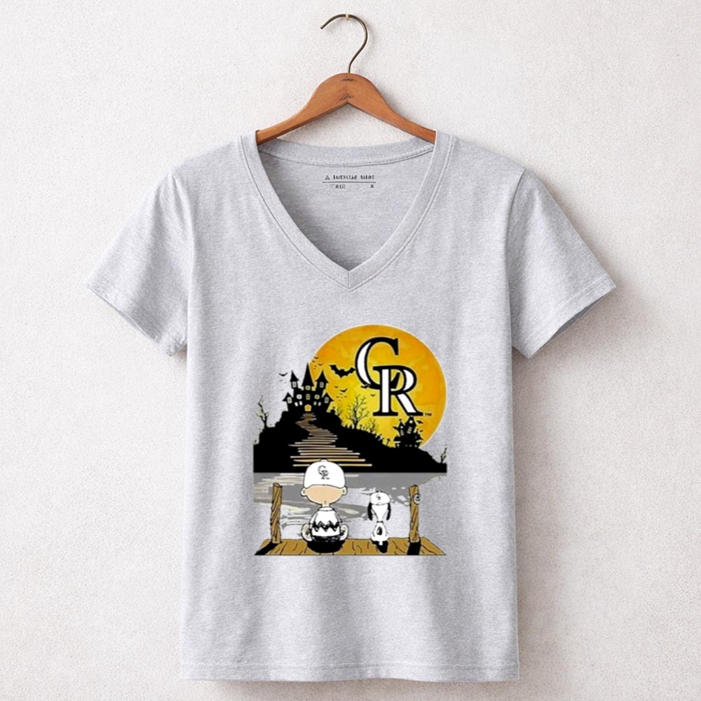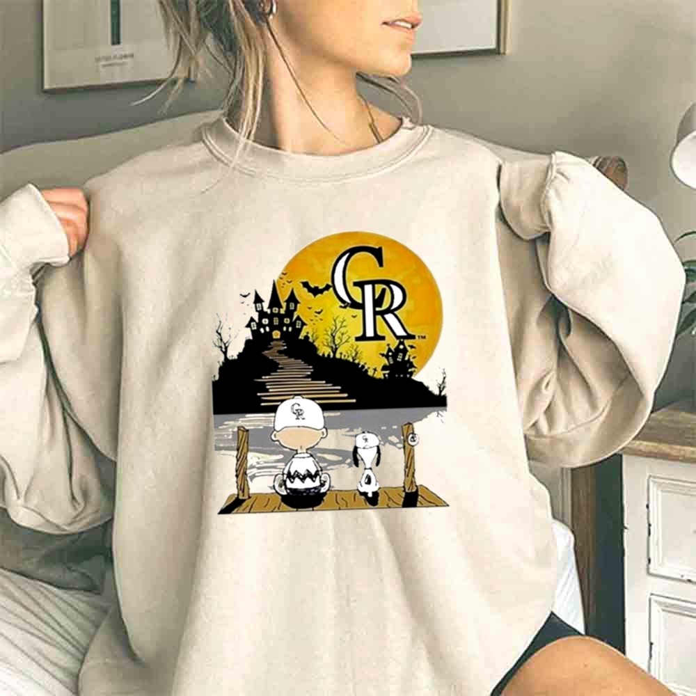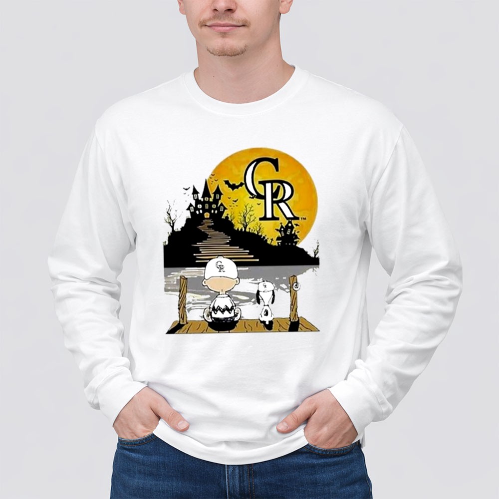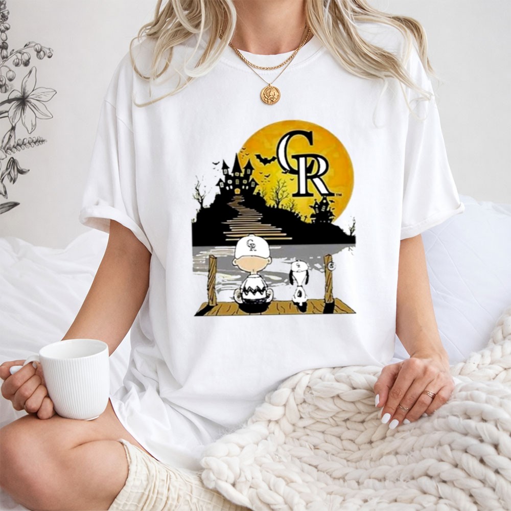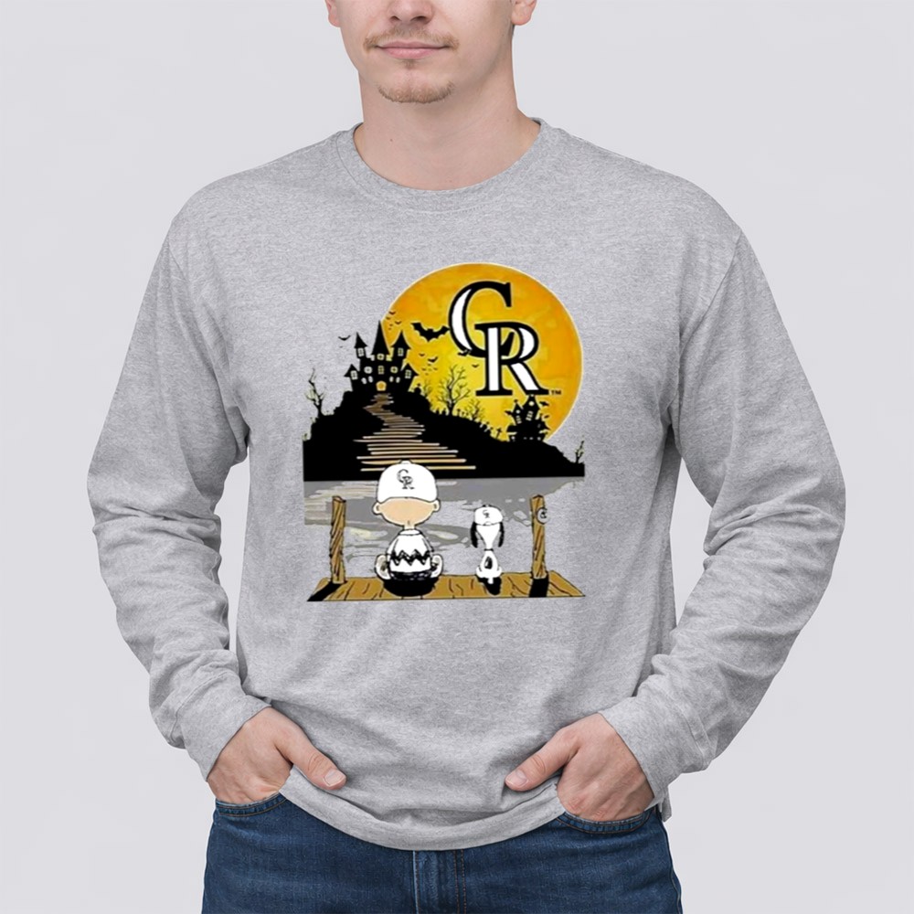 Snoopy Charlie Brown Sit Under Moon Colorado Rockies Halloween Shirt
