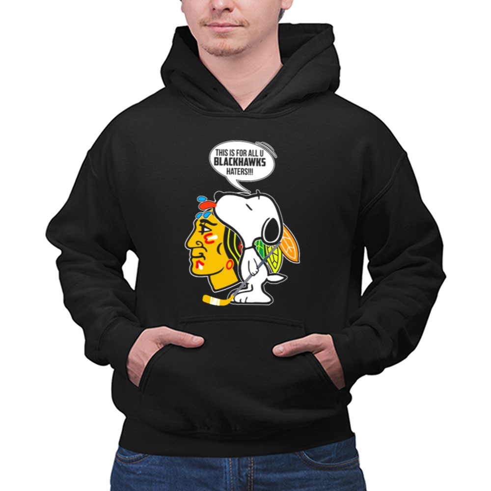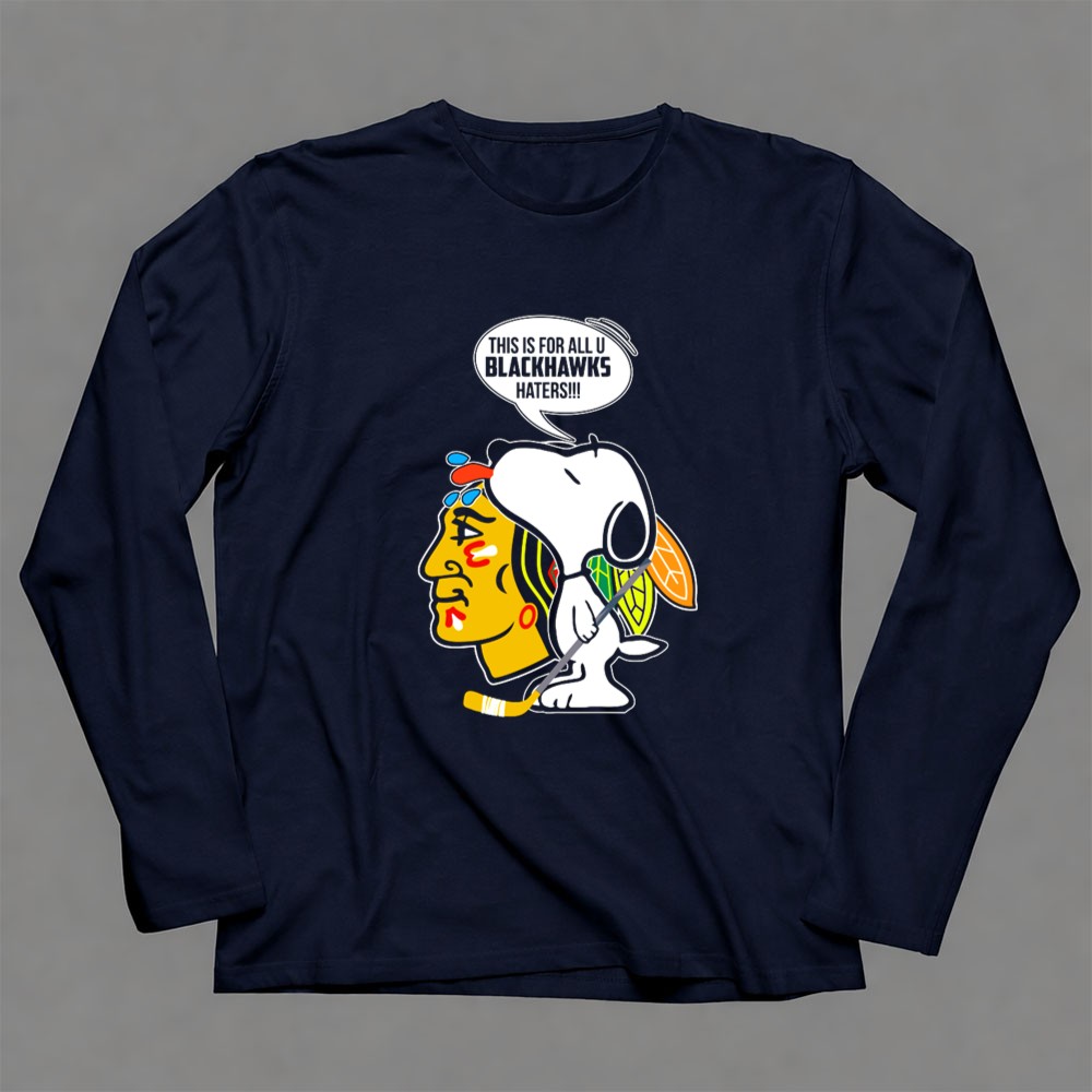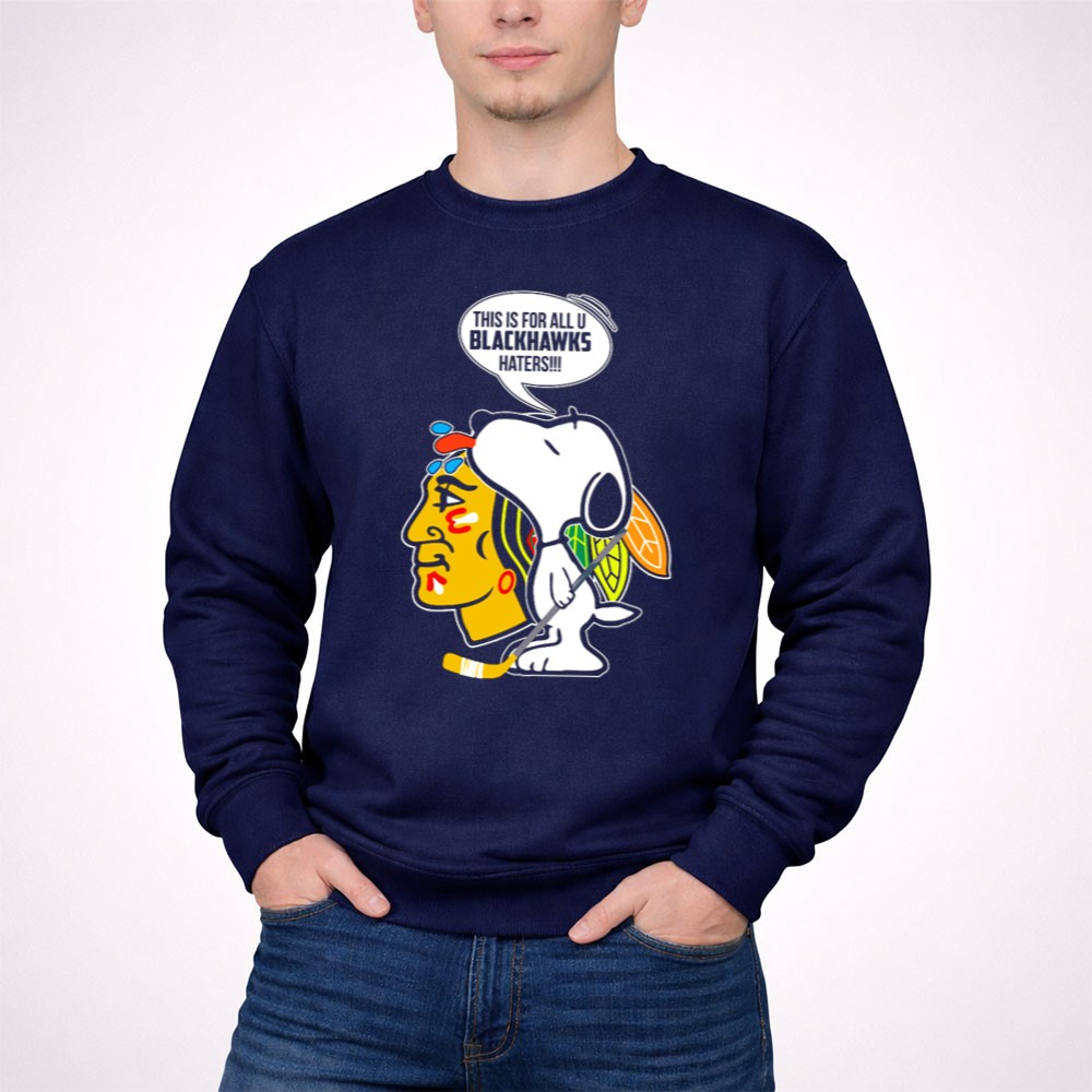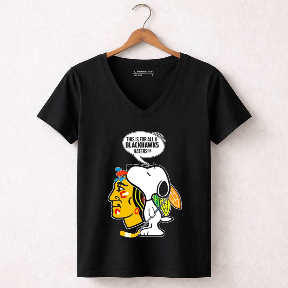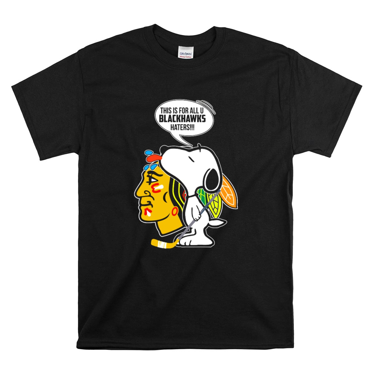 Chicago Blackhawks, Snoopy sports humor, hockey fan t-shirt, anti-hater apparel, United Center pride, Windy City hockey culture, Blackhawks fandom, hilarious sports gifts