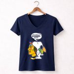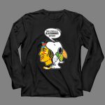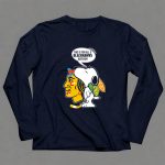 This design channels the lively spirit of rivalry in Chicago’s hockey scene, featuring Snoopy in a cheeky speech bubble declaring, ‘THIS IS FOR ALL U BLACKHAWKS HATERS!!!’ The bold graphics and vibrant colors reflect the passion and camaraderie among fans, making it a lighthearted tribute to Blackhawks loyalty that evokes laughter and unity.