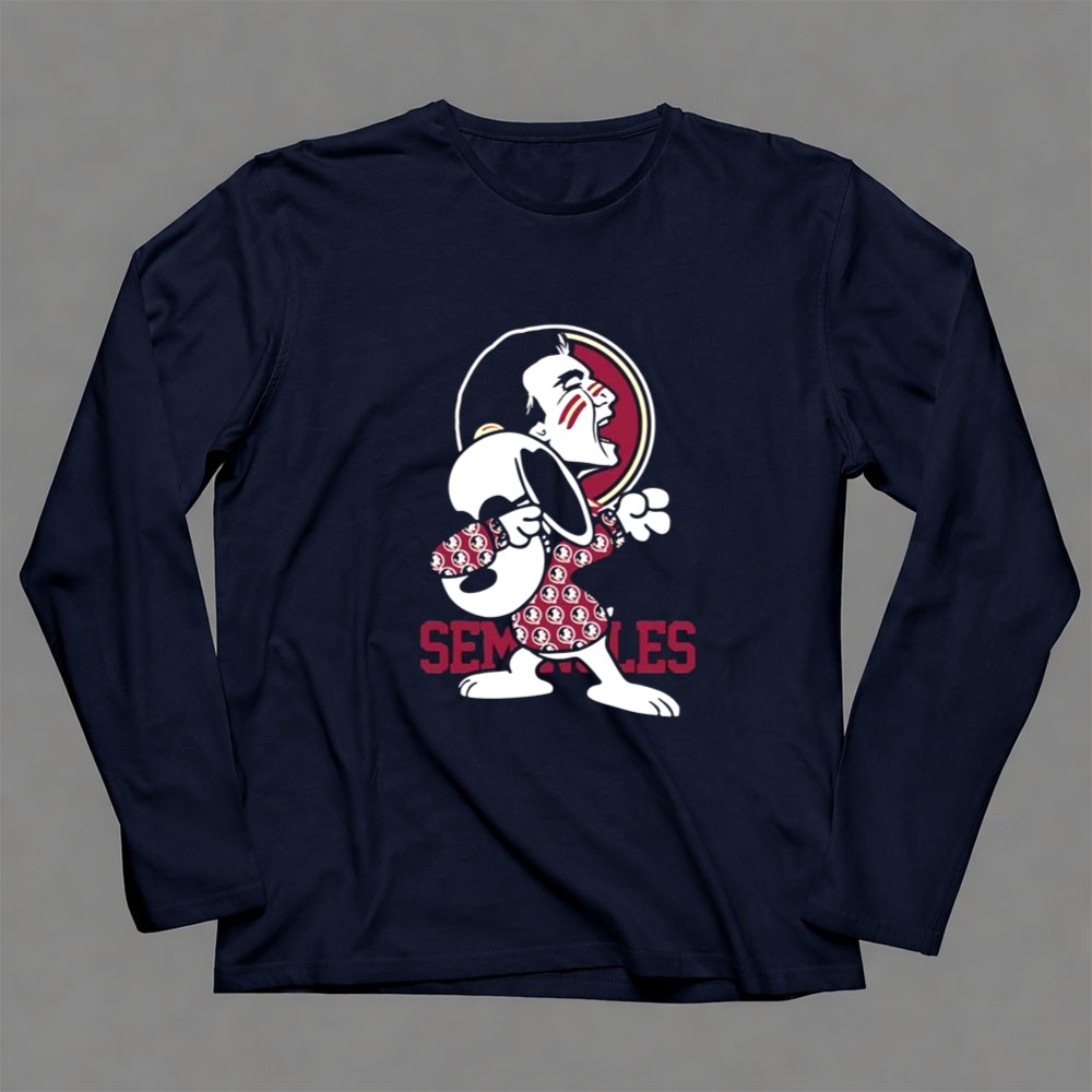 This vibrant design features Snoopy dabbing in a Florida State Seminoles outfit, celebrating the camaraderie and joy of college football culture. It embodies the pride of Tallahassee and pays homage to the beloved Snoopy character, creating a playful connection between sports and pop culture. Each time you wear it, you’re reminded of the legacy of Seminole spirit and the fun of game days with friends.