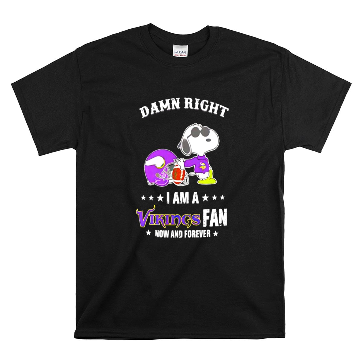 Snoopy Damn Right I Am A Vikings Fan Now And Forever Shirt