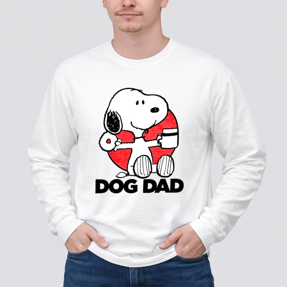 dog dad apparel, Snoopy graphic tee, funny dog lover shirt, coffee and donut lover, pet parent gift, casual dog dad outfit, cartoon dog merch, whimsical pet apparel