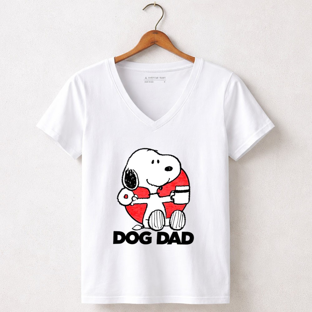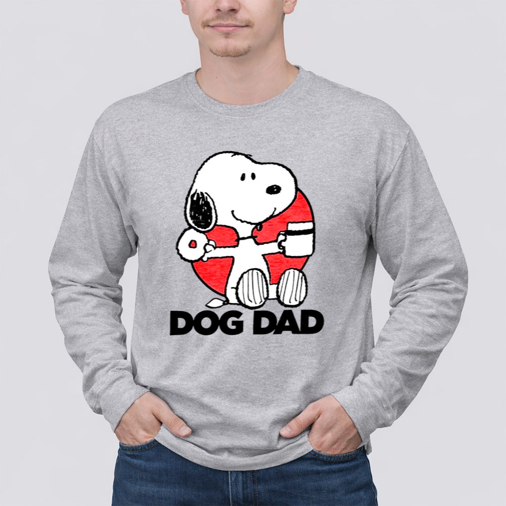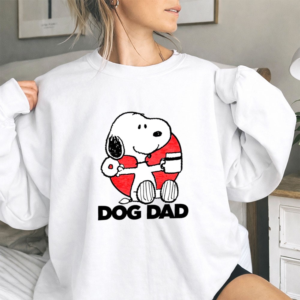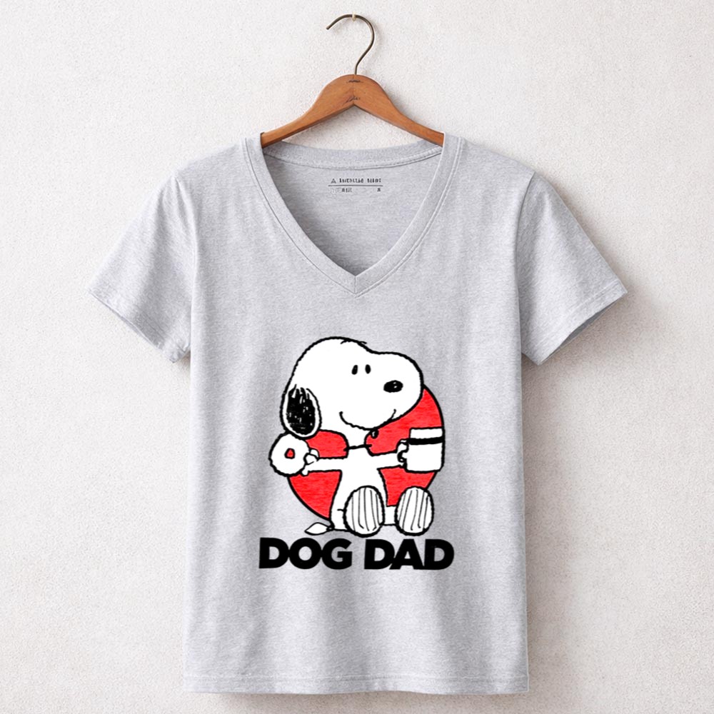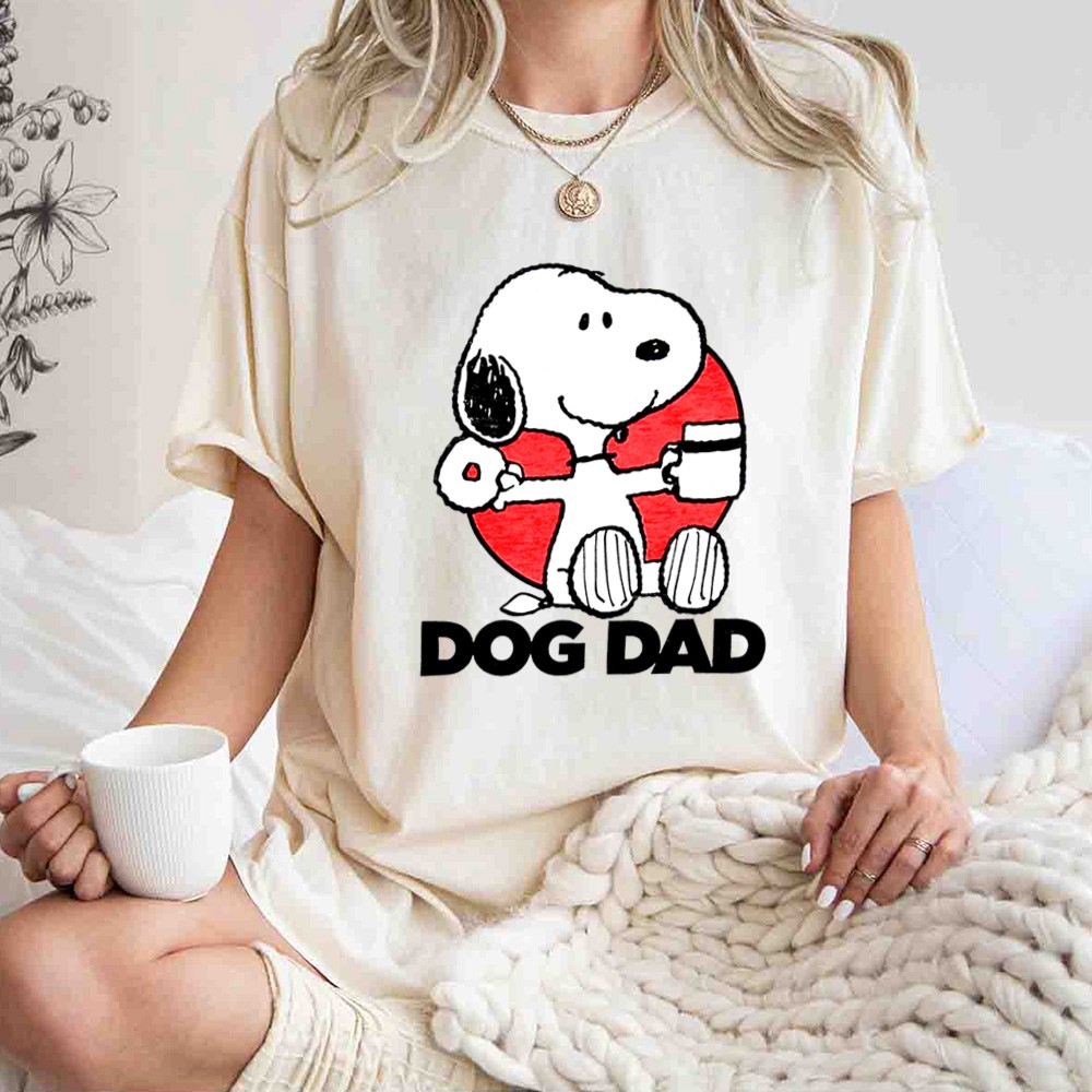 This vibrant graphic shirt showcases Snoopy, a beloved cartoon character, enjoying a donut and coffee, embodying the light-hearted spirit of dog dads everywhere. The text ‘DOG DAD’ adds a personal touch, making it a joyful statement piece for anyone who cherishes the bond with their furry friends.