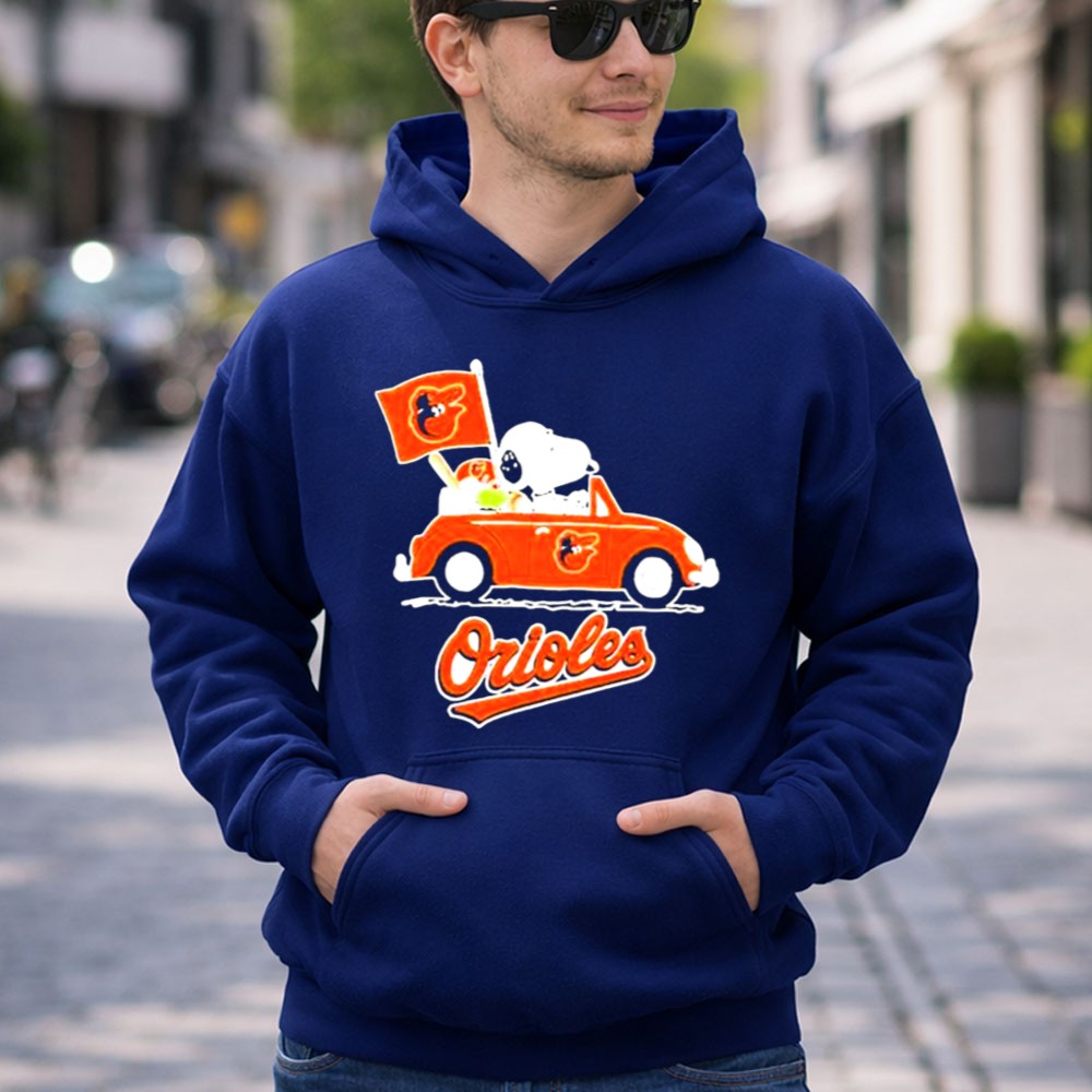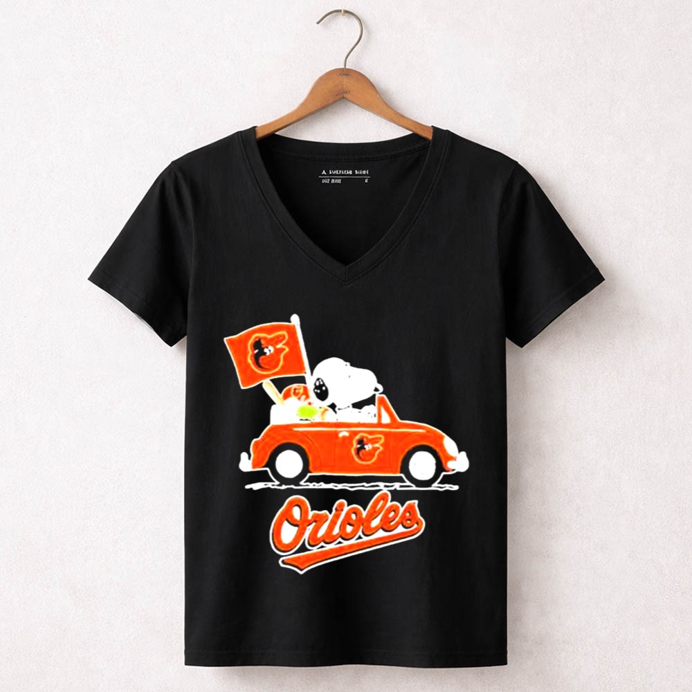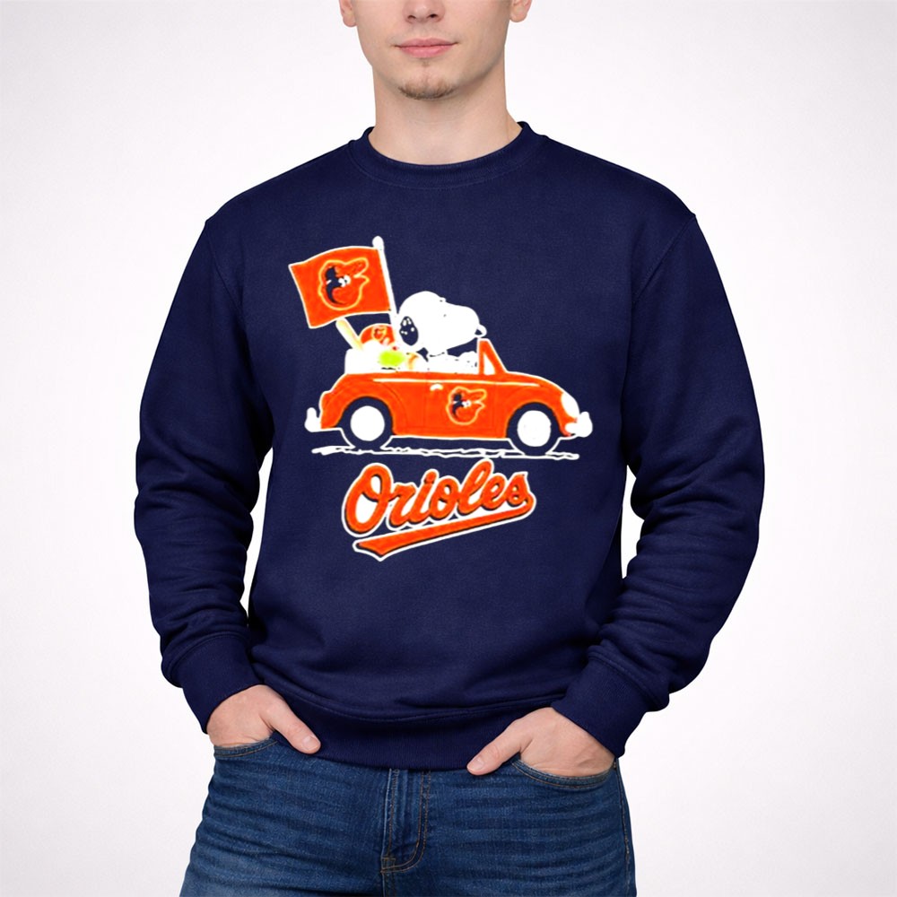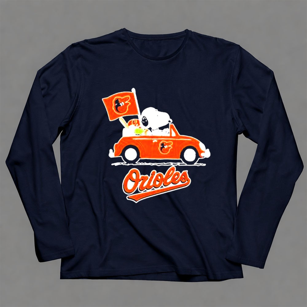 Snoopy Driving Red Car With Baltimore Orioles Flag And Orioles Shirt