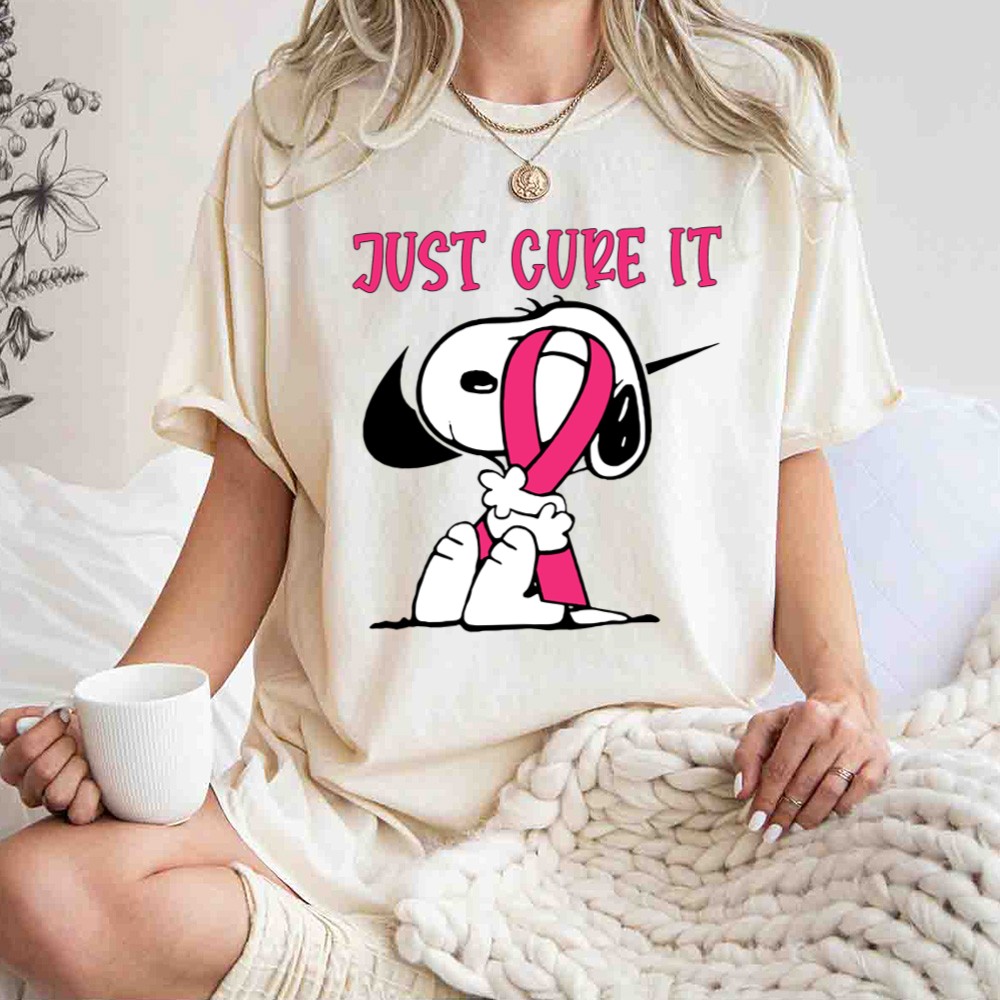 Snoopy Hug Breast Cancer Just Cure It Nike Pink Shirt