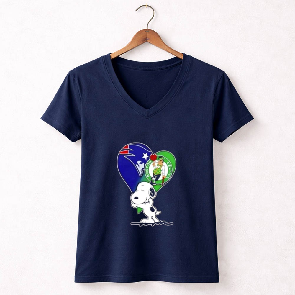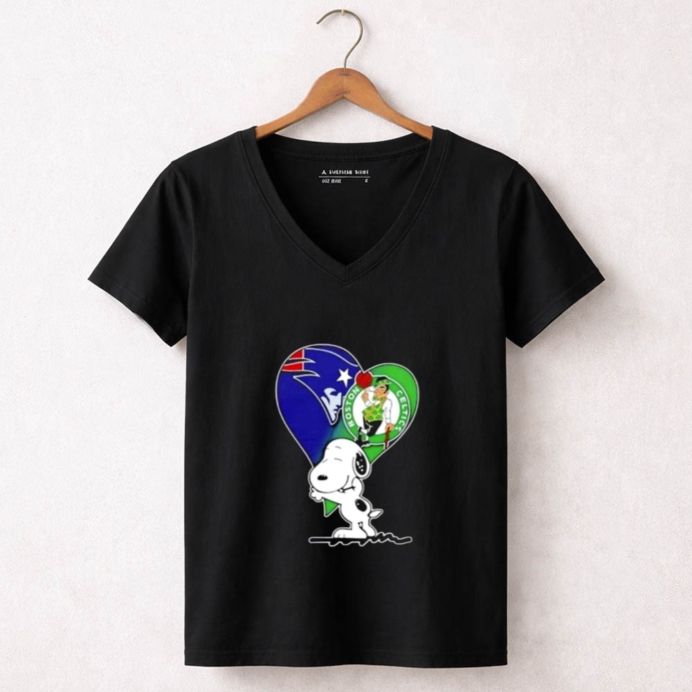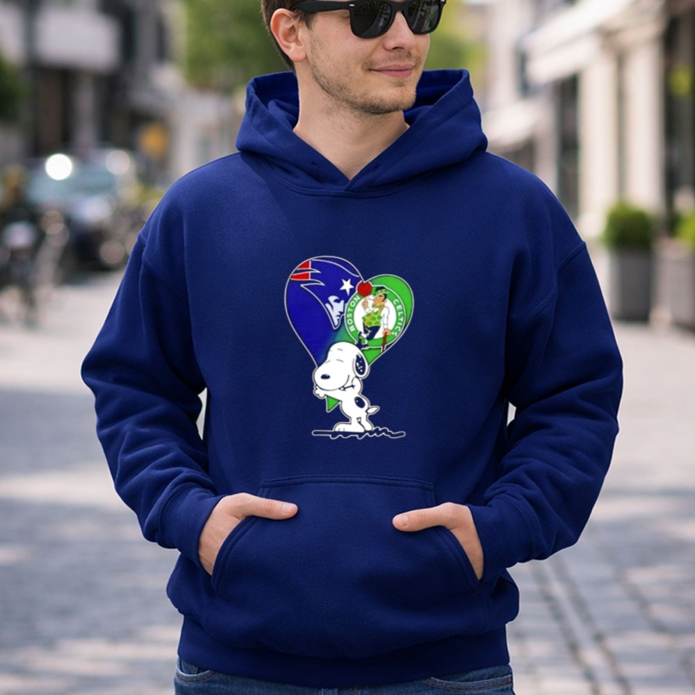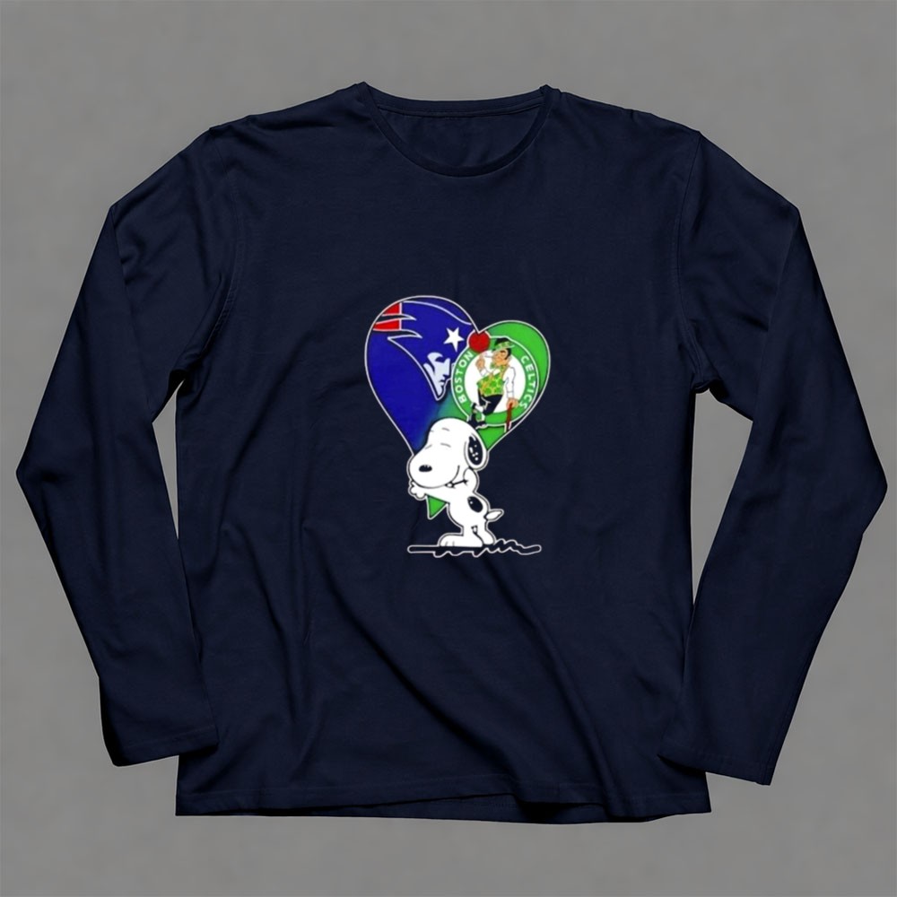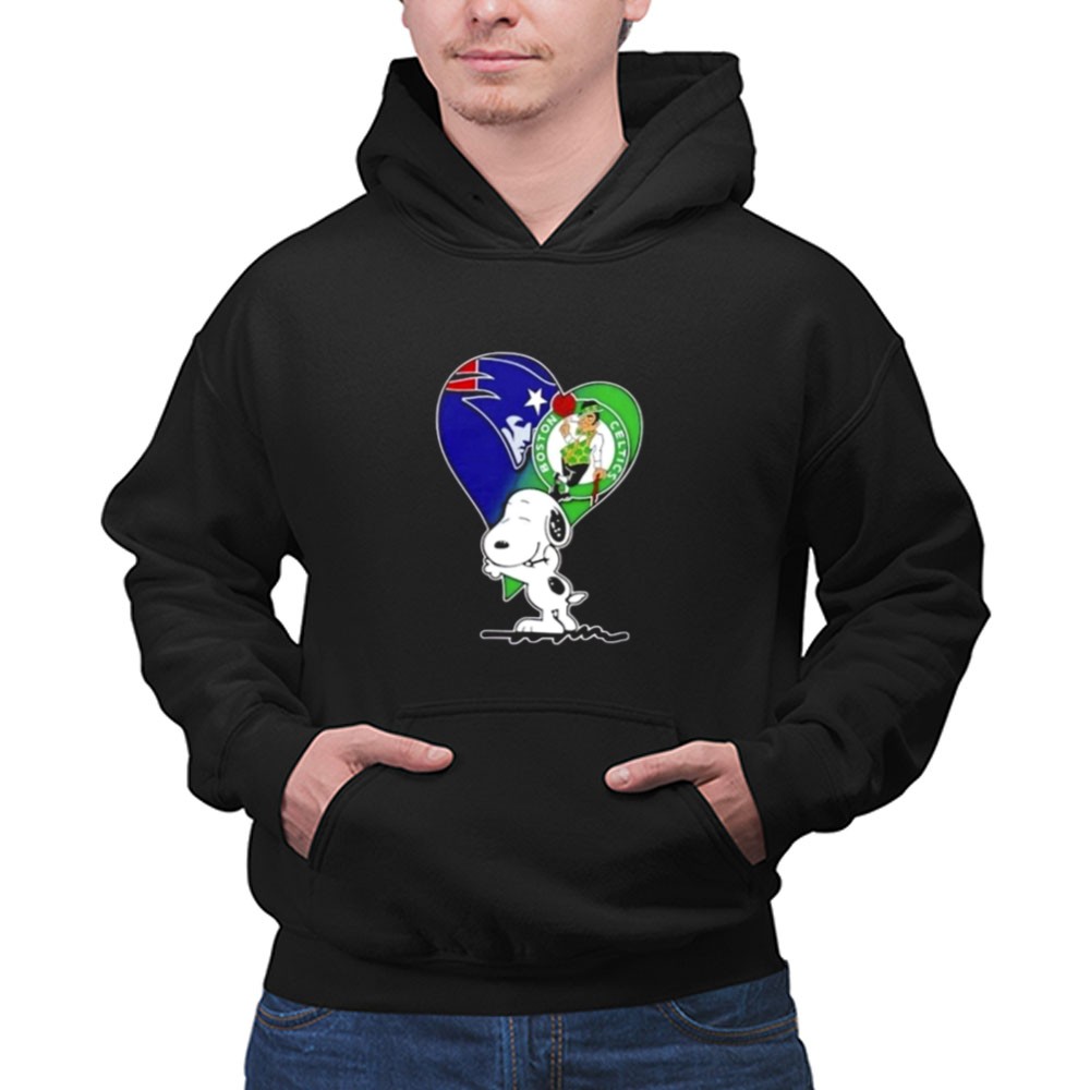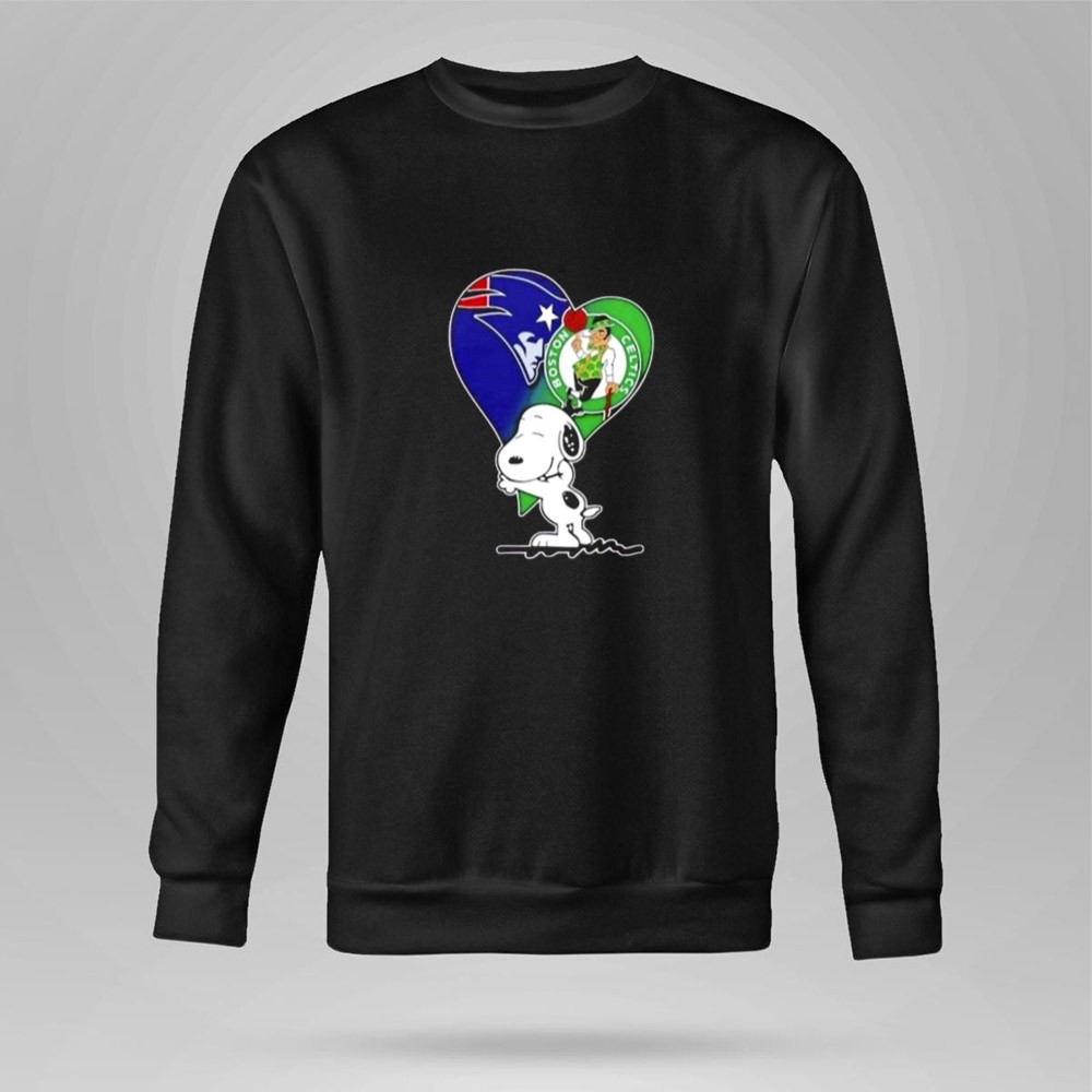 Snoopy Hug Heart Mashup Patriots And Boston Celtics Shirt