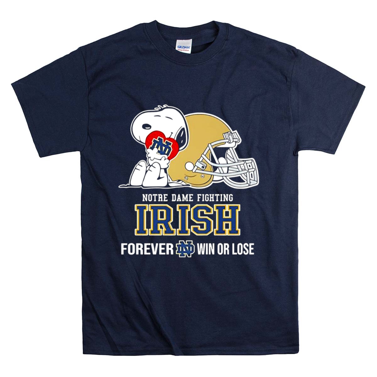 Snoopy Hug Heart Notre Dame Fighting Irish Forever Win Or Lose Shirt