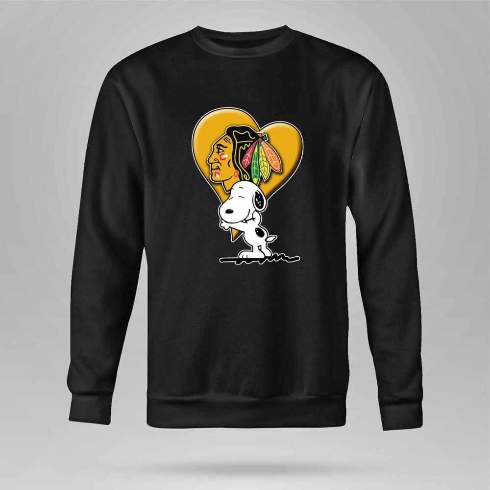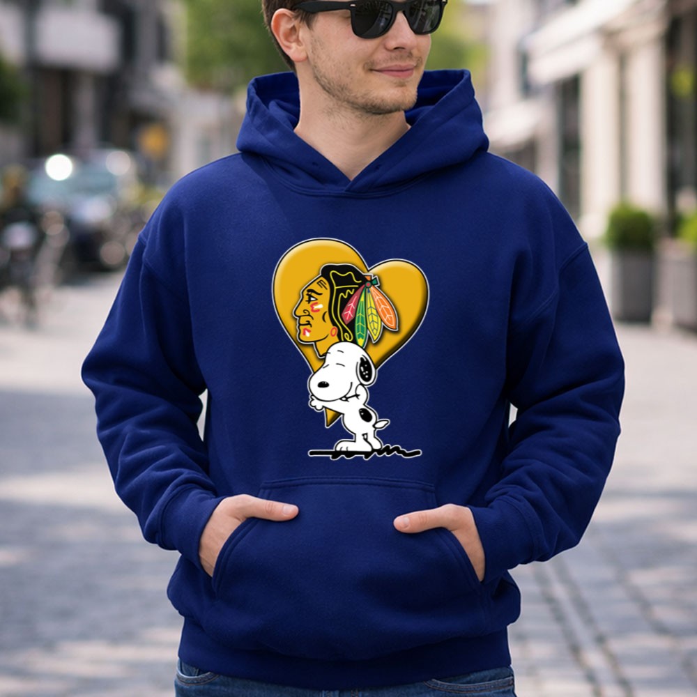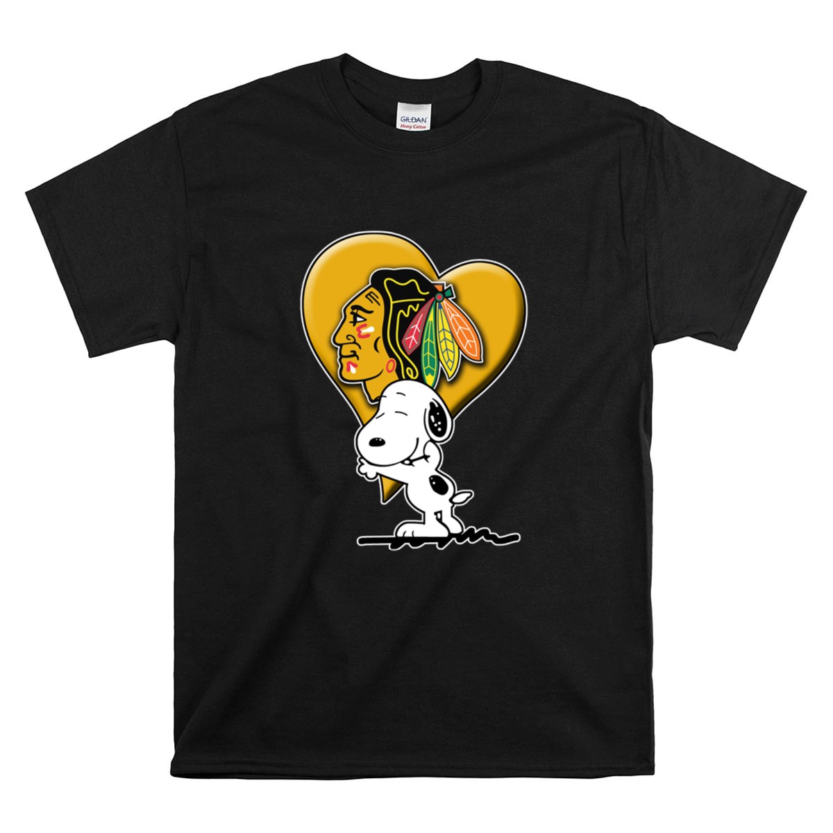 Chicago Blackhawks pride, Snoopy hockey love, United Center, NHL fandom, heartwarming sports apparel, premium cotton t-shirt, hockey fan gift, Chicago sports culture