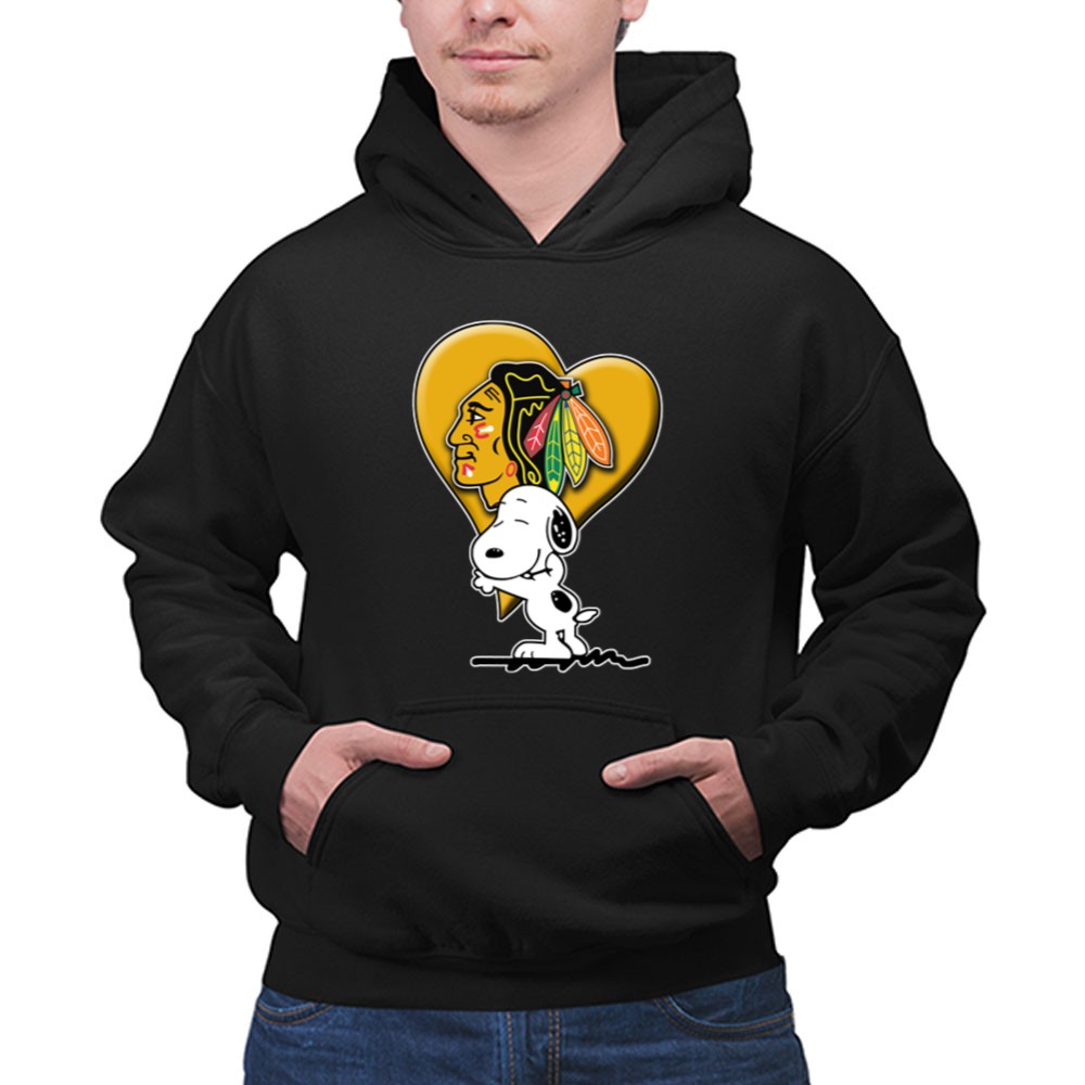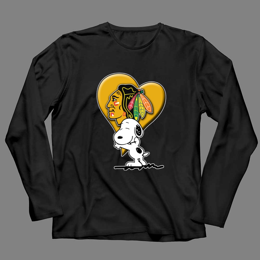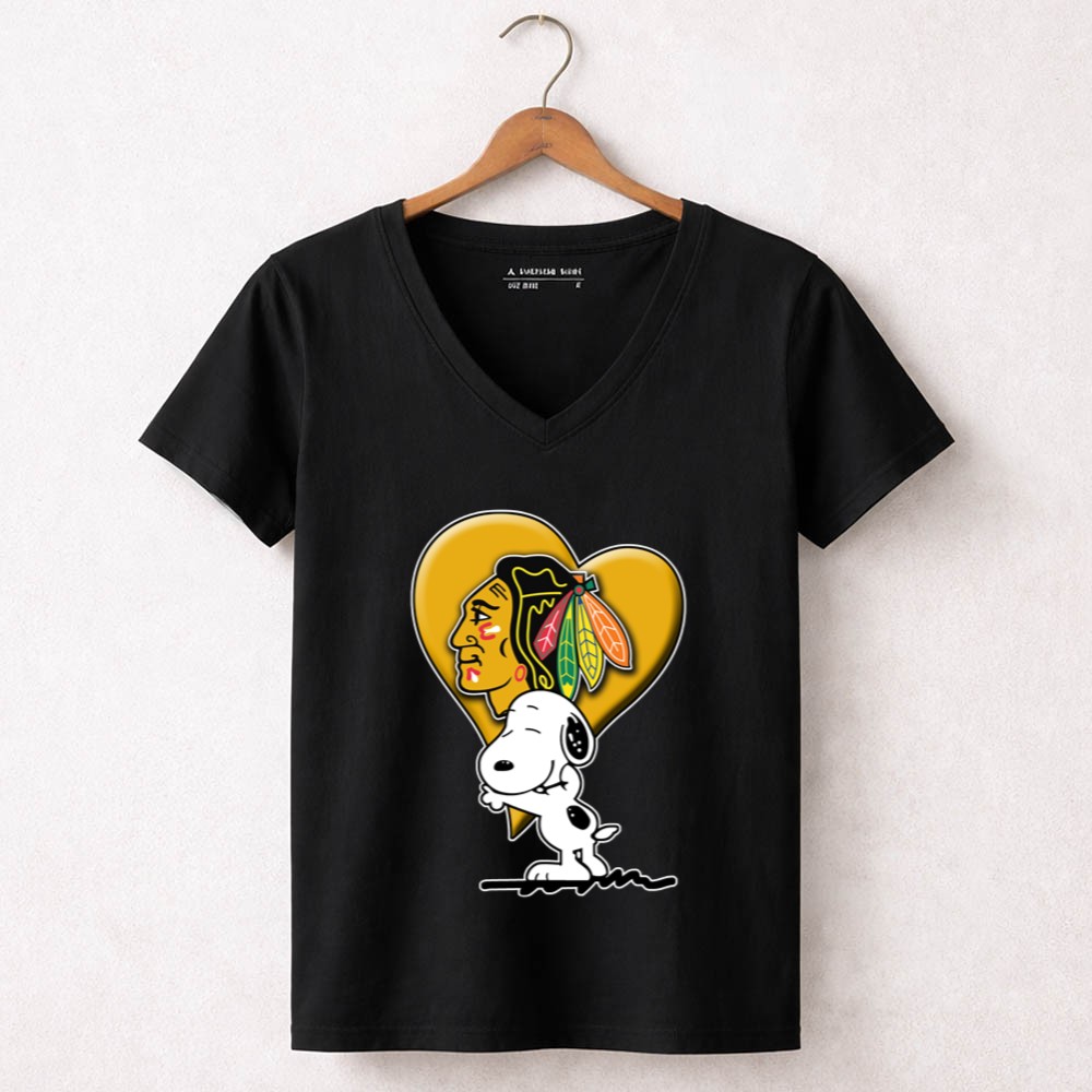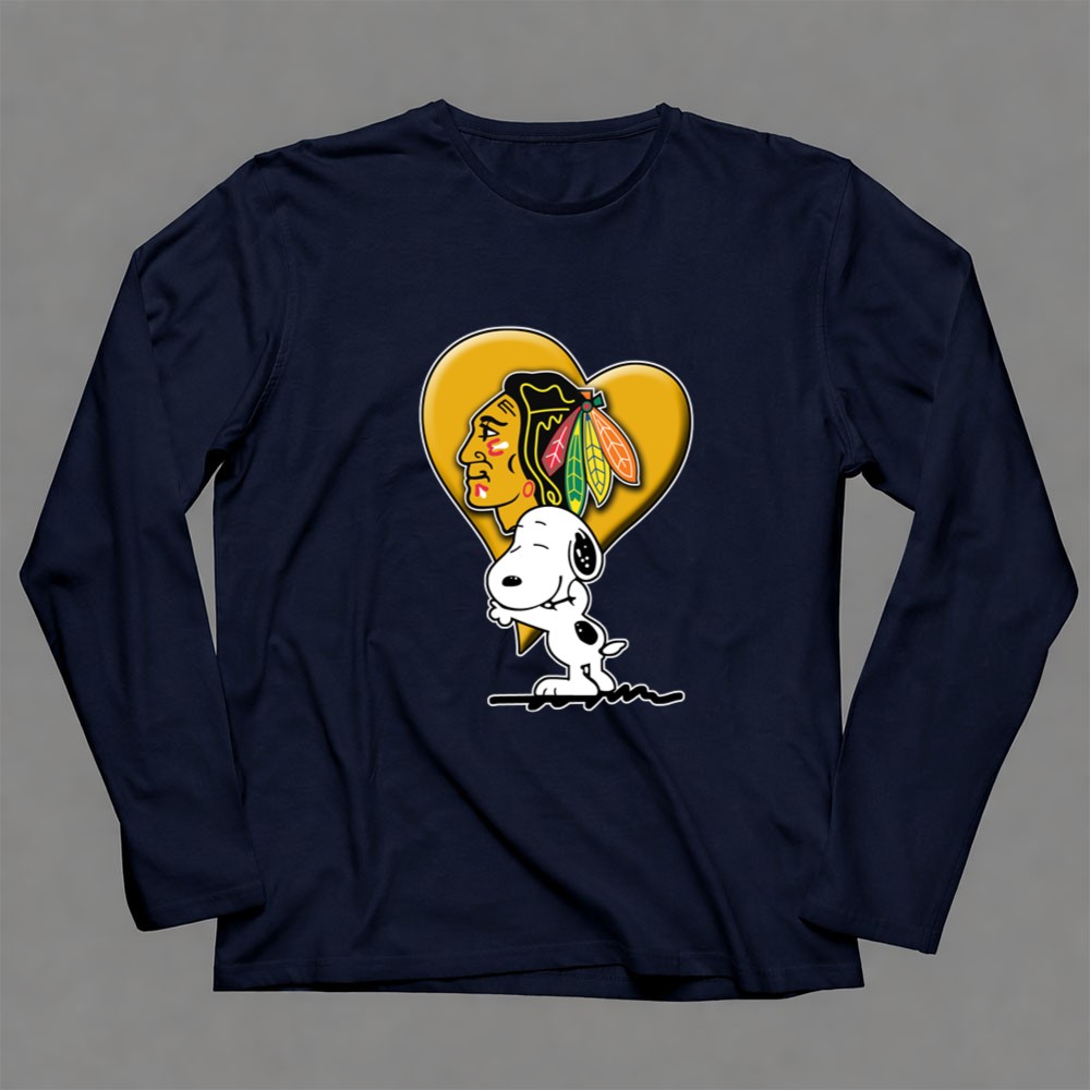 Chicago Blackhawks pride, Snoopy hockey love, United Center, NHL fandom, heartwarming sports apparel, premium cotton t-shirt, hockey fan gift, Chicago sports culture