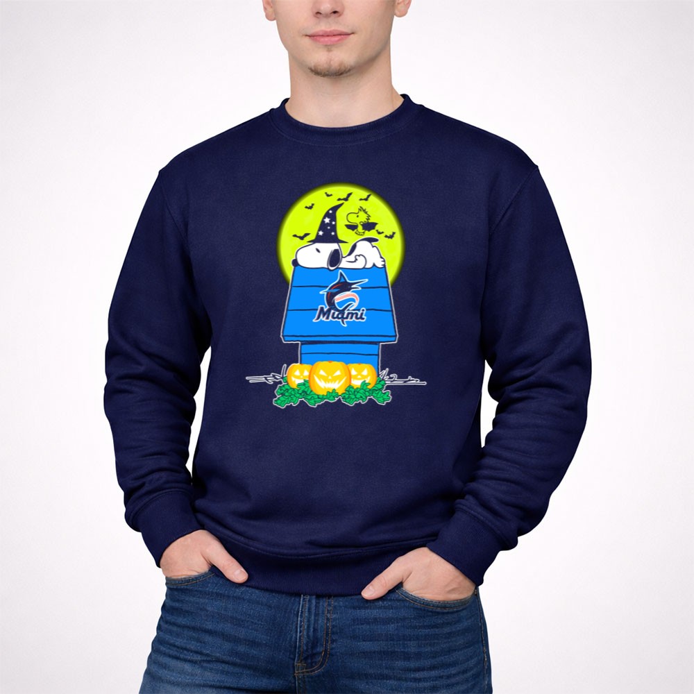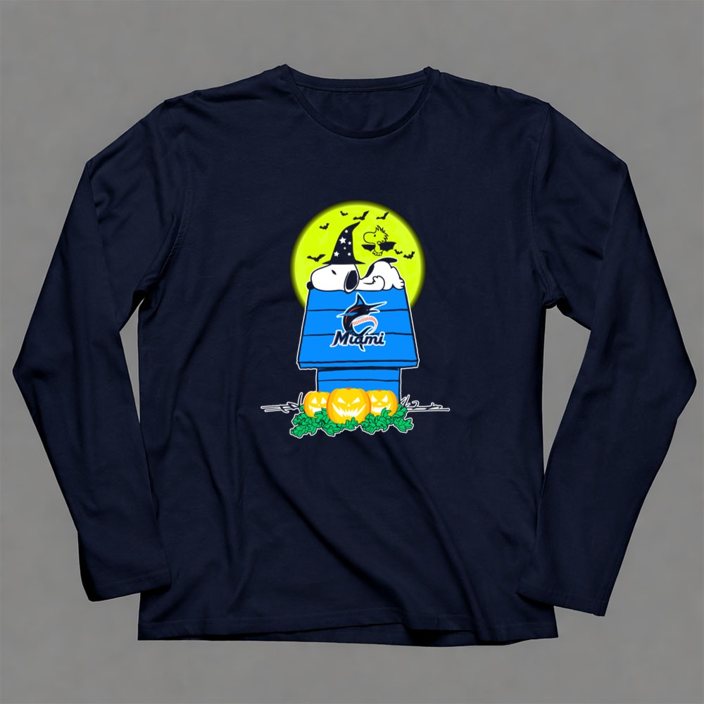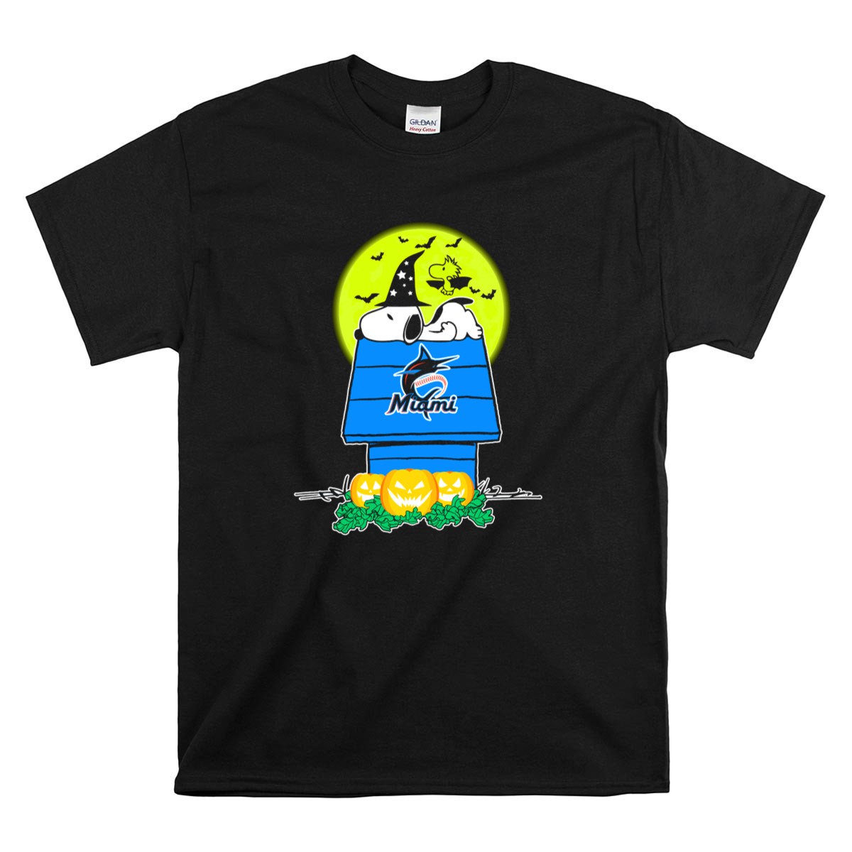 Snoopy Miami Marlins Halloween Moon Pumpkins Shirt